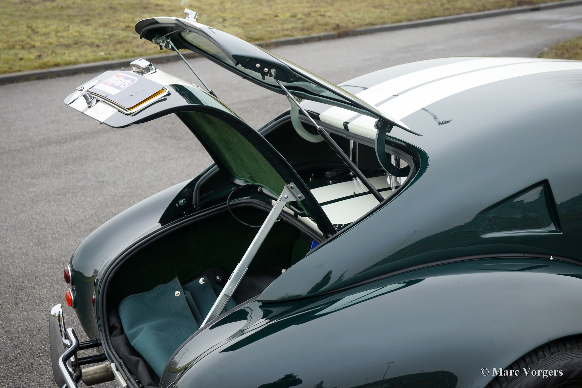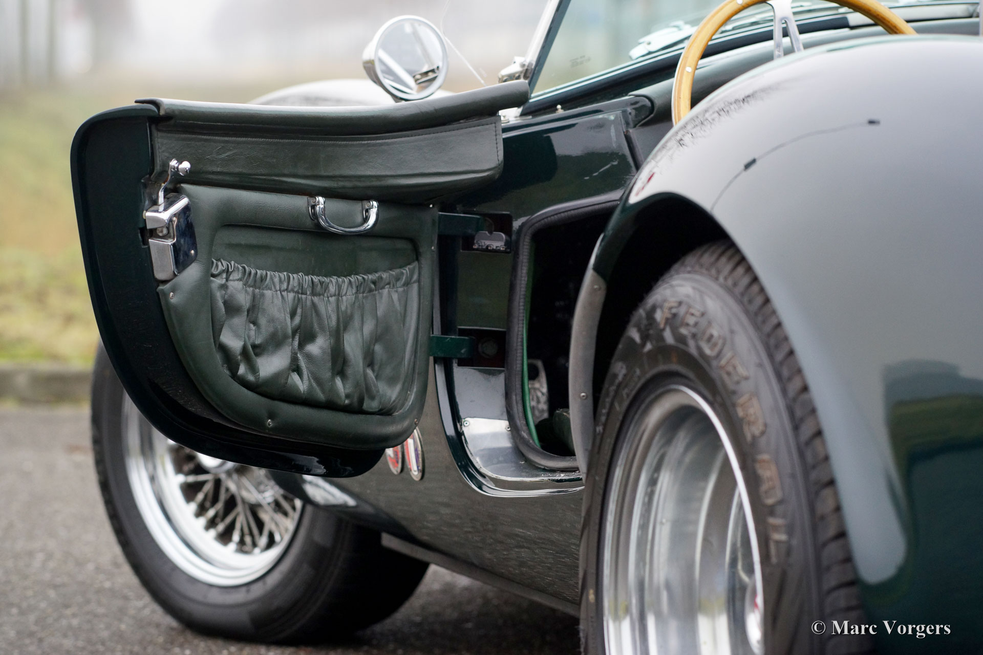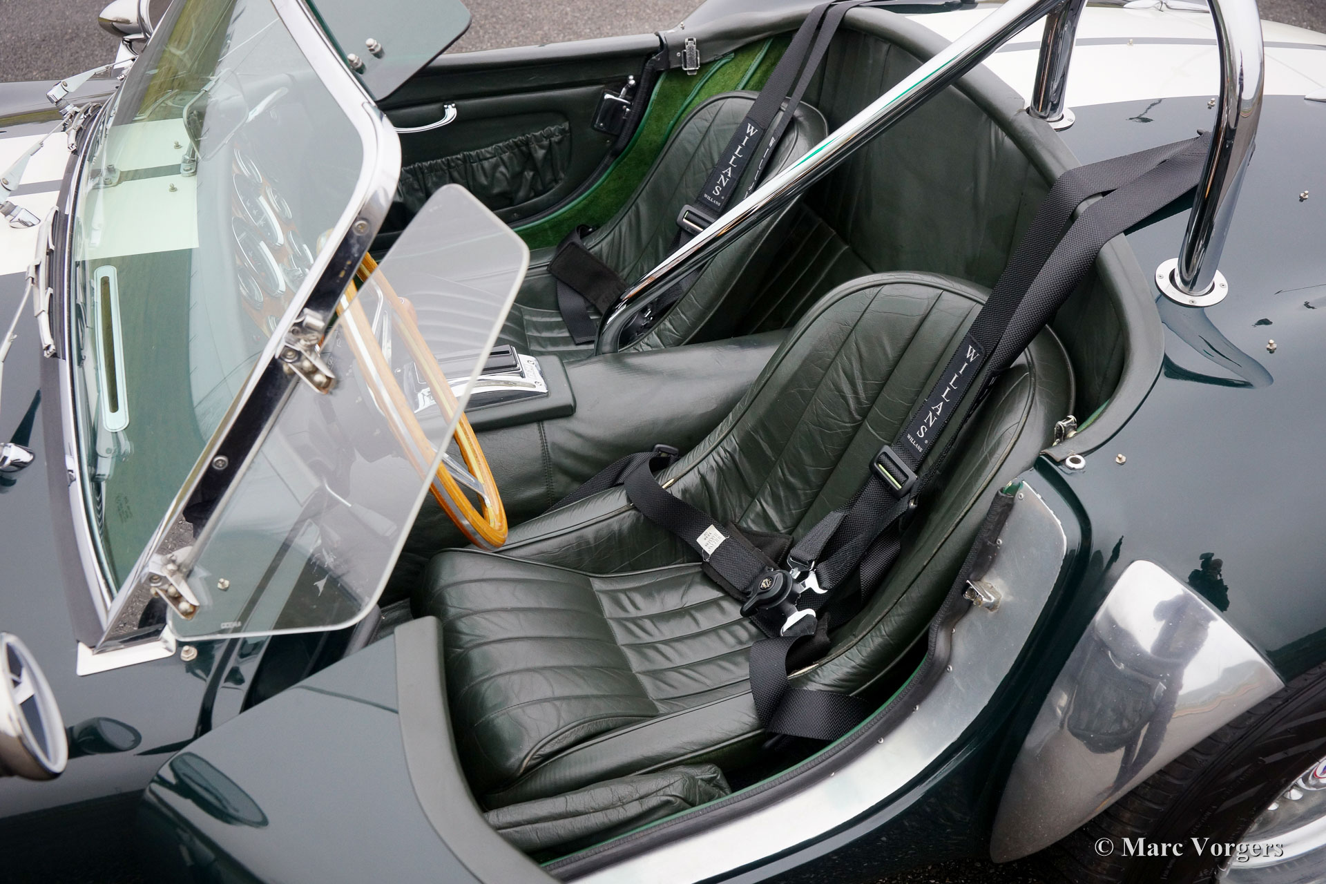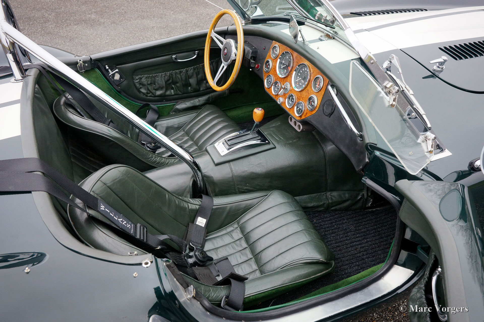 Dax Cobra Tojeiro, Jahr 1991. Farbe dunkelgrün metallic mit grünem Leder Interieur. Schwarzes Soft-Top, dunkelgrüner Persenning und ein Hardtop in der Körperfarbe. Die Dax Cobra ist auf die legendäre AC Cobra 427 aus den 1960er Jahren inspiriert. Diese Dax Cobra wurde in den Niederlanden mit Jaguar-Aufhängungsteilen und Hinterachse und einem Chevrolet 5-Liter-V8-Motor gebaut. Ausgestattet ist ein Automatikgetriebe mit B & M Schalthebel. Diese Dax Cobra Tojeiro ist ein beeindruckendes Auto mit seiner dunkelgrünen Farbe, weißen Streifen und den Chromdrahträdern. Um das Bild noch besser zu machen, kommt das Auto noch mehr mit einem Hardtop, das prächtig aussieht! Das Auto ist mit einem "Le Mans" -Typ-Schnellverschluss-Benzinkappe, 4-Punkt-Sicherheitsgurten, einem Sportlenkrad mit Holzrand, einem Überrollbügel, zwei Chrom-Außenspiegeln, Perspex-Windabweisern (Windflügeln) und Sonne ausgestattet Visiere Das Auto wird mit Service-Rechnungen dokumentiert. Das ist eine beeindruckende Cobra mit einer lustigen V8 Soundtrack!