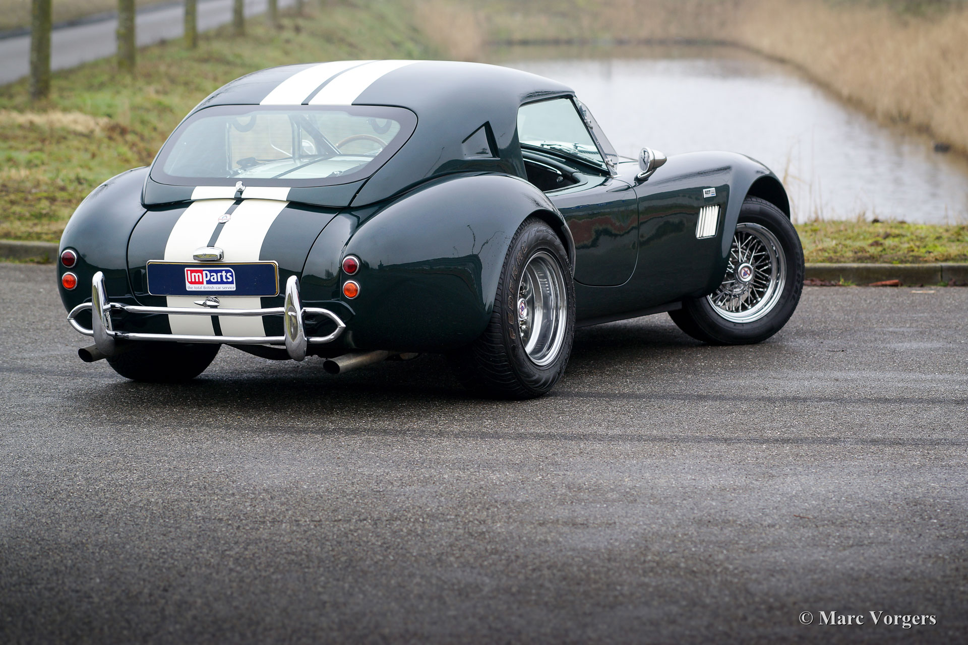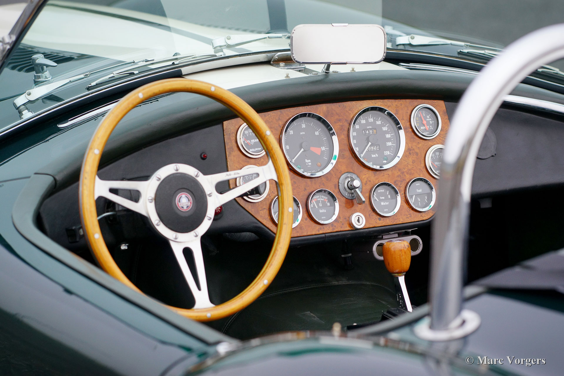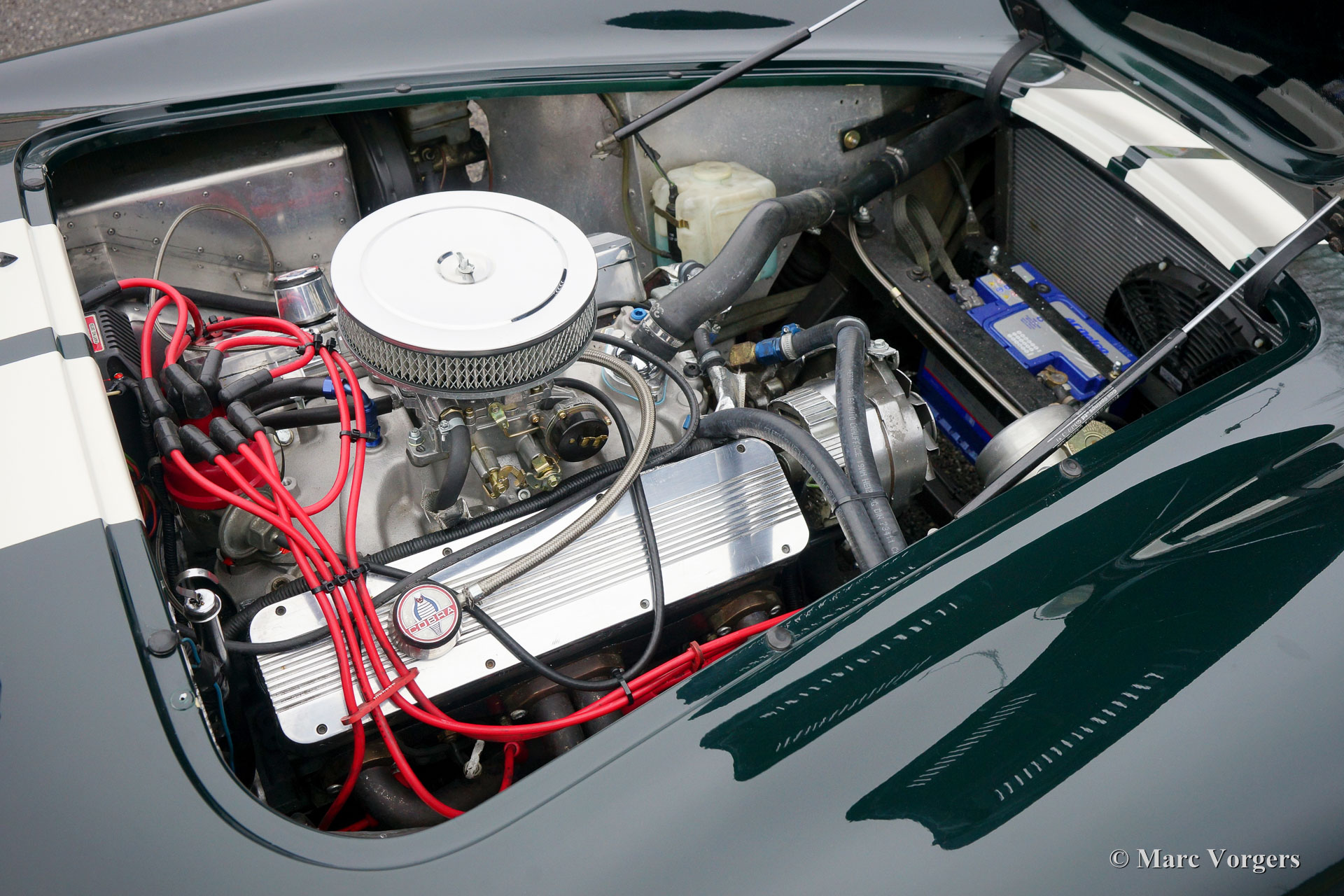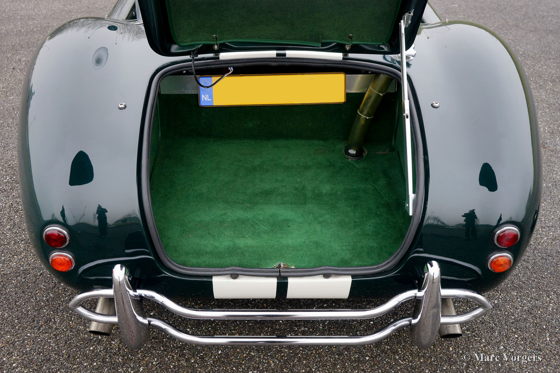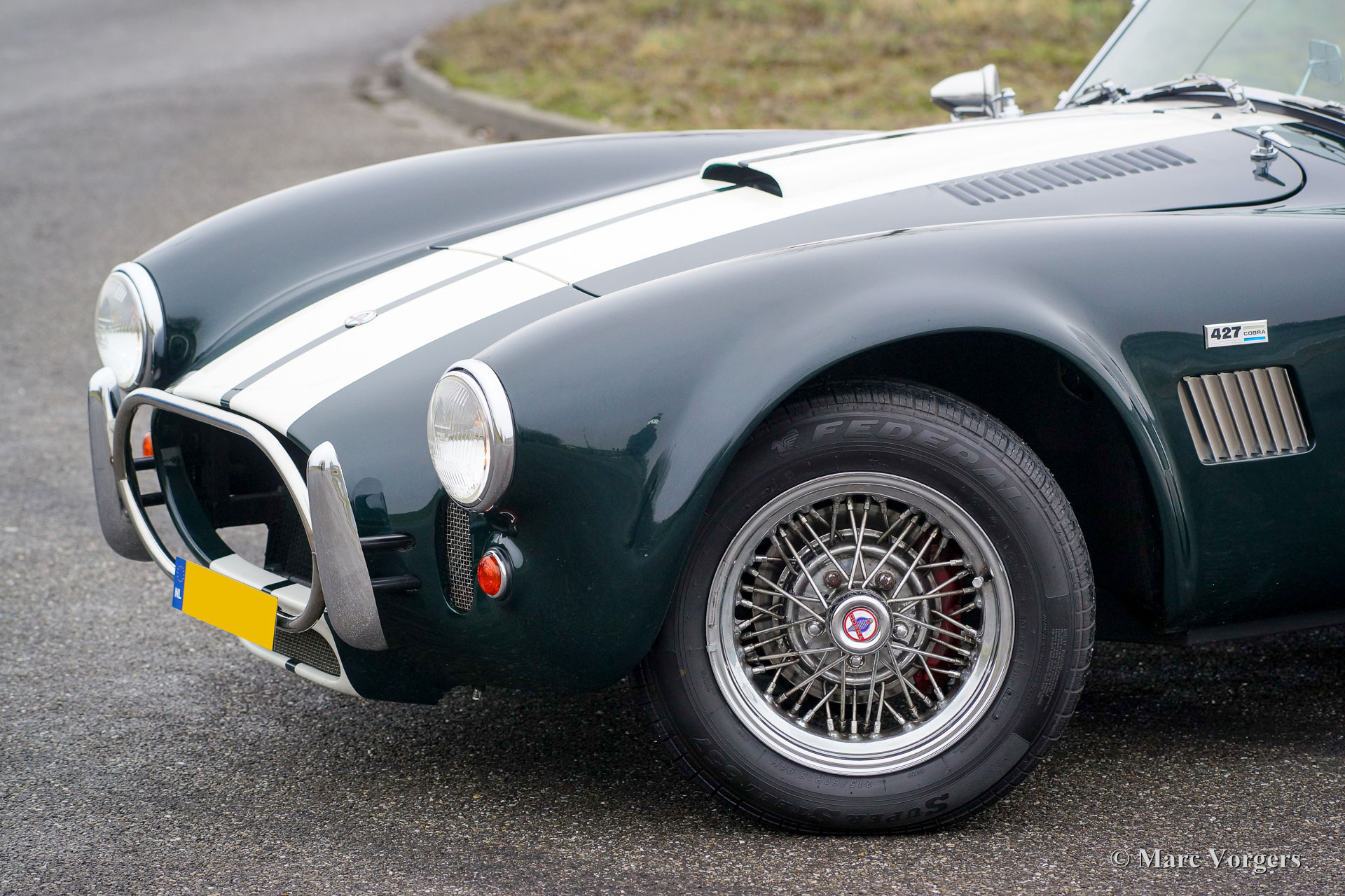 Dax Cobra Tojeiro, Jahr 1991. Farbe dunkelgrün metallic mit grünem Leder Interieur. Schwarzes Soft-Top, dunkelgrüner Persenning und ein Hardtop in der Körperfarbe. Die Dax Cobra ist auf die legendäre AC Cobra 427 aus den 1960er Jahren inspiriert. Diese Dax Cobra wurde in den Niederlanden mit Jaguar-Aufhängungsteilen und Hinterachse und einem Chevrolet 5-Liter-V8-Motor gebaut. Ausgestattet ist ein Automatikgetriebe mit B & M Schalthebel. Diese Dax Cobra Tojeiro ist ein beeindruckendes Auto mit seiner dunkelgrünen Farbe, weißen Streifen und den Chromdrahträdern. Um das Bild noch besser zu machen, kommt das Auto noch mehr mit einem Hardtop, das prächtig aussieht! Das Auto ist mit einem "Le Mans" -Typ-Schnellverschluss-Benzinkappe, 4-Punkt-Sicherheitsgurten, einem Sportlenkrad mit Holzrand, einem Überrollbügel, zwei Chrom-Außenspiegeln, Perspex-Windabweisern (Windflügeln) und Sonne ausgestattet Visiere Das Auto wird mit Service-Rechnungen dokumentiert. Das ist eine beeindruckende Cobra mit einer lustigen V8 Soundtrack!