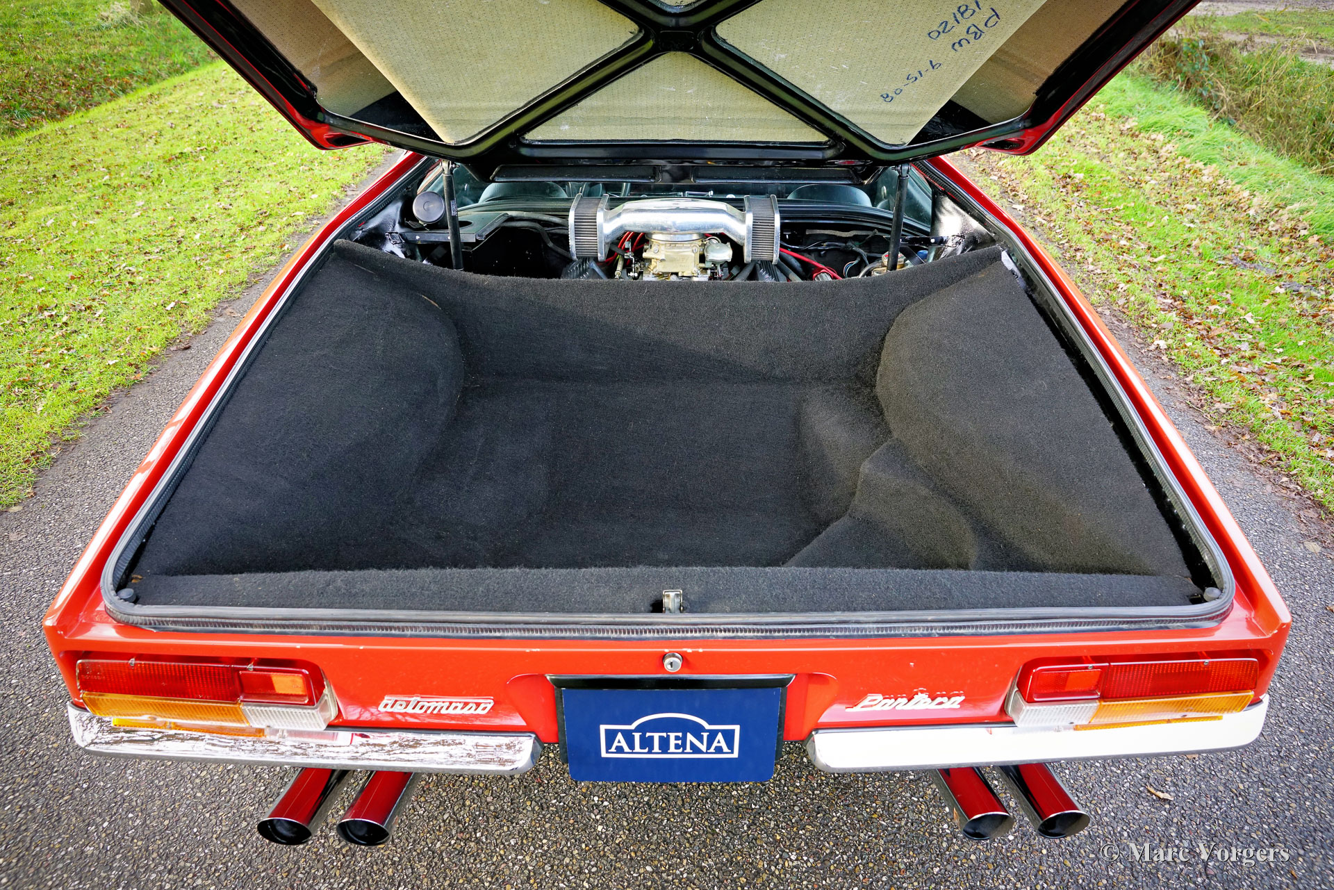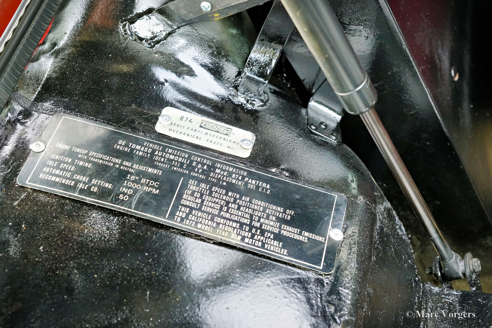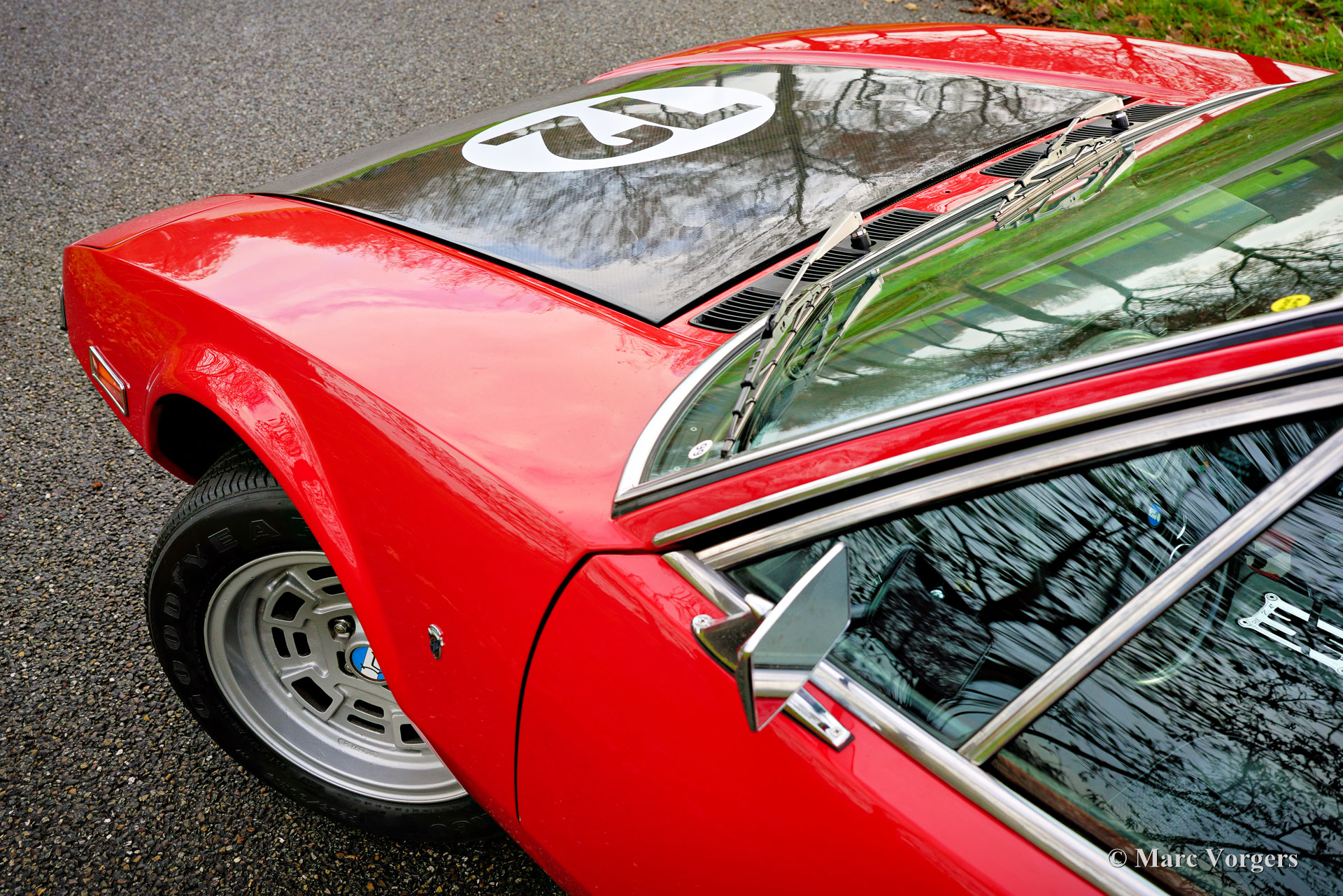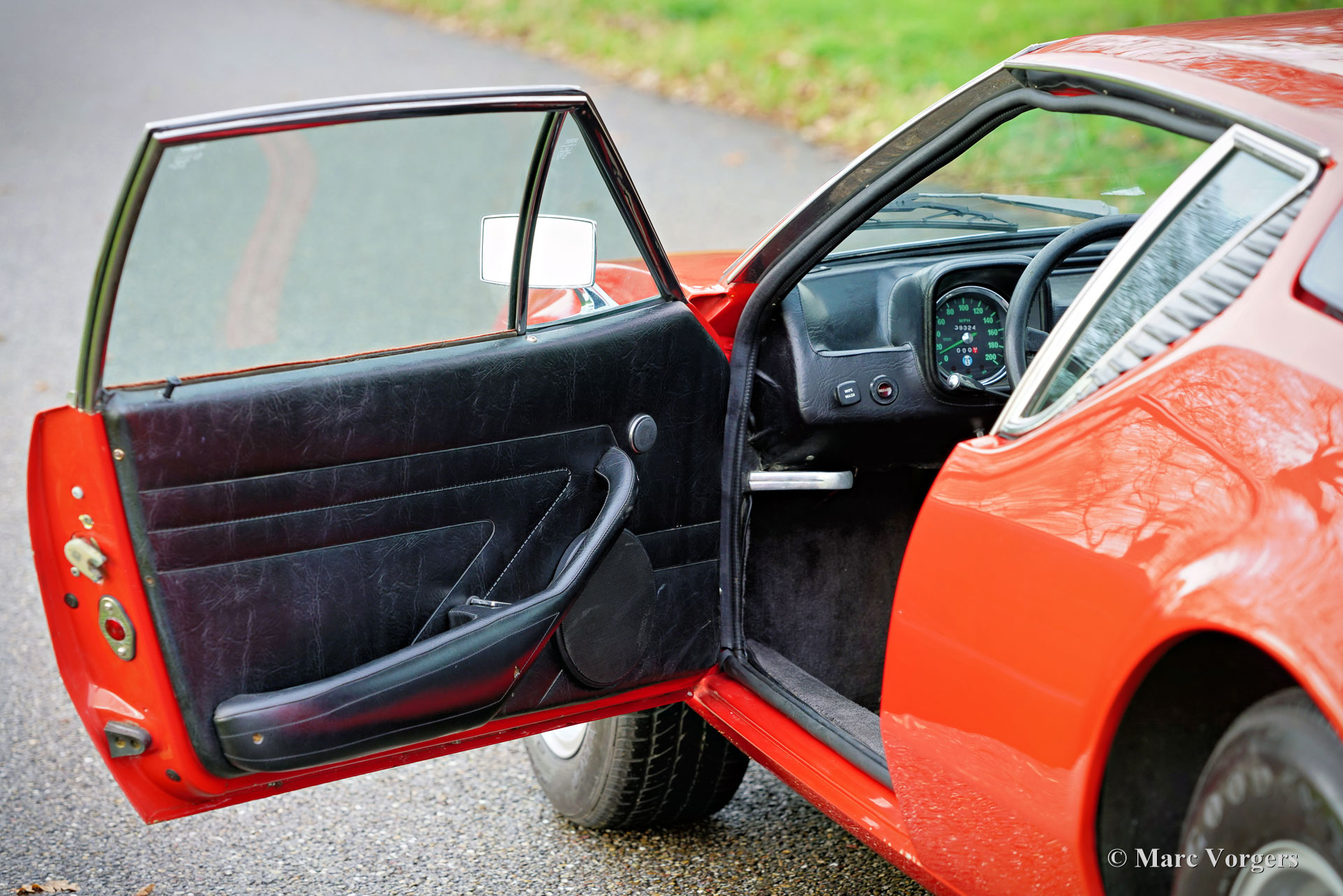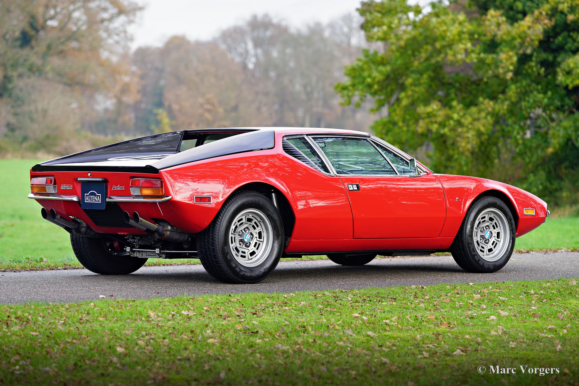 De Tomaso Pantera, Jahr (März) 1972. Farbe Rot kombiniert mit einer schwarzen Kunstlederausstattung und schwarzem Teppich. Dieser De Tomaso Pantera ist derzeit mit einer Motorhaube und Fronthaube aus Carbon ausgestattet, die Originalteile sind vorhanden. Dieser beeindruckende De Tomaso Pantera wurde im Jahr 2015 von Kalifornien in den USA nach Deutschland verschifft. In Deutschland wurde viel Wert daraufgelegt, das Auto mechanisch auf den neuesten Stand zu bringen. Mehrere Teile wurden erneuert, Rechnungen sind vorhanden. Der 351 Ford Cleveland V8-Motor ist mit einem Edelbrock-Ansaugkrümmer, einem Holley-Vergaser und Edelbrock-Zylinderkopfdeckeln aus Aluminium ausgestattet. Dieser De Tomaso Pantera fährt sich sehr spektakulär und der V8-Auspuffsound ist wunderbar! Dieser De Tomaso Pantera wurde nie restauriert und das Auto wird noch mit dem originalen amerikanischen „Titel“ geliefert. Das Auto kann in jedes Land weltweit importiert und zugelassen werden. Dieser Pantera ist in einem guten Zustand mit einer sehr schönen, vollständig originalen Innenausstattung! Karosserie und Lack weisen hier und da einige kleine Mängel auf, die sich jedoch ganz einfach beheben lassen, was sich auch im Preis widerspiegelt. Dieser De Tomaso Pantera wird mit dem Originallenkrad und den originalen De Tomaso Campagnolo-Leichtmetallrädern geliefert, die mit 15-Zoll-Goodyear Eagle-Reifen bereift sind. Der De Tomaso Pantera wurde im italienischen Modena gebaut und ist ein beeindruckender italienischer Sportwagen mit einem zentral eingebauten Ford V8-Motor. De Tomaso verkaufte Panteras in den USA im Rahmen einer Vereinbarung mit Ford über das Händlernetz von Lincoln und Mercury. Die Ölkrise von 1973 beendete die Vereinbarung und De Tomaso übernahm alle Pantera-Anteile. Die Kombination aus italienischem Design (Ghia, Tom Tjaarda), hervorragender Straßenlage und amerikanischer V8-Muskelkraft (330 PS) erwies sich als Erfolgsrezept. Bis 1992 wurden insgesamt 6128 Panteras gebaut. Dieses sehr originale Exemplar ist eines der gesuchten Autos aus den ersten Ford-Jahren! Dieser De Tomaso ist ein seltenes Sammlerstück und ein beeindruckendes Fahrerauto für den Enthusiasten!