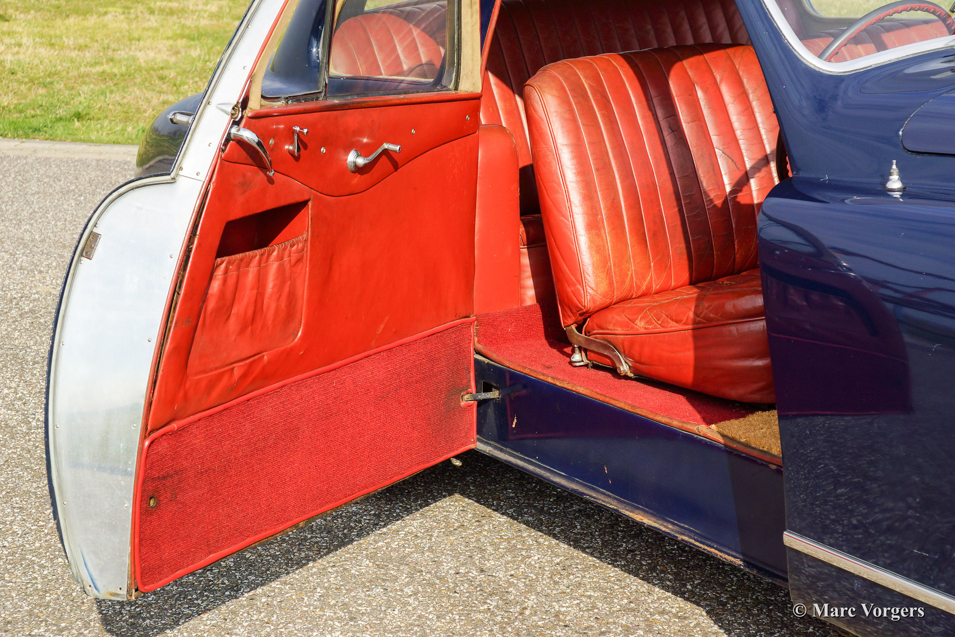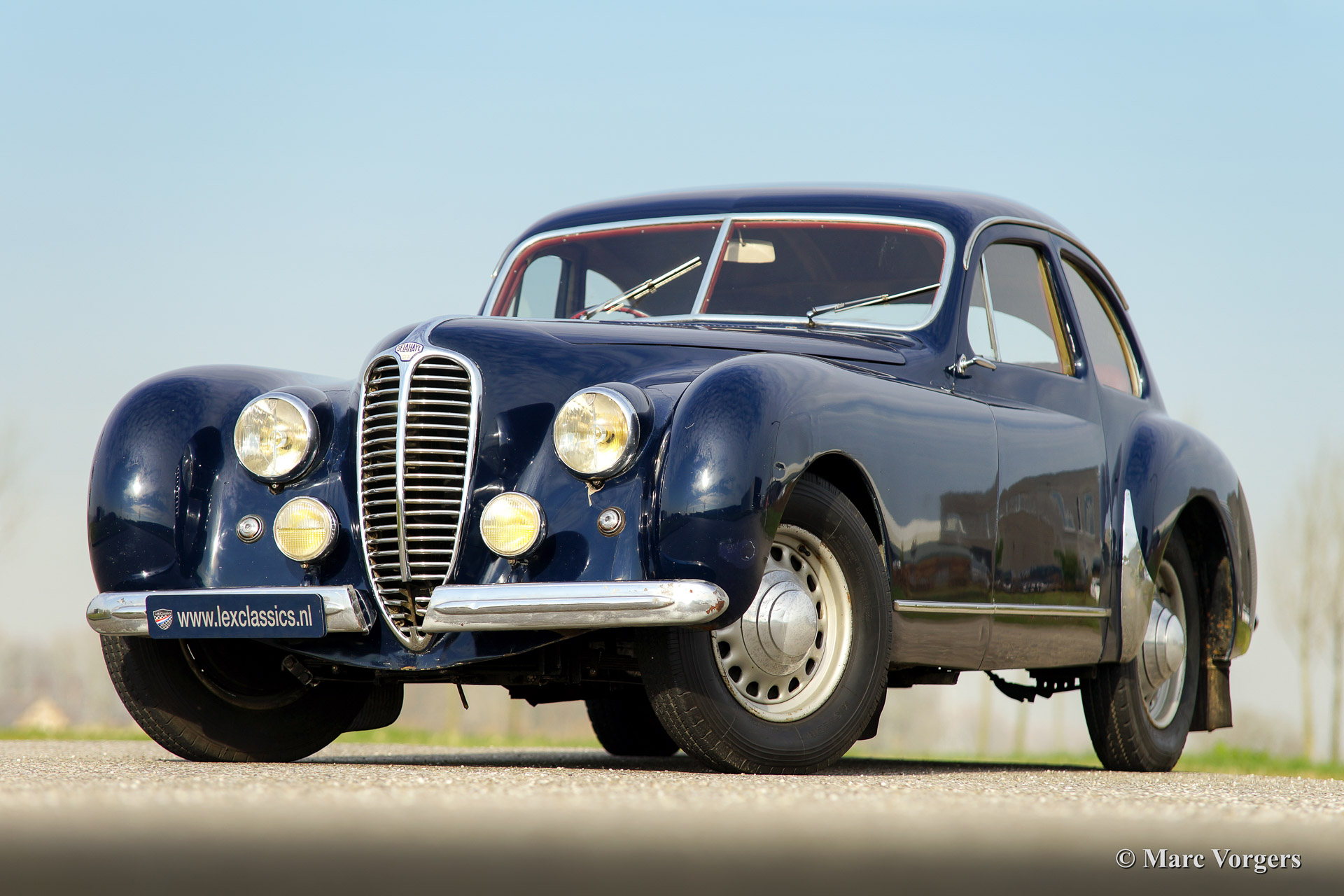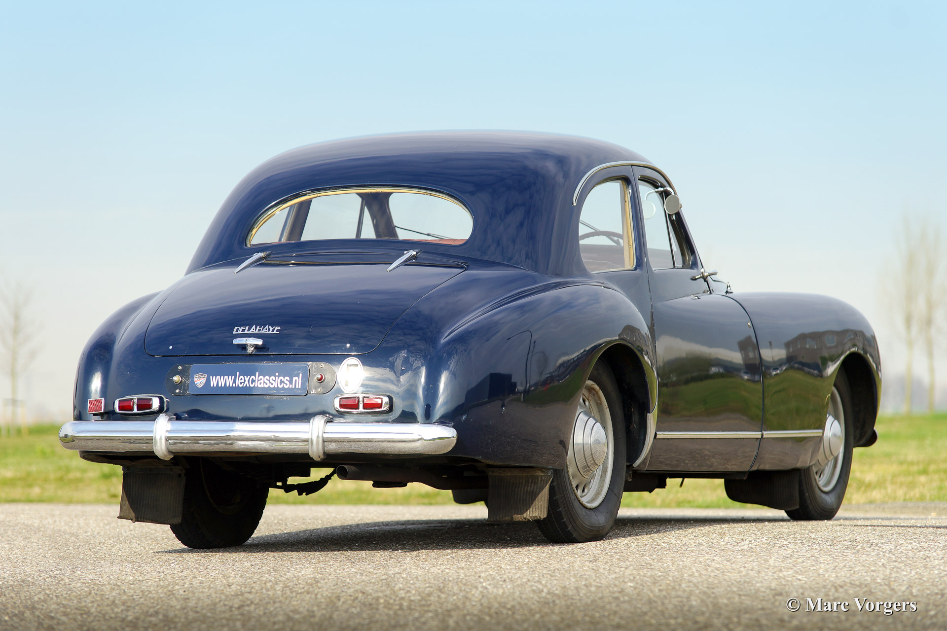 Delahaye 135M Gascogne, body by Dubos, year 1950. Chassis number 8013XX, engine number 8780XX. Colour dark blue with a red leather interior. This Delahaye 135M Gascogne is a fantastic and very rare 'grand routier', only 10 have been built. Not only the rarity is striking, also the originality! In the ancient past the body has been repainted and by now it shows age and traces beyond patina. The chassis, interior and mechanics are in very good original condition and the automobile drives absolutely fantastic. The Cotal pre-selector gearbox is a delight to operate and the sound of the six cylinder engine is almost magical. All original details are present, including the original radio! A next owner may never fully restore this time capsule, may be new high quality paintwork and nothing else please... This grand automobile is a fabulous driver and a high potential car for concours d'elegances. 'As is' in a 'survivors' class and partly restored with interior retained original in any suitable class. A sound investment with high potential for the discerning collector.