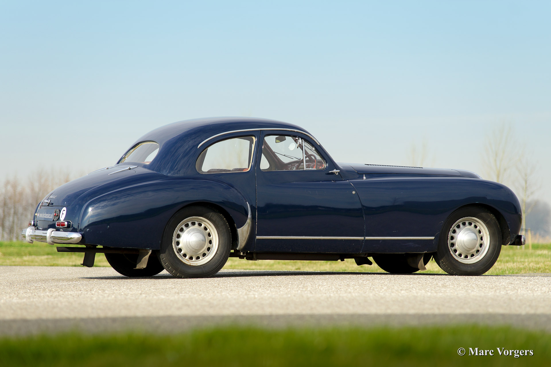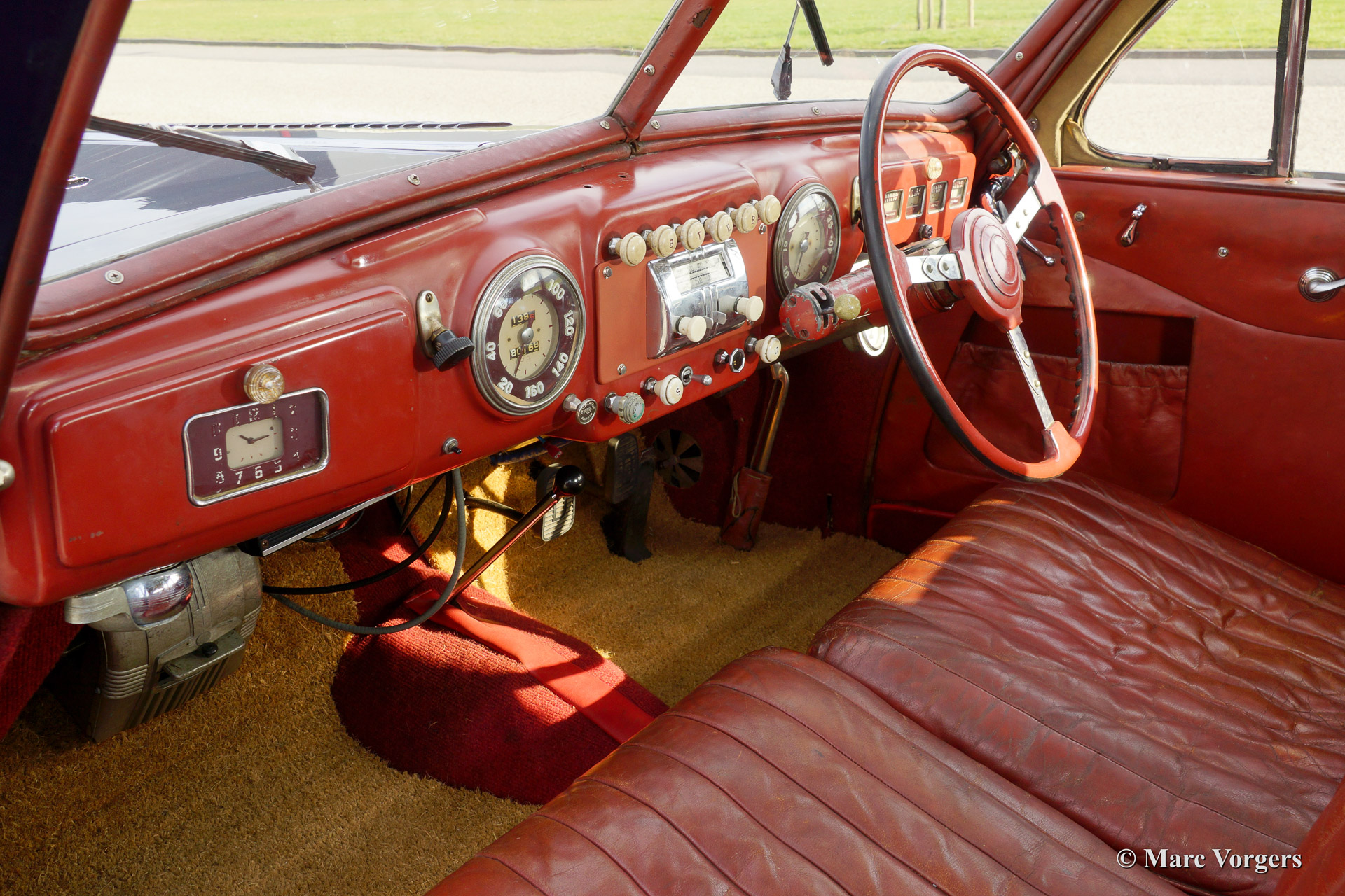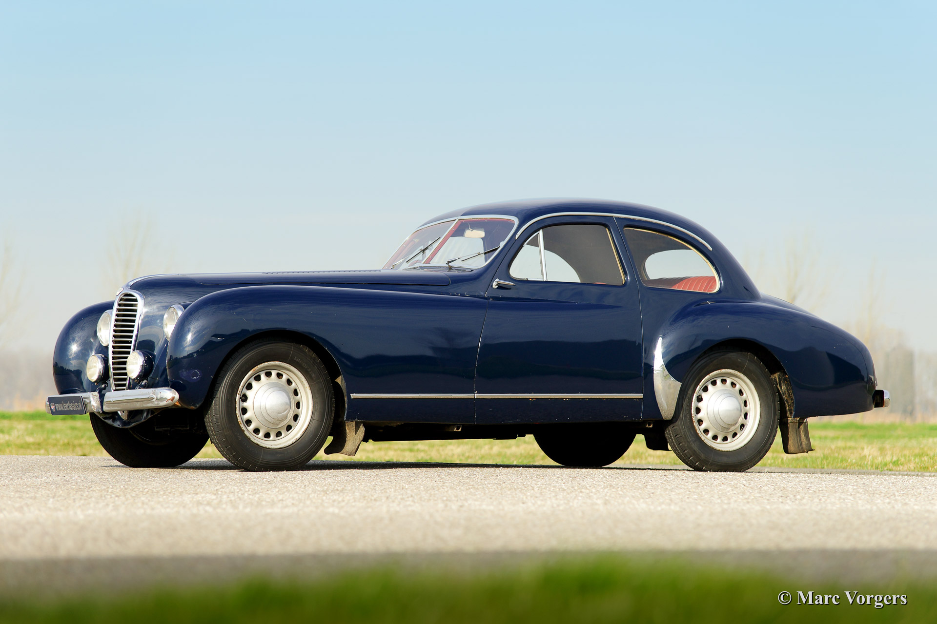 Delahaye 135M Gascogne, body by Dubos, year 1950. Chassis number 8013XX, engine number 8780XX. Colour dark blue with a red leather interior. This Delahaye 135M Gascogne is a fantastic and very rare 'grand routier', only 10 have been built. Not only the rarity is striking, also the originality! In the ancient past the body has been repainted and by now it shows age and traces beyond patina. The chassis, interior and mechanics are in very good original condition and the automobile drives absolutely fantastic. The Cotal pre-selector gearbox is a delight to operate and the sound of the six cylinder engine is almost magical. All original details are present, including the original radio! A next owner may never fully restore this time capsule, may be new high quality paintwork and nothing else please... This grand automobile is a fabulous driver and a high potential car for concours d'elegances. 'As is' in a 'survivors' class and partly restored with interior retained original in any suitable class. A sound investment with high potential for the discerning collector.