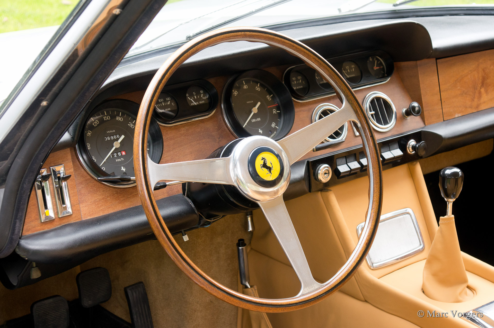 Produced alongside the 275 GTB and the exclusive 500 Superfast, it was designed as a more comfortable vehicle to drive than Ferrari's two-seater models. The impressive V12 engine of 3967cc produces a very healthy 300bhp at 6600rpm, enough to propel the 330 GT from zero to sixty in just 6.3 seconds and onto a top speed of 240 km/h. A four-speed gearbox with electronic overdrive was fitted. In reality, 330's offered perhaps the best-balanced and most accomplished design of all the four seater V12's ever constructed by Ferrari. Borrani wire wheels were fitted as standard. As you would have expected from one of the worlds most expensive grand touring cars, 330 interiors were very luxurious.