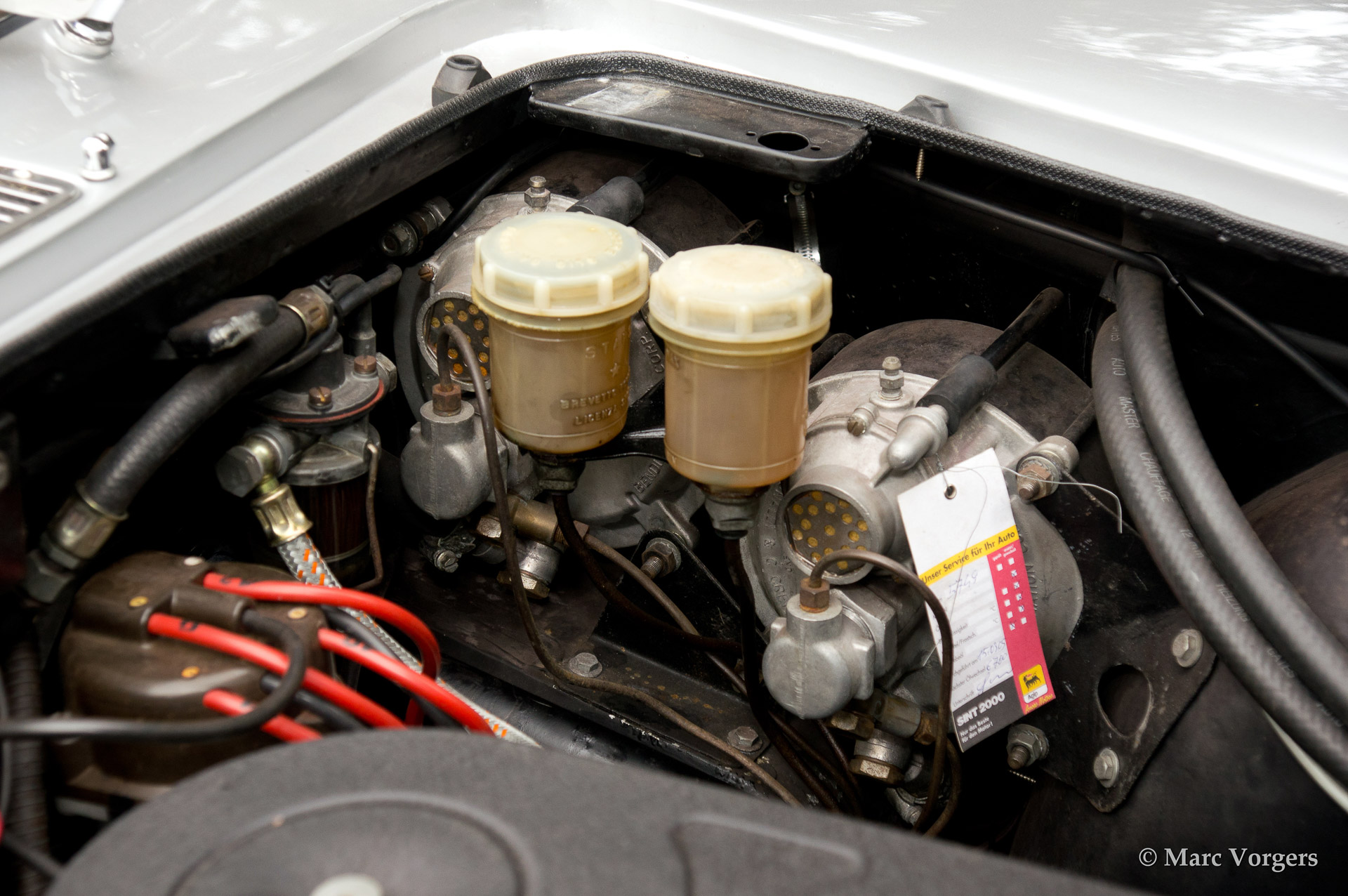 The ultimate version of this engine (3285 cc.) appeared in the Ferrari 275 GTB/4 and the Ferrari NART Spyder in the year 1966. This engine version was constructed with two camshafts per cylinder row and dry sump lubrication (without oil sump). Six double Weber carburettors were fitted and a capacity of