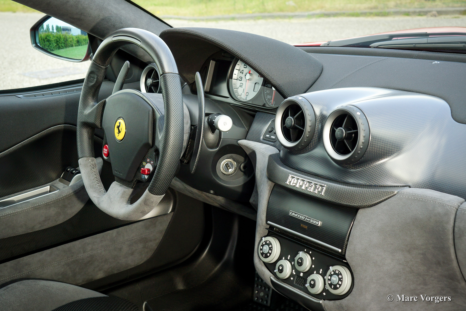 Ferrari 599 GTO, Jahr 2011. Fahrgestellnummer: EFF7ORDB000180XXX. Farbe Rosso Corsa mit einem Anthrazitfarbiges Alcantara Innenraum. Dieses herrliche Ferrari 599 GTO wurde neu verkauft in Deutschland. Das Auto wurde an den ersten Eigentümer geliefert von Ferrari Vertreter Eberlein in Kassel. Service und Wartung wurde von Ferrari Vertreter Riller & Schnauck durchgeführt. Dieser seltene und sehr exklusive Ferrari kommt von den ersten Besitzer und der Wagen hat nur 1490 Kilometer gefahren. Diese feine 599 GTO ist in brandneuen Top-Zustand! Der Ferrari 599 GTO wurde in einer limitierten Serie von 599 Autos gebaut. Der 599 GTO wurde nur neu verkauft an loyale Ferrari Kunden. Dieser Ferrari 599 GTO verfügt über die wichtigsten Werksoptionen. Diese seltene 599 GTO mit geringer Laufleistung, dokumentierte Geschichte und Herkunft vom ersten Besitzer ist ein wahres Sammlerstück und eine solide Investition.
