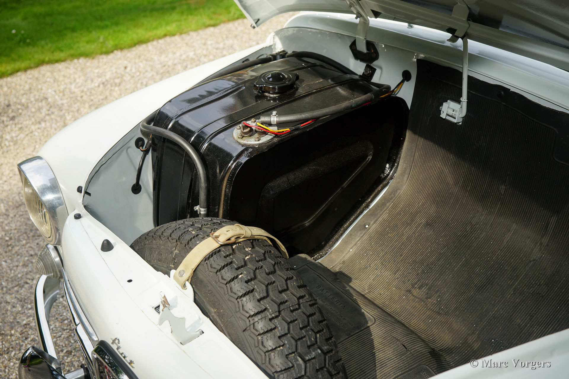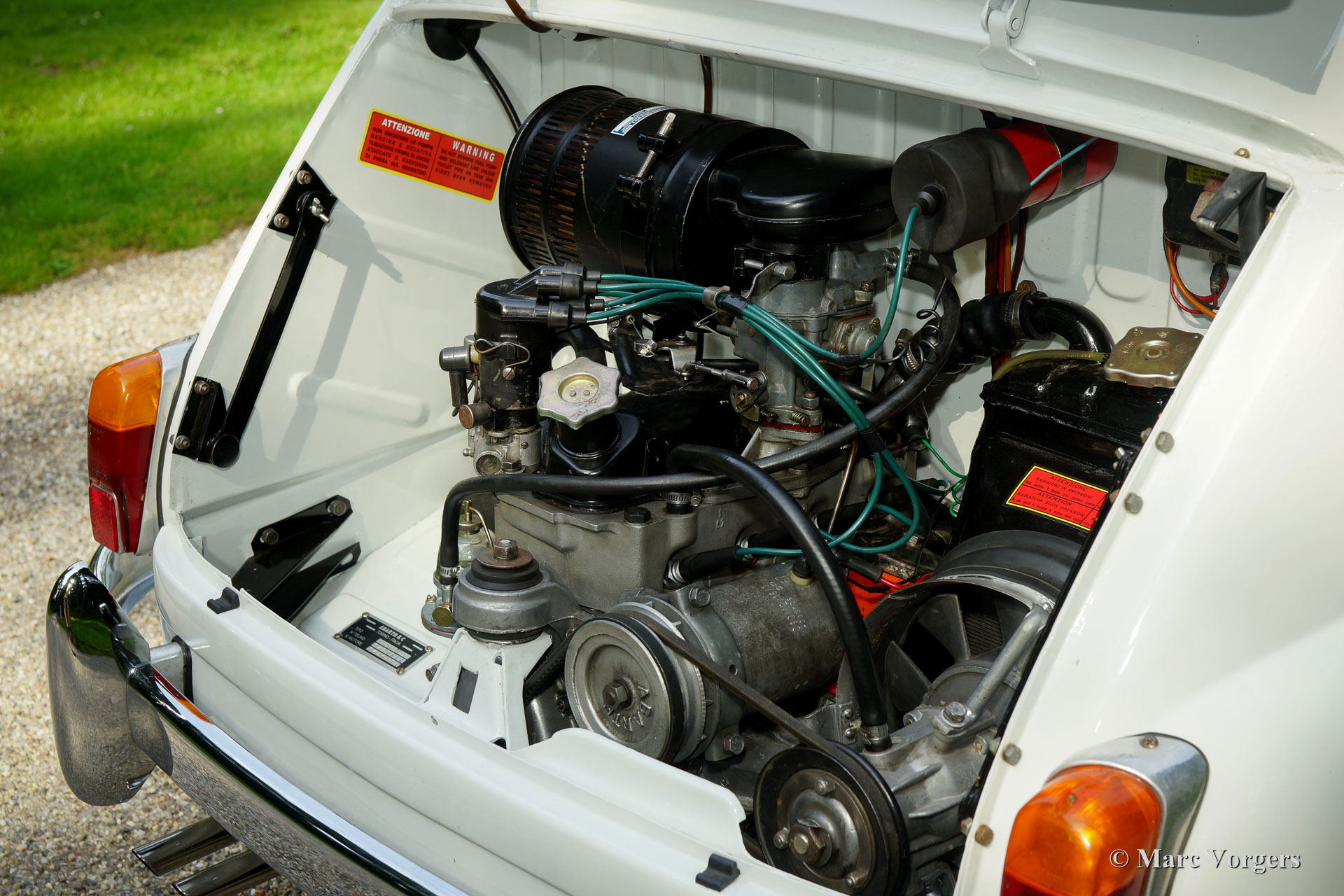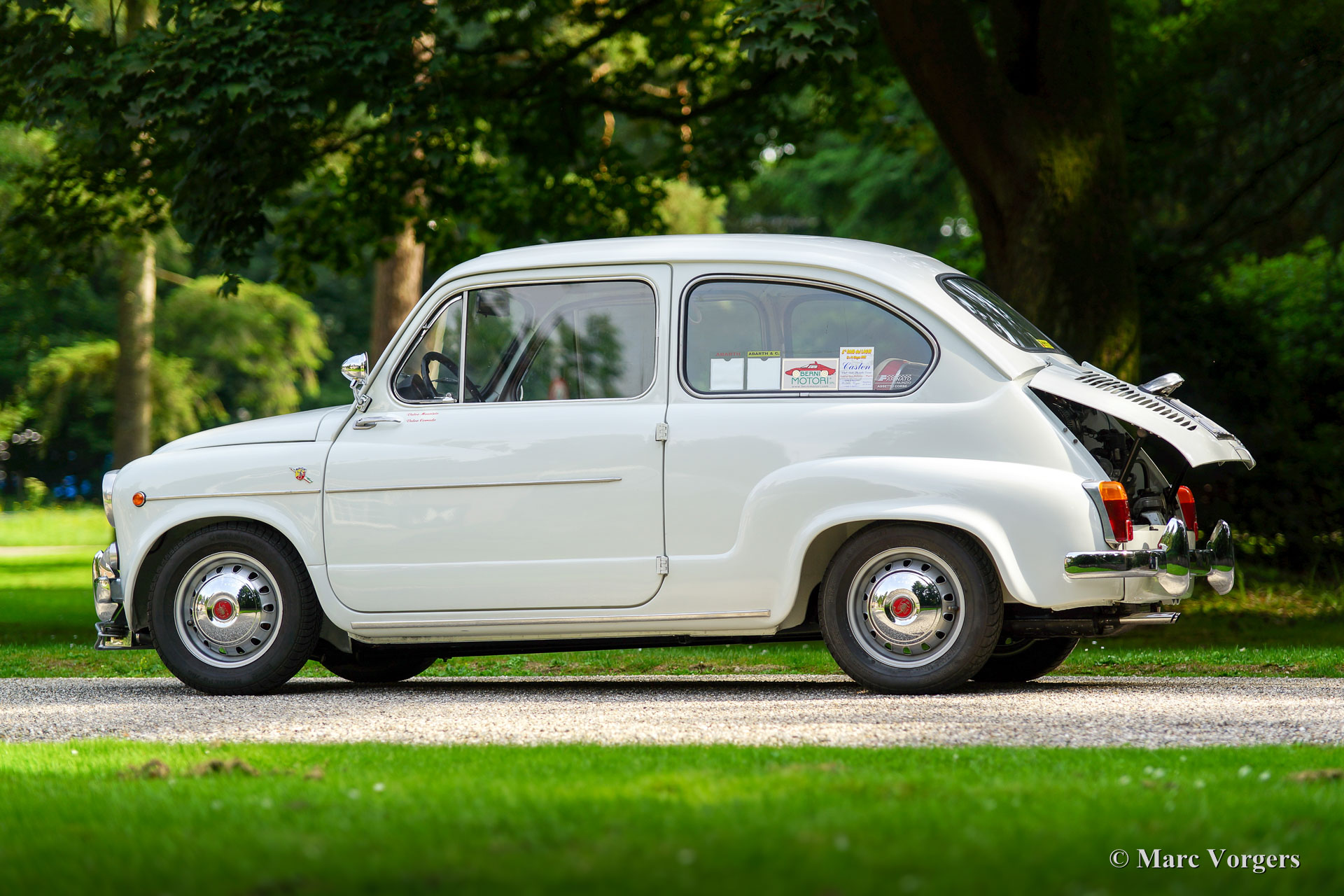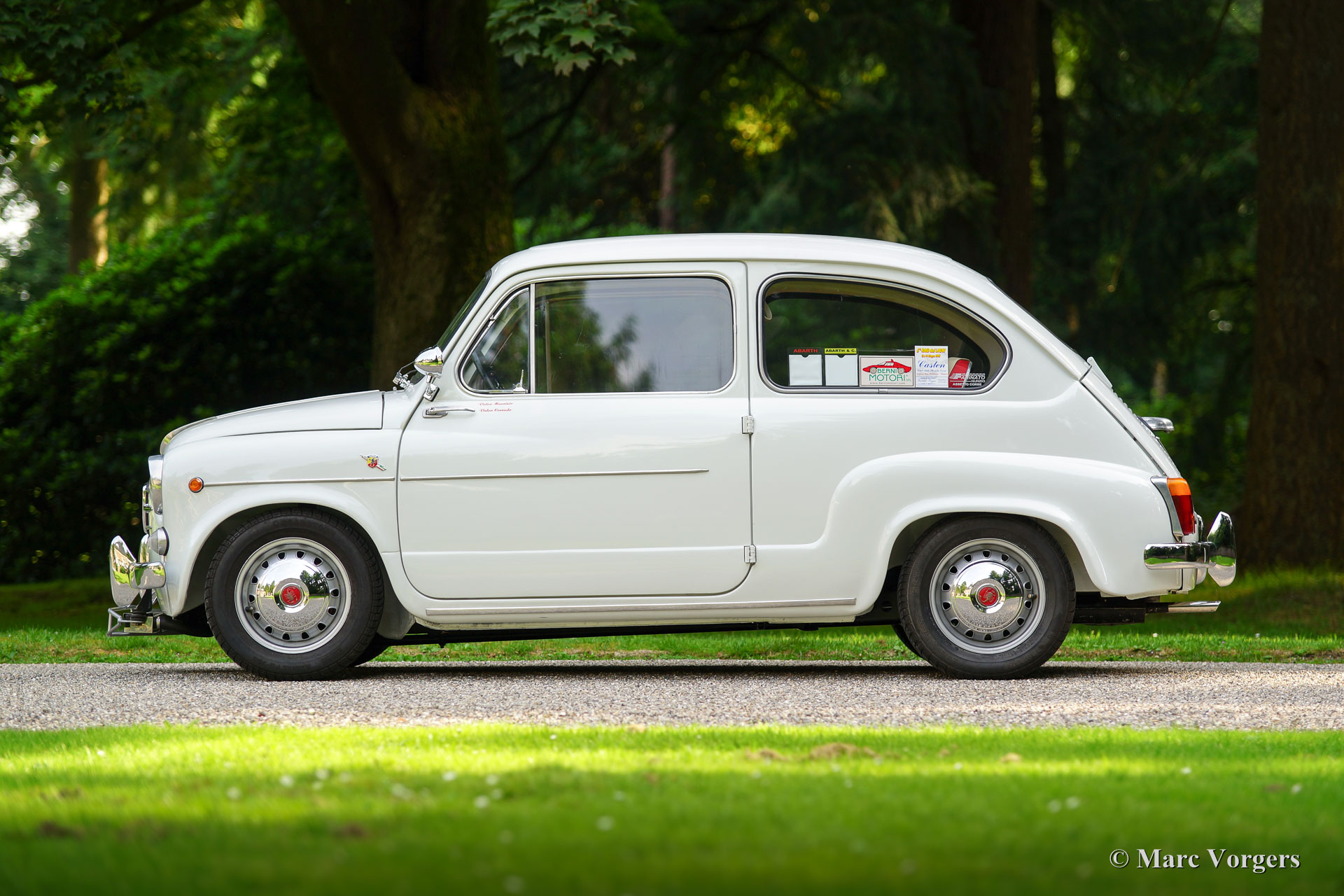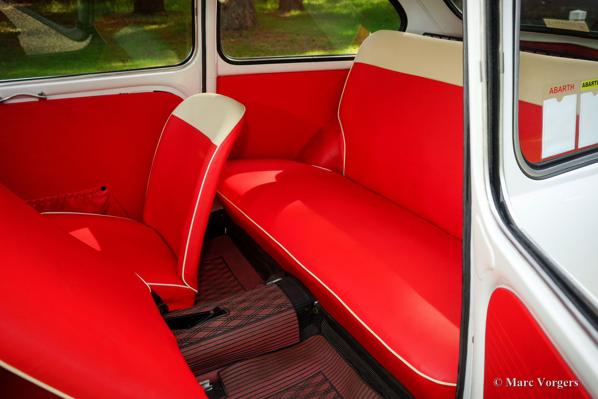 Fiat 600 D Abarth 850 TC, Jahr 1962. Farbe weiß mit einem roten Kunstleder Innenraum mit weißen Paspeln beschnitten. Schwarzer Gummi-Teppich mit einer schützenden anthrazit / roten Gummi-Schutzmatte oben. Dieser großartige Fiat Abarth ist offiziell benannt: Fiat 600 D 'Derivata' Abarth 850 TC. Die umfangreiche Beschreibung bedeutet, dass das Auto in der Fiat-Fabrik gebaut wurde und dass der Fiat dann in der Abarth-Fabrik in Turin als Abarth 850 TC fertiggestellt wurde. Dieser atemberaubende Fiat wurde neu verkauft zu einem Herrn Russo Dolofero, der damals in Sizilien ansässig war. Das Auto wurde früh in seinem Leben in den Rennwettbewerben im Süden Italiens eingeweiht. Fotos von dem Auto auf der Peragusa-Strecke (im Jahr 1965) sind präsent. In den 1970er und 1980er Jahren wurde das Auto abgestellt, und viele Jahre später, im Jahr 2006, wurde das Auto von den sizilianischen Brüdern Corrado und Maurizio Valvo entdeckt. Die Brüder haben das Fiat Abarth zu seinem aktuellen Pracht-TOP-Zustand wiederhergestellt! Der Motor ist ‘fast passend‘/ (‘nearly matching‘) (Motornummer 144 statt der Originalnummer 140) und wurde von dem renommierten Spezialisten Berni Motori in Malao, Norditalien komplett überholt. Dieser seltene und atemberaubende ECHTE Abarth ist seit dem Jahr 2016 in den Niederlanden registriert. Ein rares TOP-Exemplar!