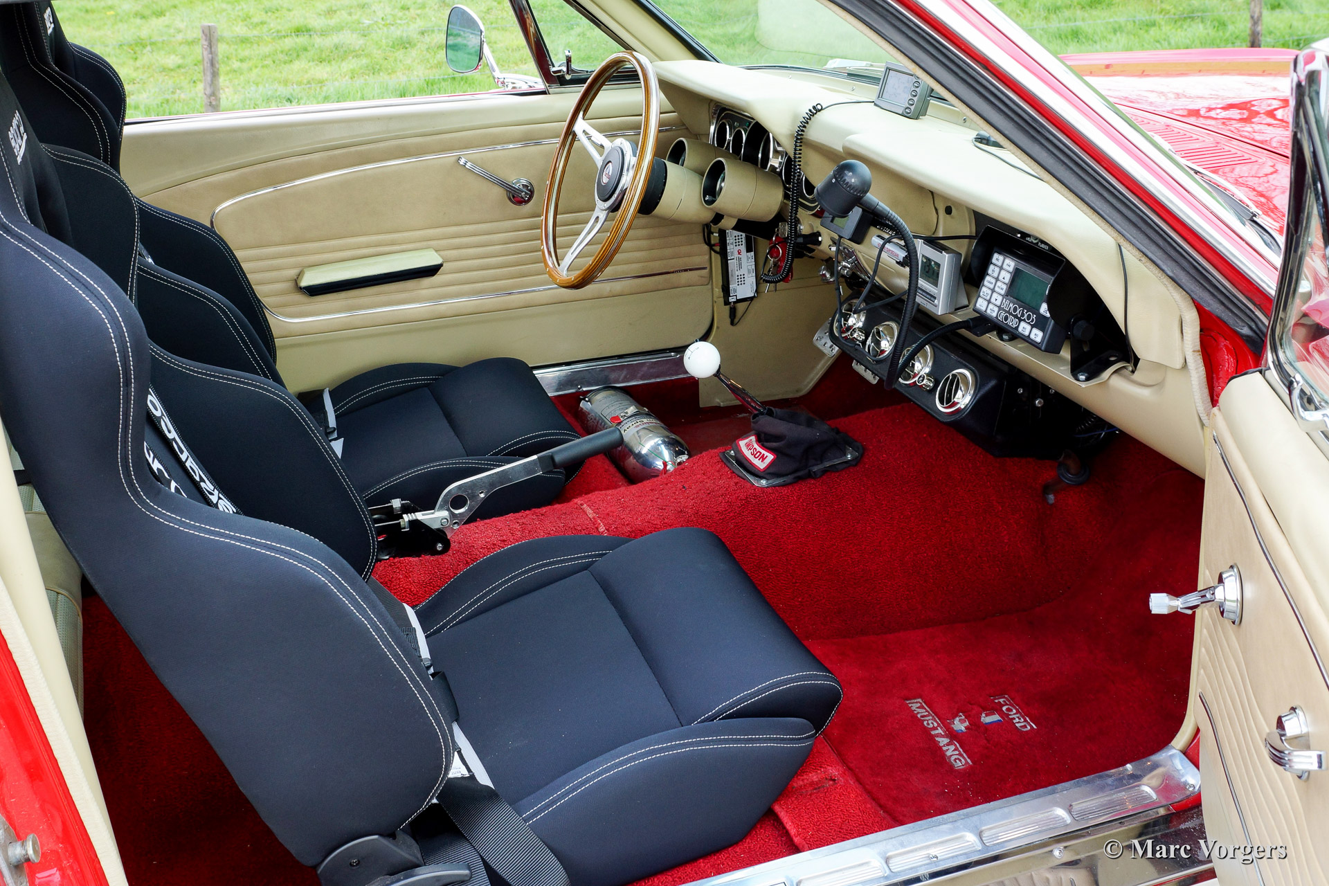 Ford Mustang Hardtop 2 + 2 Coupé, Jahr 1966. Farbe Rot. Innenausstattung beige / rot mit Anthrazit farbige Rallye Sitze (die originelle beige Sitze sind vorhanden). Diese beeindruckender Ford Mustang Hardtop ist in sehr gutem bis exzellenter Zustand! Das Auto wurde fertiggestellt für historische Rallye-Veranstaltungen. Das Auto fährt fabelhaft und hat richtig power! Der Ford Mustang ist ausgestattet mit ein späterer 5,8 Liter-V8-Motor, ein C-code Schaltgetriebe, Gear Vendor Overdrive, Sparco Schalensitze, 4-Punkt-Sicherheitsgurten, EZ elektrische Servolenkung, Leichtmetallräder, zusätzliche Fernscheinwerfer, Klimaanlage und eine Reihe von Rallye Instrumenten. Eine sehr robuste, leistungsstarke und spektakulären amerikanischen Muscle-Car!