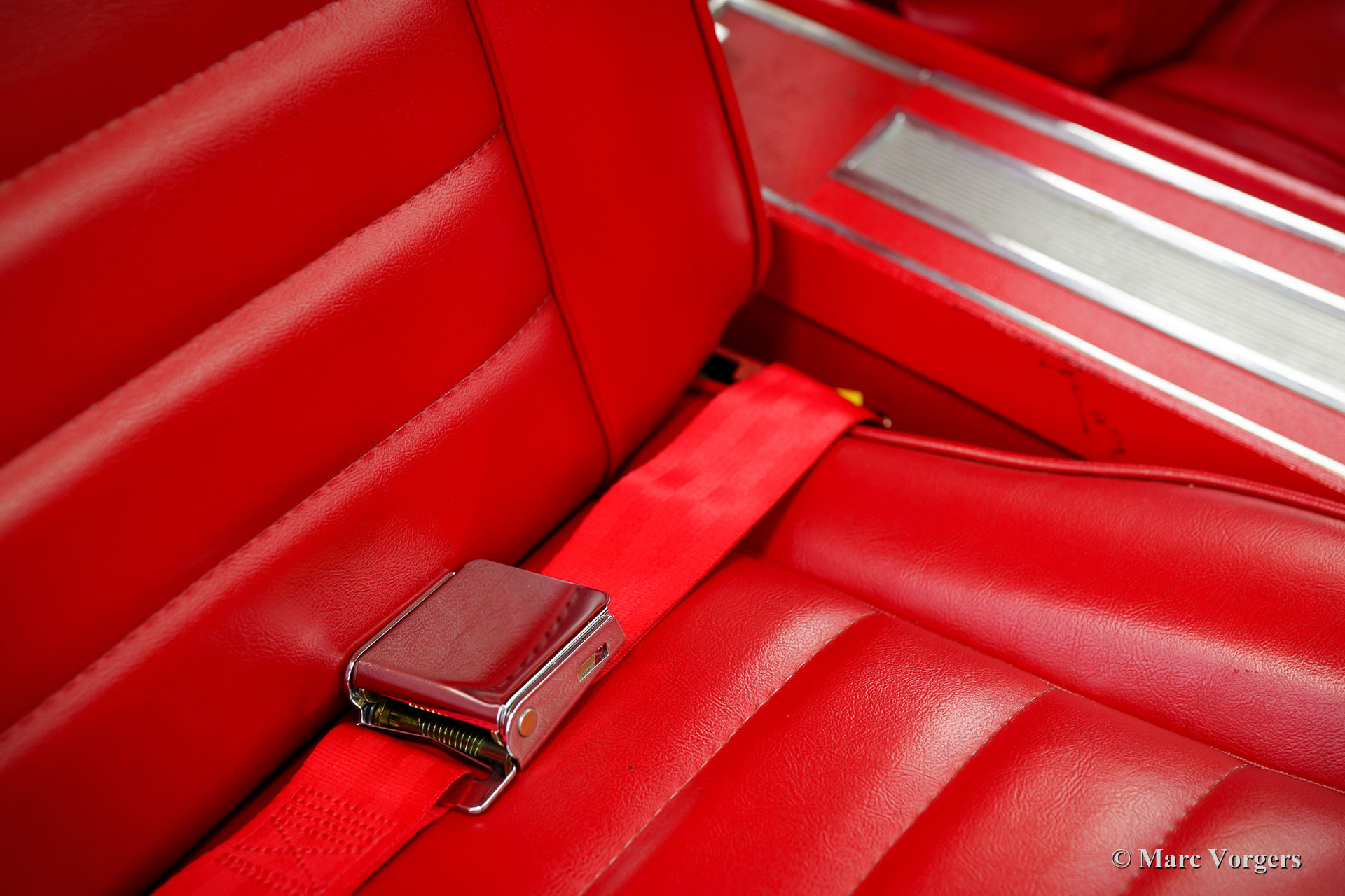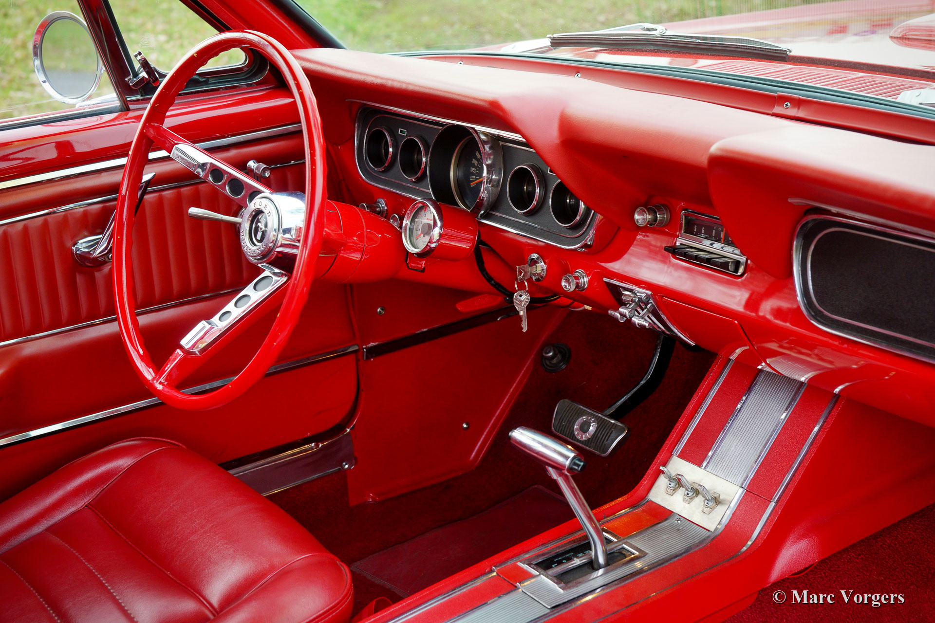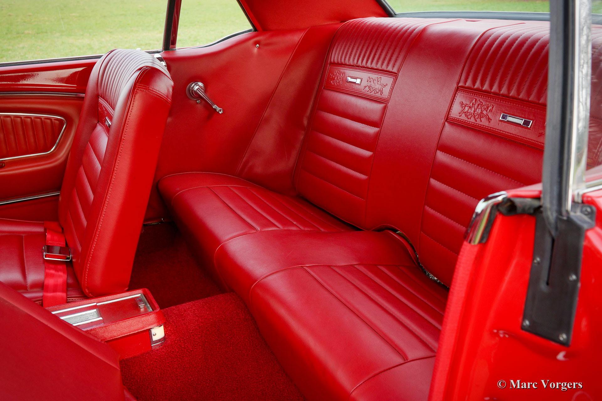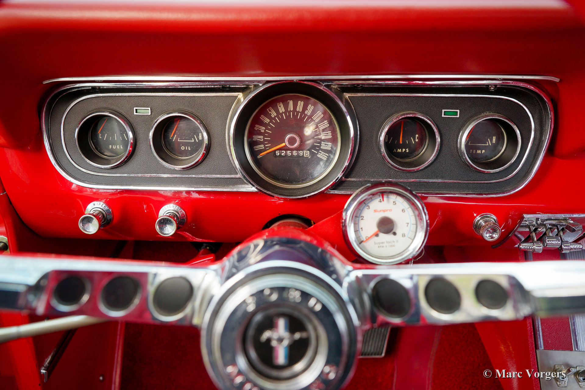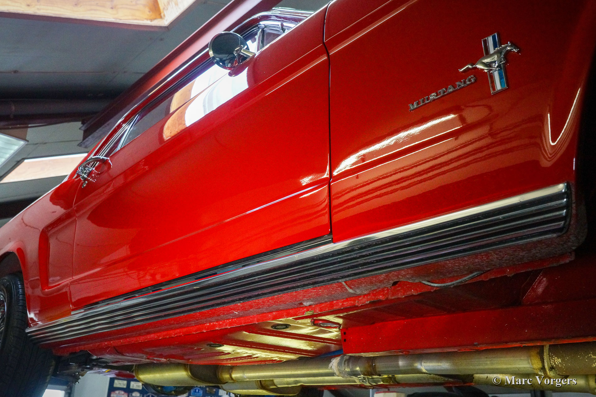 Ford Mustang Coupé, Jahr 1966. Farbe Rot kombiniert mit einem roten Pony-Interieur und einem roten Teppich. Dieser wunderschöne Ford Mustang wurde in den USA neu verkauft und in den Jahren 2009 - 2011 umfassend restauriert. Die Karosserie wurde von dem blanken Metall aus restauriert. Alles am Auto wurde restauriert, erneuert und / oder überholt. Motor, Getriebe, Hinterachse und Fahrwerk wurden komplett überholt. Ein Fotobericht und Rechnungen der Restaurierung liegen vor. Das Auto wurde 2012 in die Niederlande exportiert. Das Auto ist in einem hervorragenden Top-Zustand und der Wagen zeigt wundervolle Originaldetails. Der Innenraum ist in makellosem Zustand und zeigt das Originallenkrad und das Ford Radio. Sie finden nur einen kleinen Riss im Dachhimmel. Der Motor ist ein 5-Liter-V8-Aggregat, das mit Zylinderköpfen und einem Ansaugkrümmer von Edelbrock ausgestattet ist. Der Motor ist sehr leistungsstark und klingt fantastisch! Das Fahrwerk wurde mit speziellen Federn und Stoßdämpfern aufgerüstet, um eine festere Fahrt zu ermöglichen. Darüber hinaus ist das Auto ausgestattet mit getöntem Glas, einem automatischen 3-Gang-Getriebe und wunderschönen Originalrädern mit brandneuen Reifen. Es wurde viel Geld investiert, um diesen Ford Mustang in diesen wunderbaren Zustand zu bringen, ein äußerst begehrenswertes Beispiel, das Sie in vollen Zügen genießen können!
