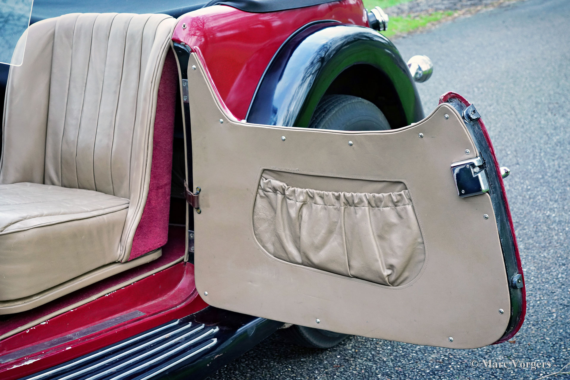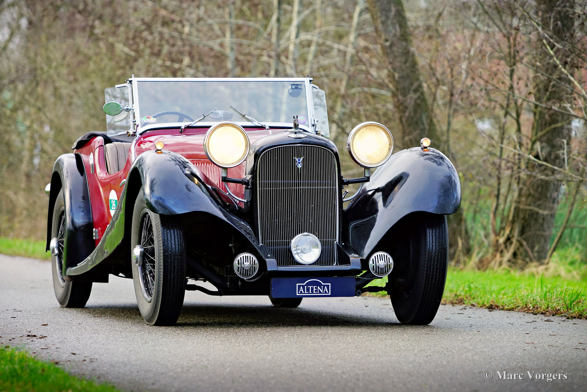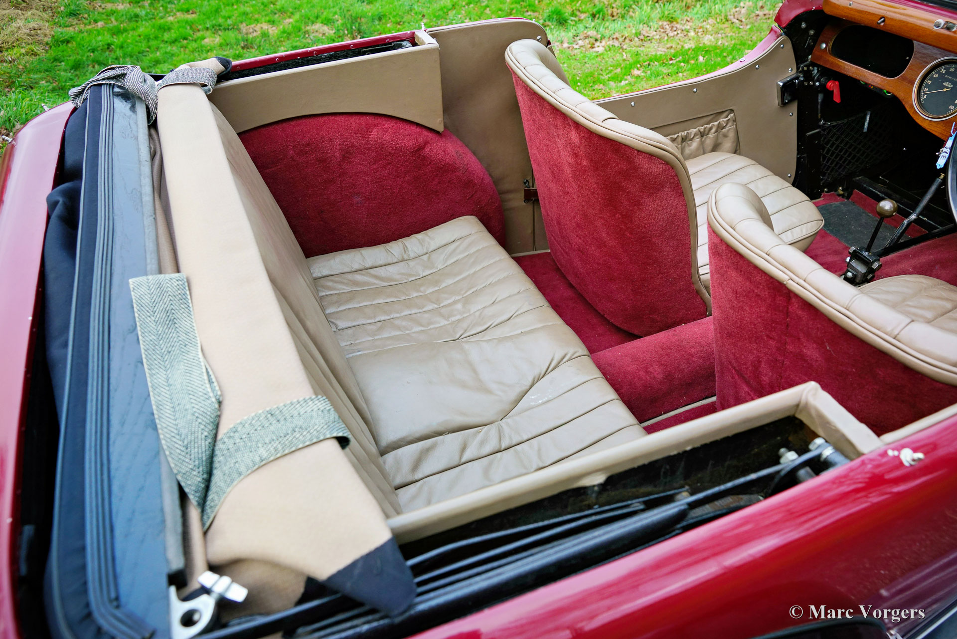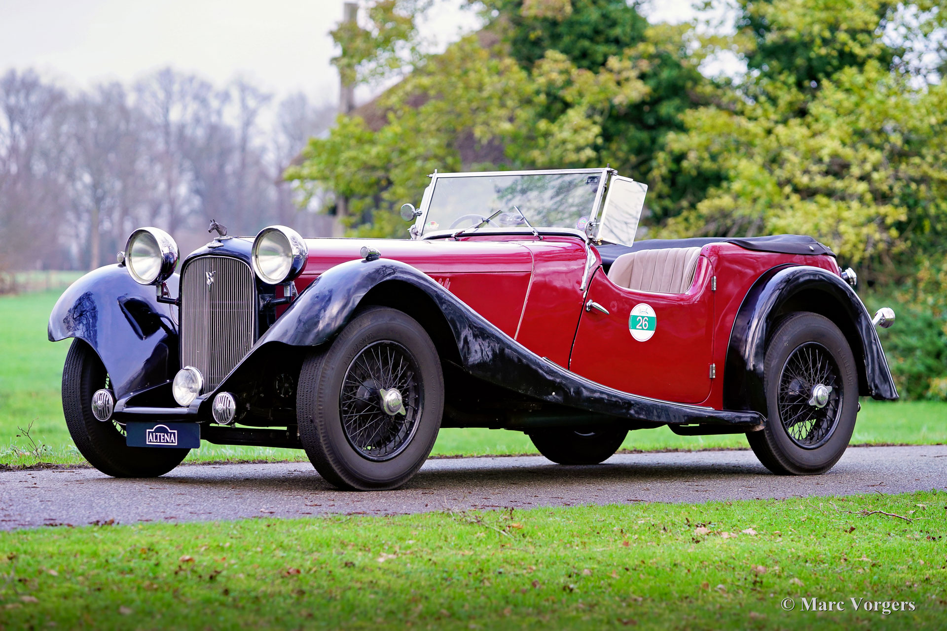 HE (Herbert Engineering) ‘Nelson’ V8 Special, Baujahr 1931. Farbe Dunkelrot (Burgunderrot) über Schwarz kombiniert mit einer Innenausstattung aus beigem Leder und einem schwarzen Verdeck. Herbert Engineering ist einer der vielen kleinen britischen Autohersteller aus der Zeit vor dem Zweiten Weltkrieg, die seit Jahrzehnten in Vergessenheit geraten sind. Die Firma H.E. wurde kurz nach der Einführung dieses Modells geschlossen. HE-Autos sind sehr, sehr selten, daher sind wir stolz, Ihnen dieses sehr interessante Sondermodell präsentieren zu können. Das Auto hat eine dokumentierte Geschichte von 90 Jahren! Am interessantesten ist die Tatsache, dass der zweite Besitzer, ein Mr. Nelson, 1934 den ursprünglichen Sechszylinder-Reihenmotor gegen ein amerikanisches V8-Triebwerk austauschte! Dies ist nicht das erste britische Auto mit einem amerikanischen 8-Zylinder-Motor; dieser Verdienst gebührt dem Railton Terraplane von 1933. Aber eines der ersten britischen Autos (und Sondermodelle), die mit einem amerikanischen V8-Motor ausgestattet sind! Der Motor ist ein 3,6-Liter-Ford-V8 mit flachem Kopf, der sehr tief im Chassis montiert ist! Dieses Chassis ist hinten bereits „underslung“ (Achse über dem Chassis montiert). Der Achsantrieb wurde ebenfalls mit einer höheren Übersetzung aufgerüstet und die mechanischen Seilzugbremsen wurden gegen ein hydraulisches System ausgetauscht. Vor sechs Jahren wurde der Motor mit neuen Hochkompressionszylinderköpfen und elektronischer Zündung ausgestattet. In den letzten fünf Jahren wurde das Auto bei Altena Classic Service gewartet und viel Geld wurde investiert, um das Auto mechanisch und technisch auf den neuesten Stand zu bringen und zu halten. Der Besitzer hat ohne Probleme an großartigen historischen Fahrveranstaltungen wie der Via Iberica 2022 und der Herzberger Trophy 2023 teilgenommen. Dieses einzigartiges HE Nelson V8 Special sieht auf jeden Fall zielstrebig aus, die Motorhaube macht fast die Hälfte der Länge des Autos aus! Dies ist ein sehr bemerkenswertes Special mit einer wunderbaren Vintage-Patina. Das Auto ist derzeit in den Niederlanden zugelassen und kann in jedes Land importiert und dort zugelassen werden.