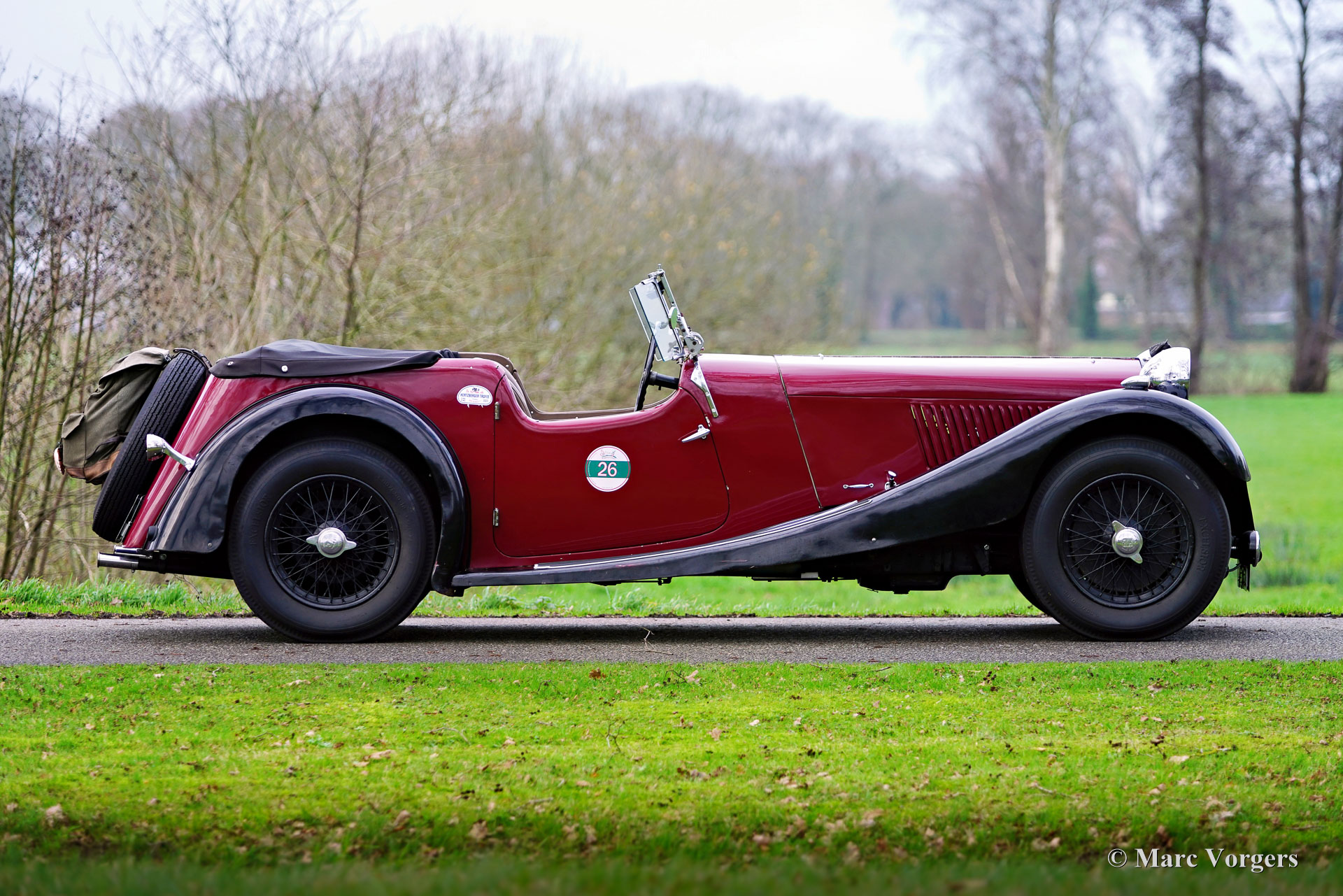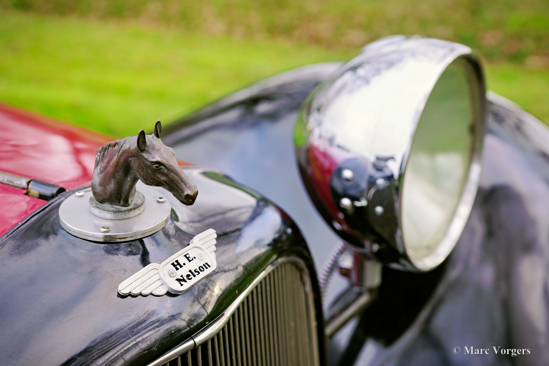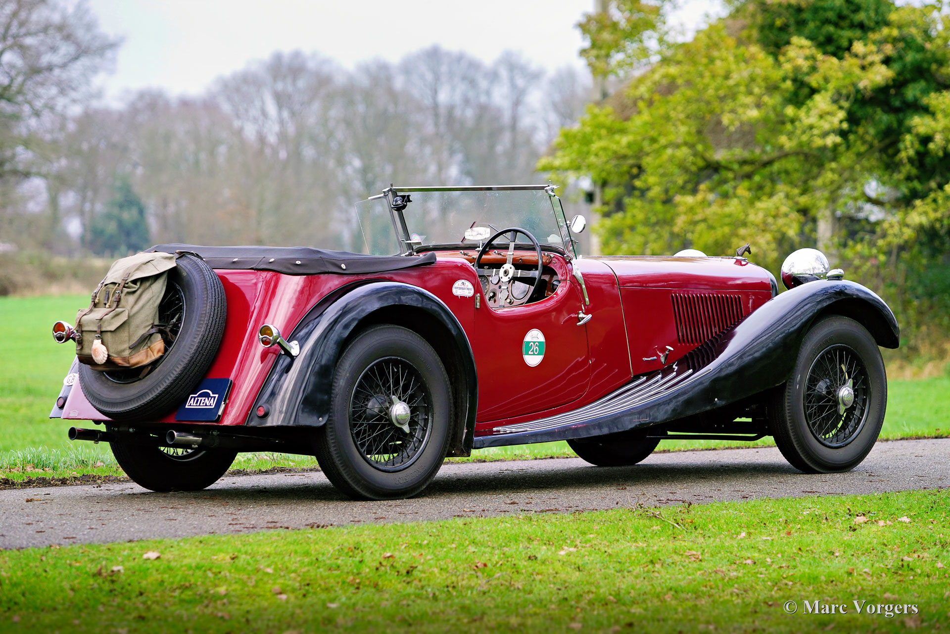 HE (Herbert Engineering) ‘Nelson’ V8 Special, Baujahr 1931. Farbe Dunkelrot (Burgunderrot) über Schwarz kombiniert mit einer Innenausstattung aus beigem Leder und einem schwarzen Verdeck. Herbert Engineering ist einer der vielen kleinen britischen Autohersteller aus der Zeit vor dem Zweiten Weltkrieg, die seit Jahrzehnten in Vergessenheit geraten sind. Die Firma H.E. wurde kurz nach der Einführung dieses Modells geschlossen. HE-Autos sind sehr, sehr selten, daher sind wir stolz, Ihnen dieses sehr interessante Sondermodell präsentieren zu können. Das Auto hat eine dokumentierte Geschichte von 90 Jahren! Am interessantesten ist die Tatsache, dass der zweite Besitzer, ein Mr. Nelson, 1934 den ursprünglichen Sechszylinder-Reihenmotor gegen ein amerikanisches V8-Triebwerk austauschte! Dies ist nicht das erste britische Auto mit einem amerikanischen 8-Zylinder-Motor; dieser Verdienst gebührt dem Railton Terraplane von 1933. Aber eines der ersten britischen Autos (und Sondermodelle), die mit einem amerikanischen V8-Motor ausgestattet sind! Der Motor ist ein 3,6-Liter-Ford-V8 mit flachem Kopf, der sehr tief im Chassis montiert ist! Dieses Chassis ist hinten bereits „underslung“ (Achse über dem Chassis montiert). Der Achsantrieb wurde ebenfalls mit einer höheren Übersetzung aufgerüstet und die mechanischen Seilzugbremsen wurden gegen ein hydraulisches System ausgetauscht. Vor sechs Jahren wurde der Motor mit neuen Hochkompressionszylinderköpfen und elektronischer Zündung ausgestattet. In den letzten fünf Jahren wurde das Auto bei Altena Classic Service gewartet und viel Geld wurde investiert, um das Auto mechanisch und technisch auf den neuesten Stand zu bringen und zu halten. Der Besitzer hat ohne Probleme an großartigen historischen Fahrveranstaltungen wie der Via Iberica 2022 und der Herzberger Trophy 2023 teilgenommen. Dieses einzigartiges HE Nelson V8 Special sieht auf jeden Fall zielstrebig aus, die Motorhaube macht fast die Hälfte der Länge des Autos aus! Dies ist ein sehr bemerkenswertes Special mit einer wunderbaren Vintage-Patina. Das Auto ist derzeit in den Niederlanden zugelassen und kann in jedes Land importiert und dort zugelassen werden.