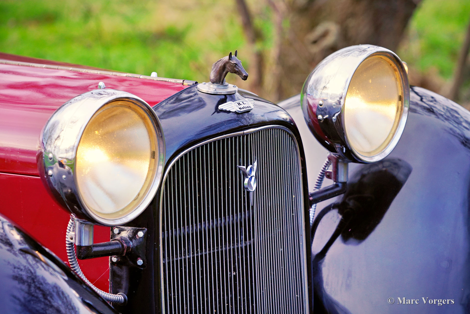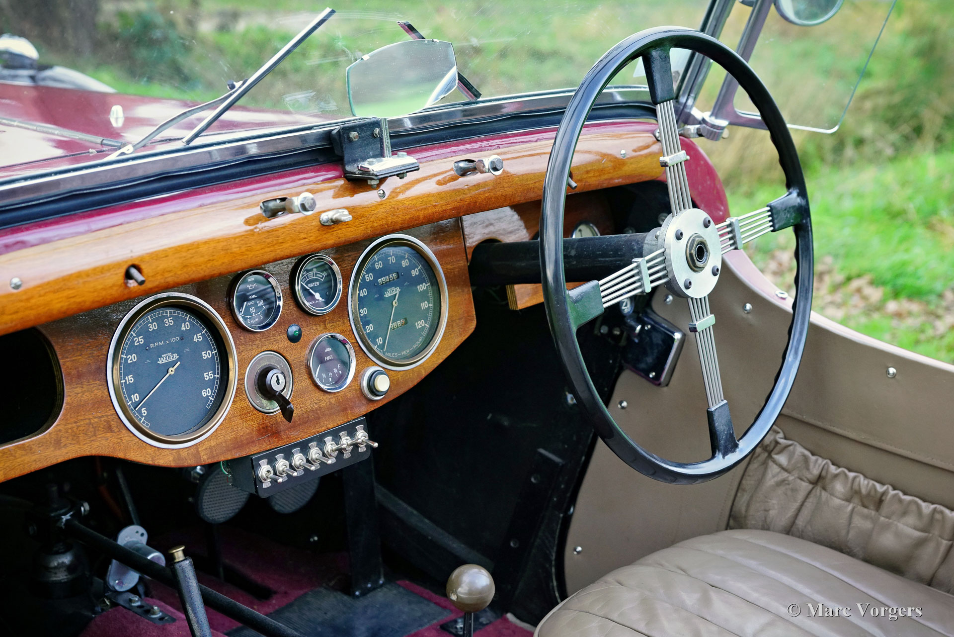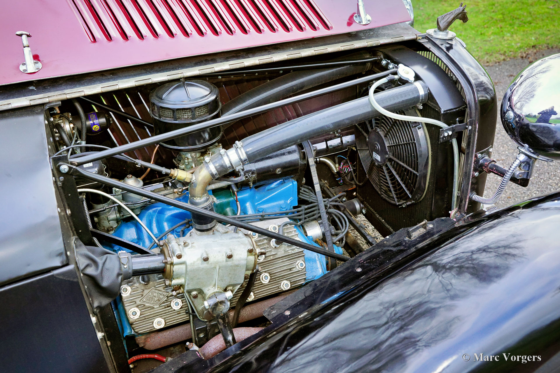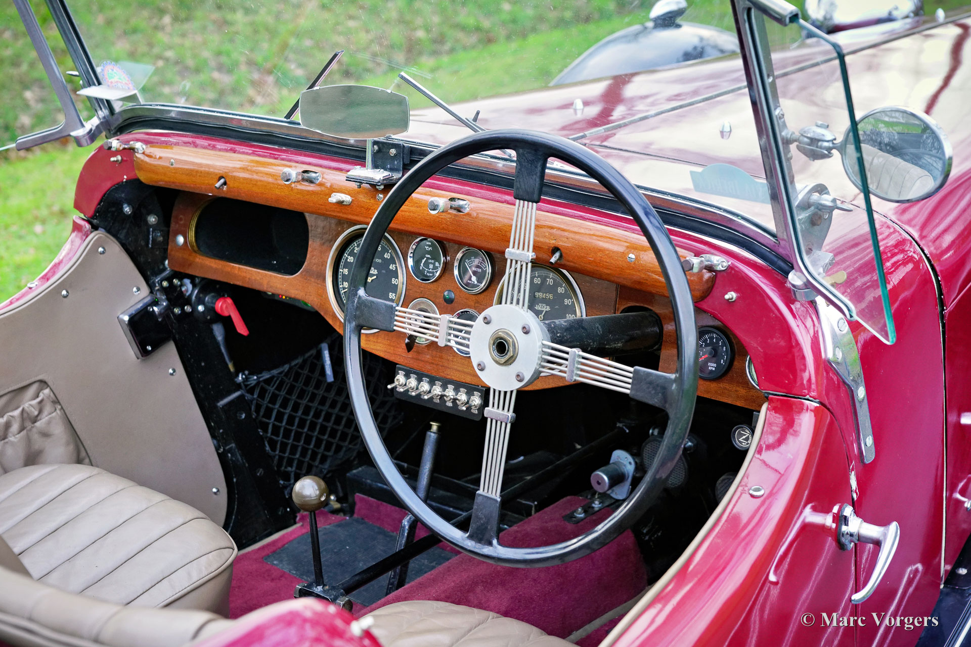 HE (Herbert Engineering) ‘Nelson’ V8 Special, Baujahr 1931. Farbe Dunkelrot (Burgunderrot) über Schwarz kombiniert mit einer Innenausstattung aus beigem Leder und einem schwarzen Verdeck. Herbert Engineering ist einer der vielen kleinen britischen Autohersteller aus der Zeit vor dem Zweiten Weltkrieg, die seit Jahrzehnten in Vergessenheit geraten sind. Die Firma H.E. wurde kurz nach der Einführung dieses Modells geschlossen. HE-Autos sind sehr, sehr selten, daher sind wir stolz, Ihnen dieses sehr interessante Sondermodell präsentieren zu können. Das Auto hat eine dokumentierte Geschichte von 90 Jahren! Am interessantesten ist die Tatsache, dass der zweite Besitzer, ein Mr. Nelson, 1934 den ursprünglichen Sechszylinder-Reihenmotor gegen ein amerikanisches V8-Triebwerk austauschte! Dies ist nicht das erste britische Auto mit einem amerikanischen 8-Zylinder-Motor; dieser Verdienst gebührt dem Railton Terraplane von 1933. Aber eines der ersten britischen Autos (und Sondermodelle), die mit einem amerikanischen V8-Motor ausgestattet sind! Der Motor ist ein 3,6-Liter-Ford-V8 mit flachem Kopf, der sehr tief im Chassis montiert ist! Dieses Chassis ist hinten bereits „underslung“ (Achse über dem Chassis montiert). Der Achsantrieb wurde ebenfalls mit einer höheren Übersetzung aufgerüstet und die mechanischen Seilzugbremsen wurden gegen ein hydraulisches System ausgetauscht. Vor sechs Jahren wurde der Motor mit neuen Hochkompressionszylinderköpfen und elektronischer Zündung ausgestattet. In den letzten fünf Jahren wurde das Auto bei Altena Classic Service gewartet und viel Geld wurde investiert, um das Auto mechanisch und technisch auf den neuesten Stand zu bringen und zu halten. Der Besitzer hat ohne Probleme an großartigen historischen Fahrveranstaltungen wie der Via Iberica 2022 und der Herzberger Trophy 2023 teilgenommen. Dieses einzigartiges HE Nelson V8 Special sieht auf jeden Fall zielstrebig aus, die Motorhaube macht fast die Hälfte der Länge des Autos aus! Dies ist ein sehr bemerkenswertes Special mit einer wunderbaren Vintage-Patina. Das Auto ist derzeit in den Niederlanden zugelassen und kann in jedes Land importiert und dort zugelassen werden.