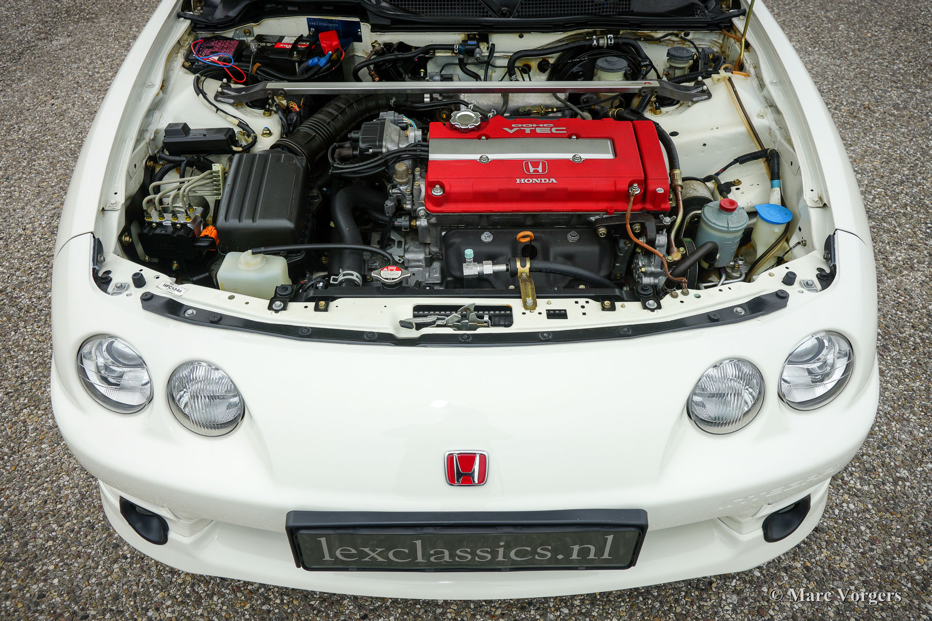 Honda Integra Typ-R, Jahr 1998. Farbe 'Formula 1 White' mit einen schwarz/ rotem Interieur. Dies ist einer der siebzig Integra Type-R Autos, die ursprünglich in den Niederlanden geliefert wurden. Dieser Integra Type-R ist perfekt bis im kleinsten Detail und das Auto verfügt über eine Klimaanlage.