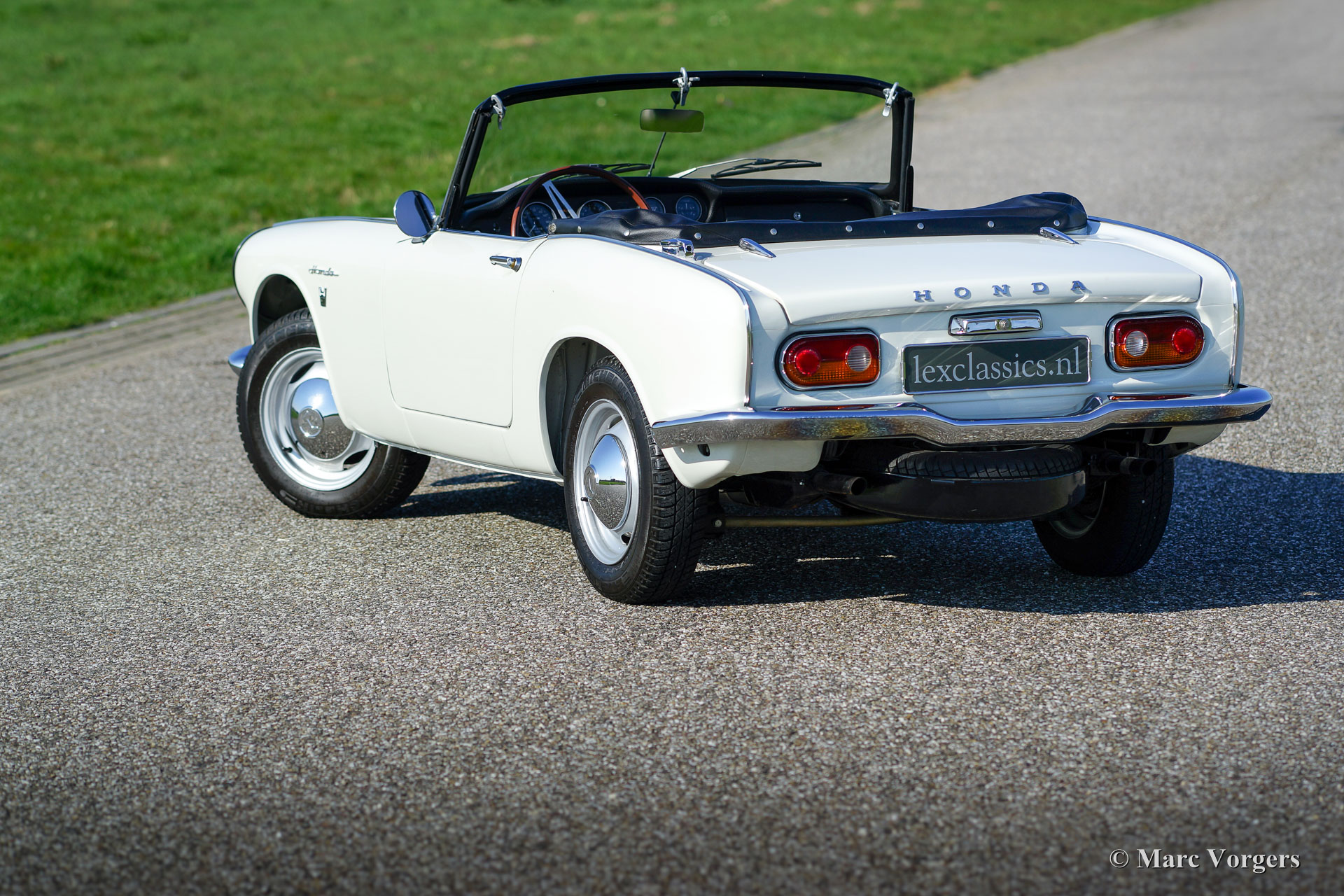 Honda S800 Cabriolet, Jahr 1967. Farbe weiß mit schwarzem Leder Interieur und einem schwarzen Soft-Top. Dieses wunderschöne Honda S800 Cabriolet wurde in den Niederlanden neu verkauft. Diese S800 wurde vor einigen Jahren umfangreich restauriert. Das Auto ist in einem Top-Zustand (concours) und es zeigt alle Originaldetails. Diese Honda S800 kommt aus einer hochkarätigen niederländischen Honda Kollektion, die von Lex Classics verkauft wird.