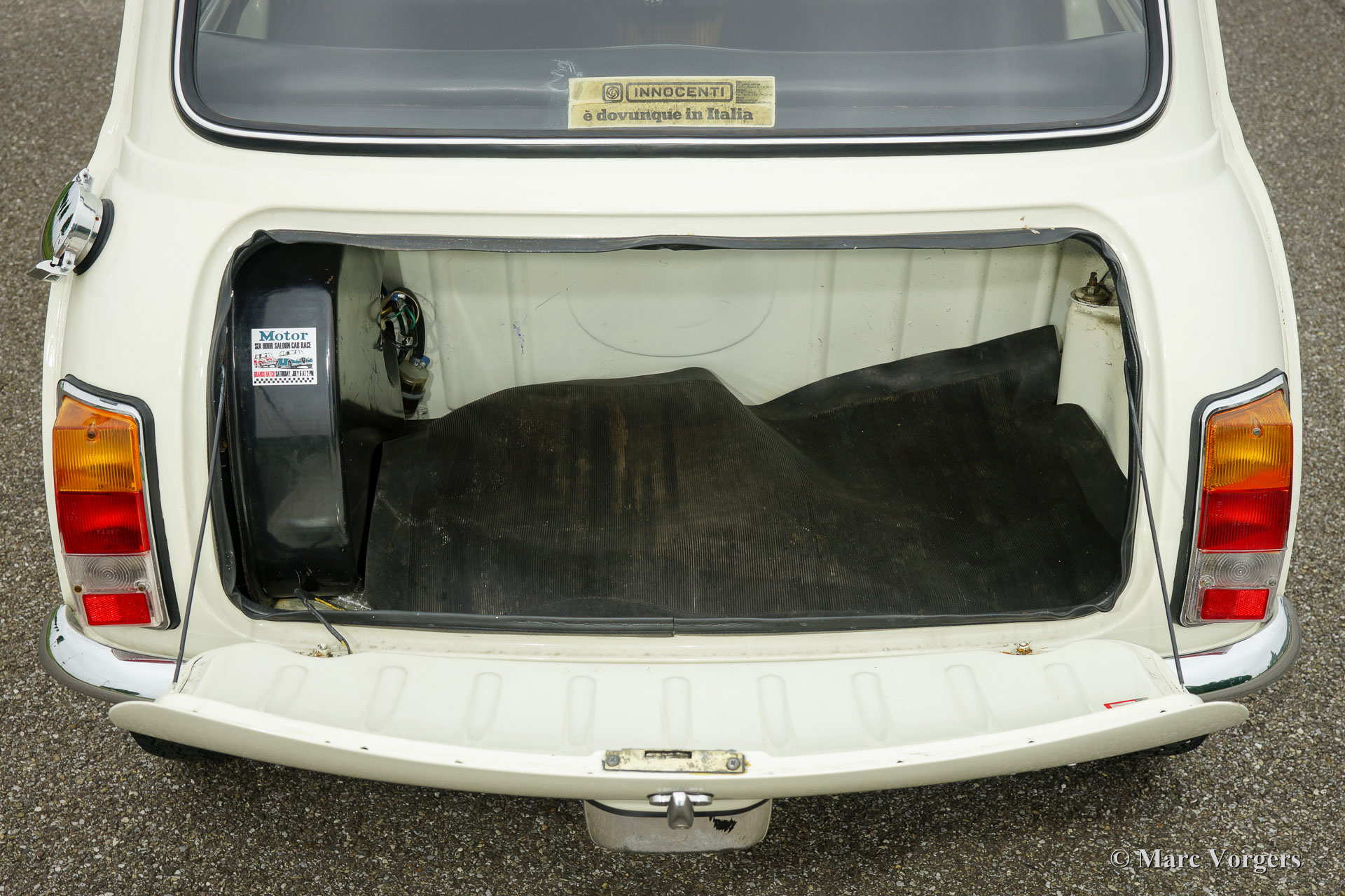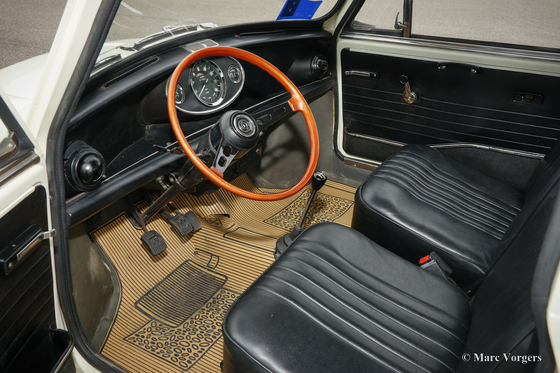 Innocenti Mini 1000 'Export', Jahr 1973. Farbe cremeweiß mit einem schwarzen Kunstleder-Interieur. Diese seltene Mini des Typs B38 / 6 wurde aus Italien importiert, wo diese Autos von 1968 bis 1975 gebaut wurden. Das Auto ist in guten bis sehr guten Originalzustand und vor Ablieferung werden vier neue Reifen montiert. Im Jahr 1968 waren die Innocenti Mini genaue Kopien ihrer britischen Kollegen. Im Laufe der Zeit führte Innocenti mehrere Detailänderungen durch in das Innere und das Äußere des von ihnen hergestellten Minis. Die Autos wurden immer etwas luxuriöser. Dieser Innocenti Mini aus 1973 verfügt über verschiedene Innocenti spezifische Details: andere (Carello) Scheinwerfer mit andere Chrom-Ringe, eine andere Kühlergrill, ausstellbare Dreiecks Fenster in den Türen (nicht anwesend bei Britische Mini Modelle), eine Rückwärtsfahrt Lampe, die Haube wird von dem Inneren entriegelt, eine andere Kofferraum Deckel, einem 1000 ccm-Motor mit 10% mehr Leistung, mehr Luxus Türverkleidungen , Veglia-Borletti Armaturen, andere Abzeichen auf der Außenseite und so weiter. Dieser Innocenti ist ein einzigartige Mini und das Auto fährt herrlich!