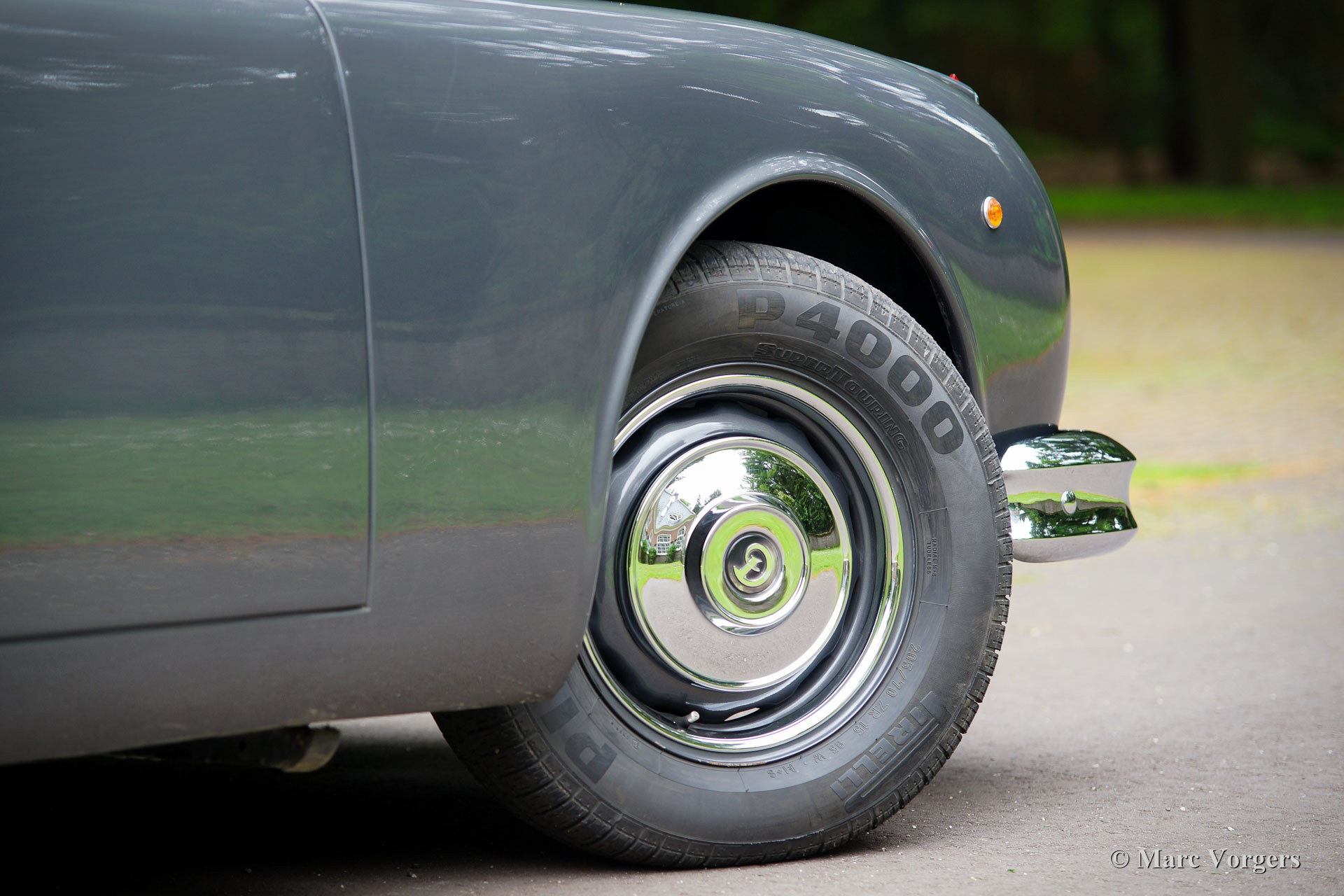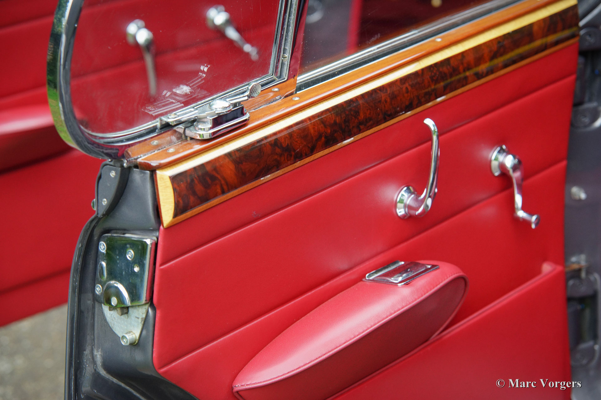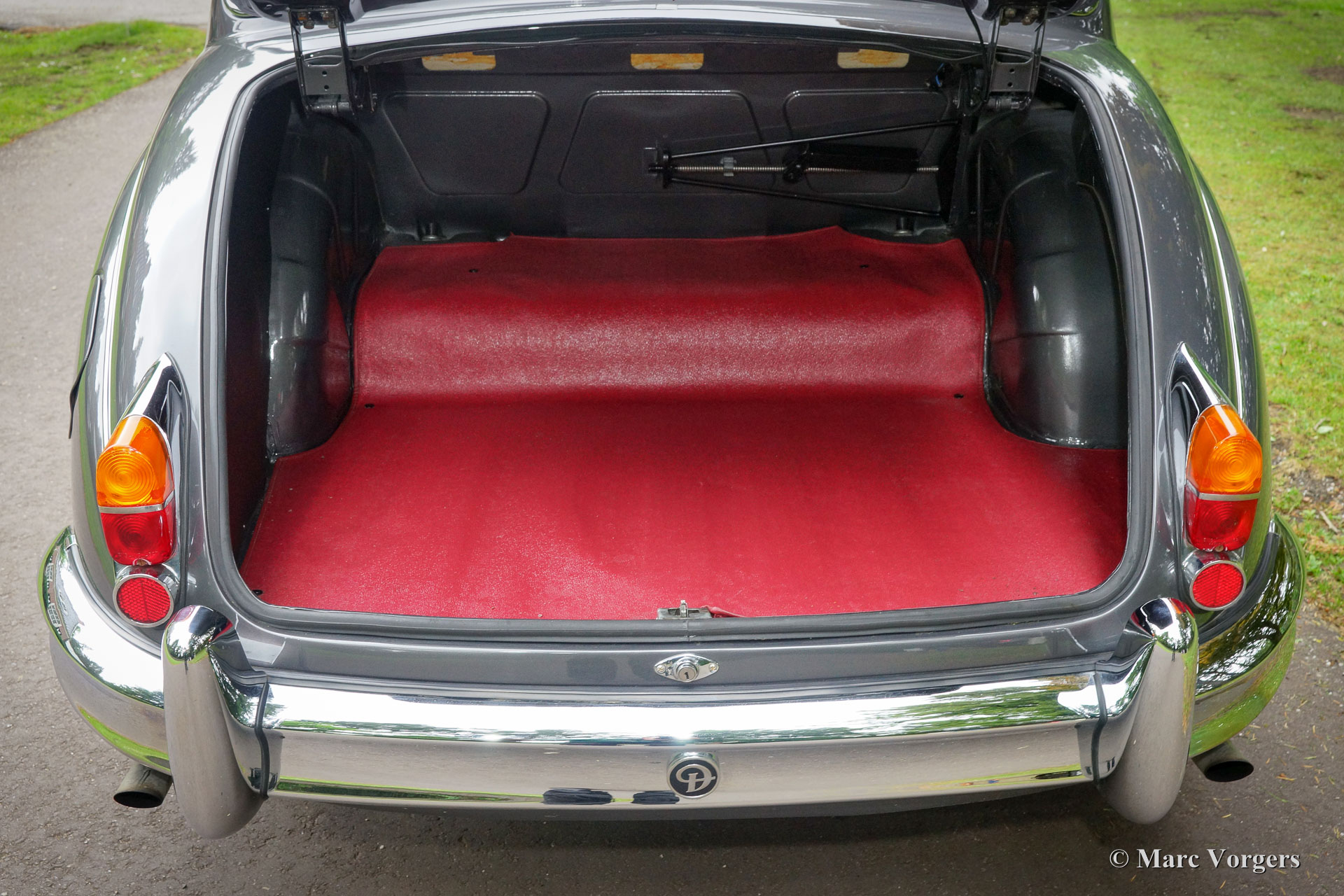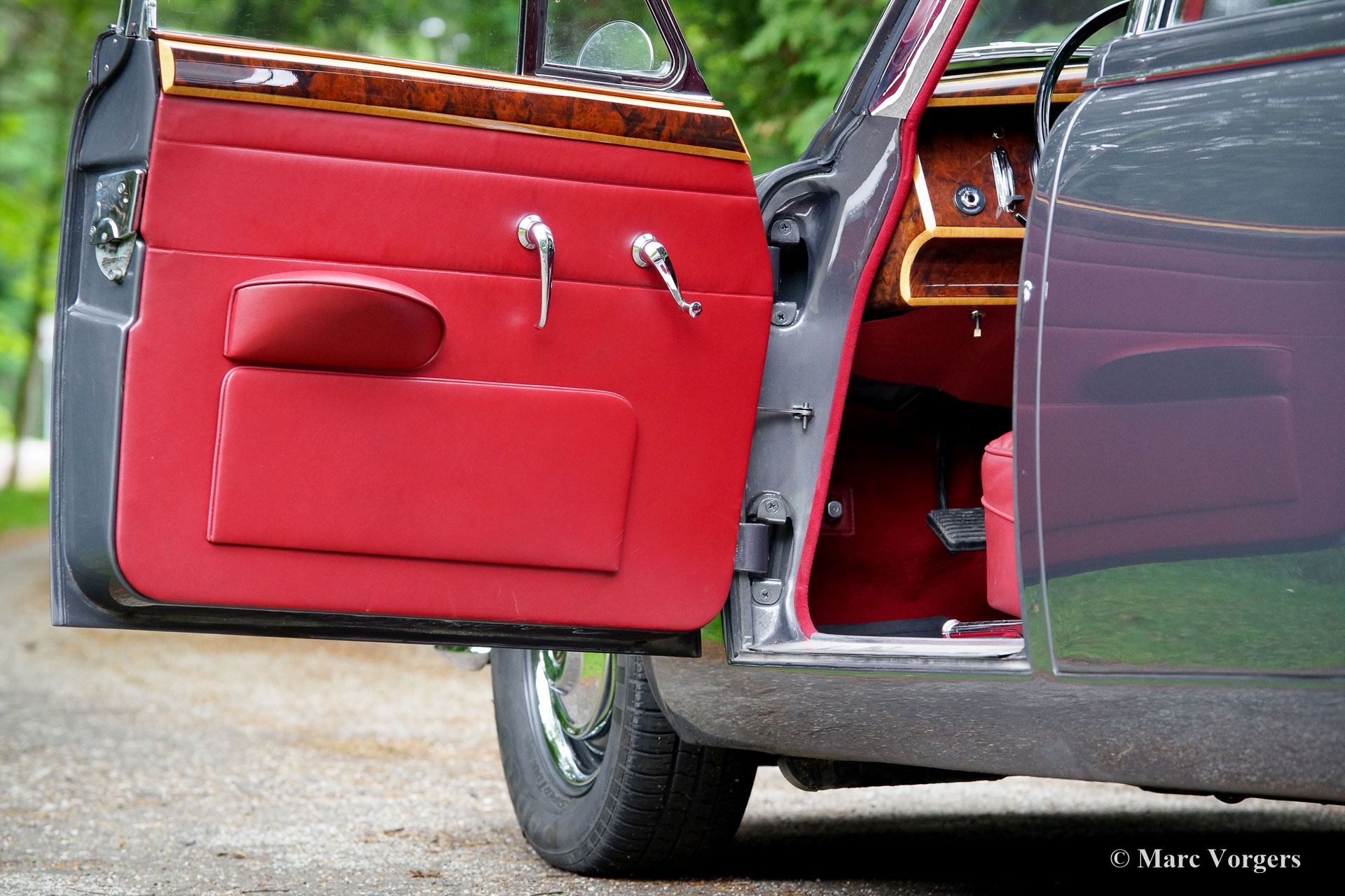 Daimler 2,5 Liter V8, Jahr 1964. Farbe ‘Gunmetal‘ grau metallic mit einer dunkelroten Lederausstattung und roten Teppich. Diese fantastische Daimler V8 ist in einem hervorragenden Top-Zustand und das Auto fährt einwandfrei! Diese Linkslenker Auto wurde neu Verkauft an einem renommierten Hotel in Brüssel, Belgien. Im Jahr 2006 wurde der Wagen in Italien importiert. In Italien wurde das Automobil in dem Jahren 2006 - 2008 umfangreich und perfekt ‘body off‘ restauriert in Sassuolo und in Maranello. Alles wurde restauriert, erneuert und / oder überholt. Die Wiederherstellung ist sehr schön mit Hunderten von Fotos dokumentiert. Nach der Wiederherstellung hat das auto ca. 10.000 Kilometern gefahren. Der Daimler ist ausgestattet mit einem automatischen Getriebe, modernes Lenkgetriebe (Modifikation, das ursprüngliche Lenkgetriebe komplett mit Daimler MotoLita Lenkrad ist inklusive). Darüber hinaus ist das Fahrzeug mit elektronischer Zündung ausgestattet, ein 12V Steckdose im Armaturenbrett Schließfach, Pirelli P4000 Reifen (Vredestein Sprint Classic in Originalgröße sind ebenfalls enthalten). Das Auto ist gut dokumentiert und es kommt mit 'Heritage Certificate' und FIVA 'identity card'. Dieses herrliche Daimler V8 ist gerade gewartet bei Imparts. Ein TOP Exemplar!