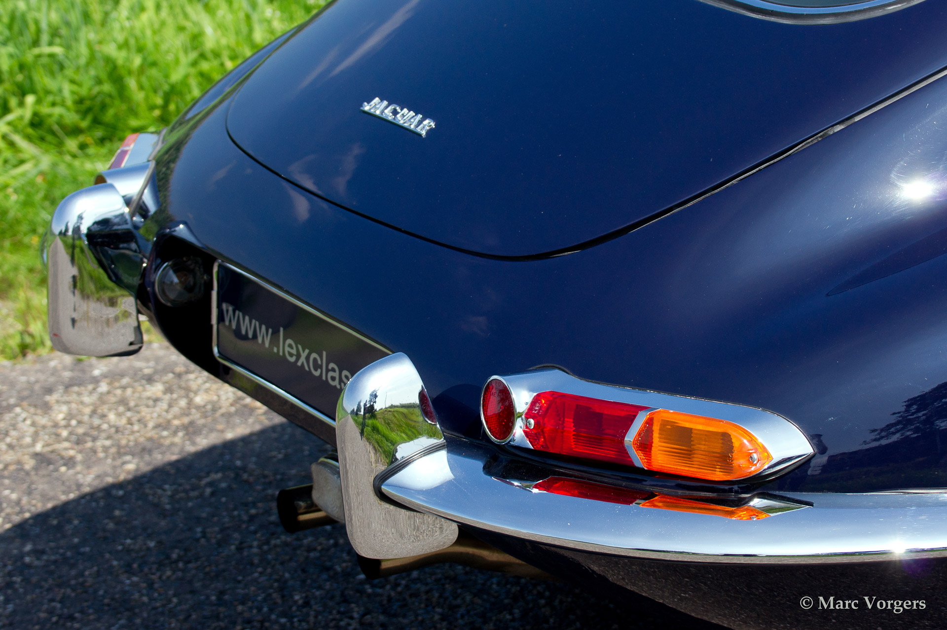 The design of the E-Type series as it was introduced in 1961 is of almost unearthly beauty. Look at all the refined details: the bonnet, the headlights, the back lights, the recess for the wheel housing and the back side, and you will realize that you are looking at absolute, timeless beauty in automobile design.