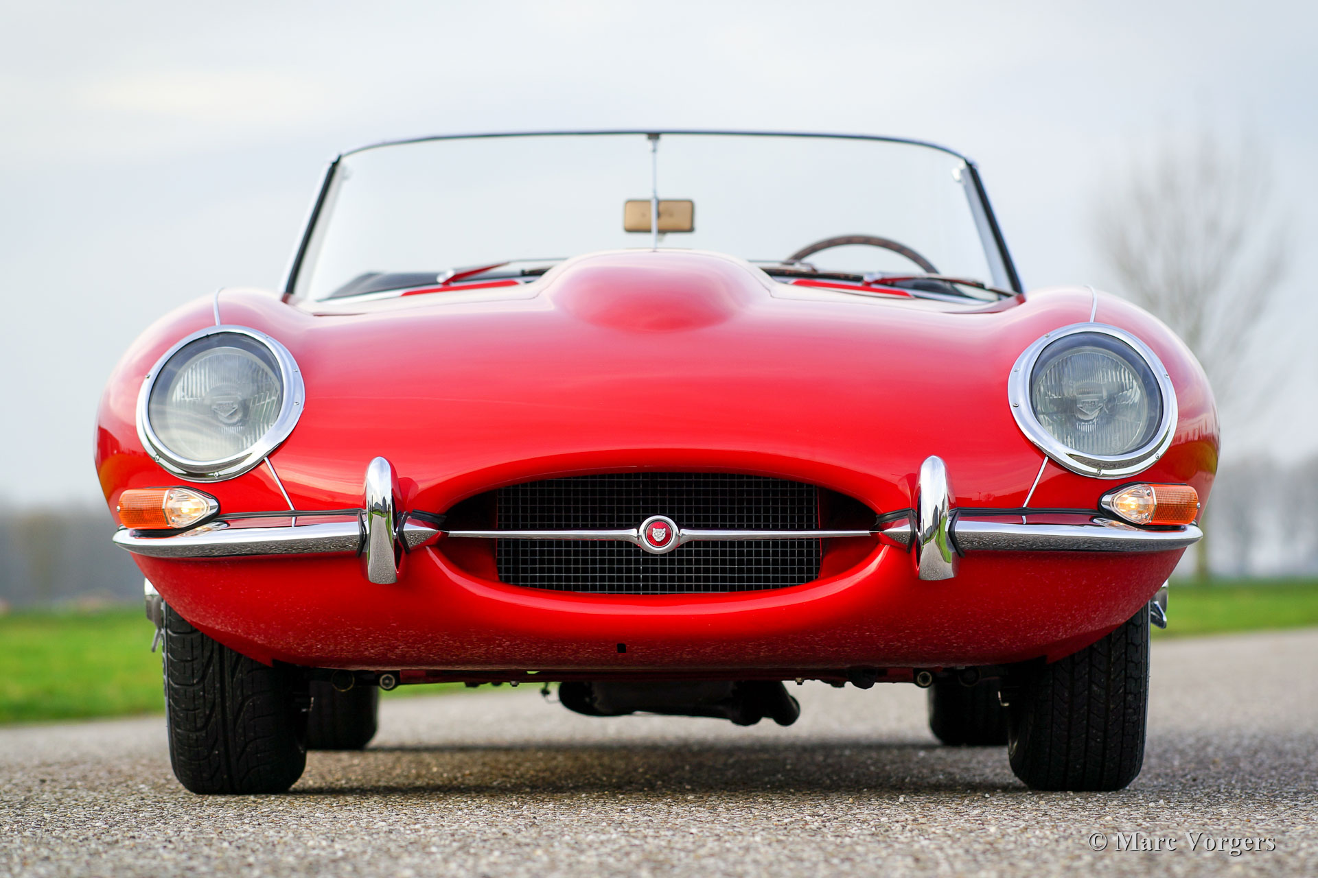 The design of the E-Type series as it was introduced in 1961 is of almost unearthly beauty. Look at all the refined details: the bonnet, the headlights, the back lights, the recess for the wheel housing and the back side, and you will realize that you are looking at absolute, timeless beauty in automobile design.