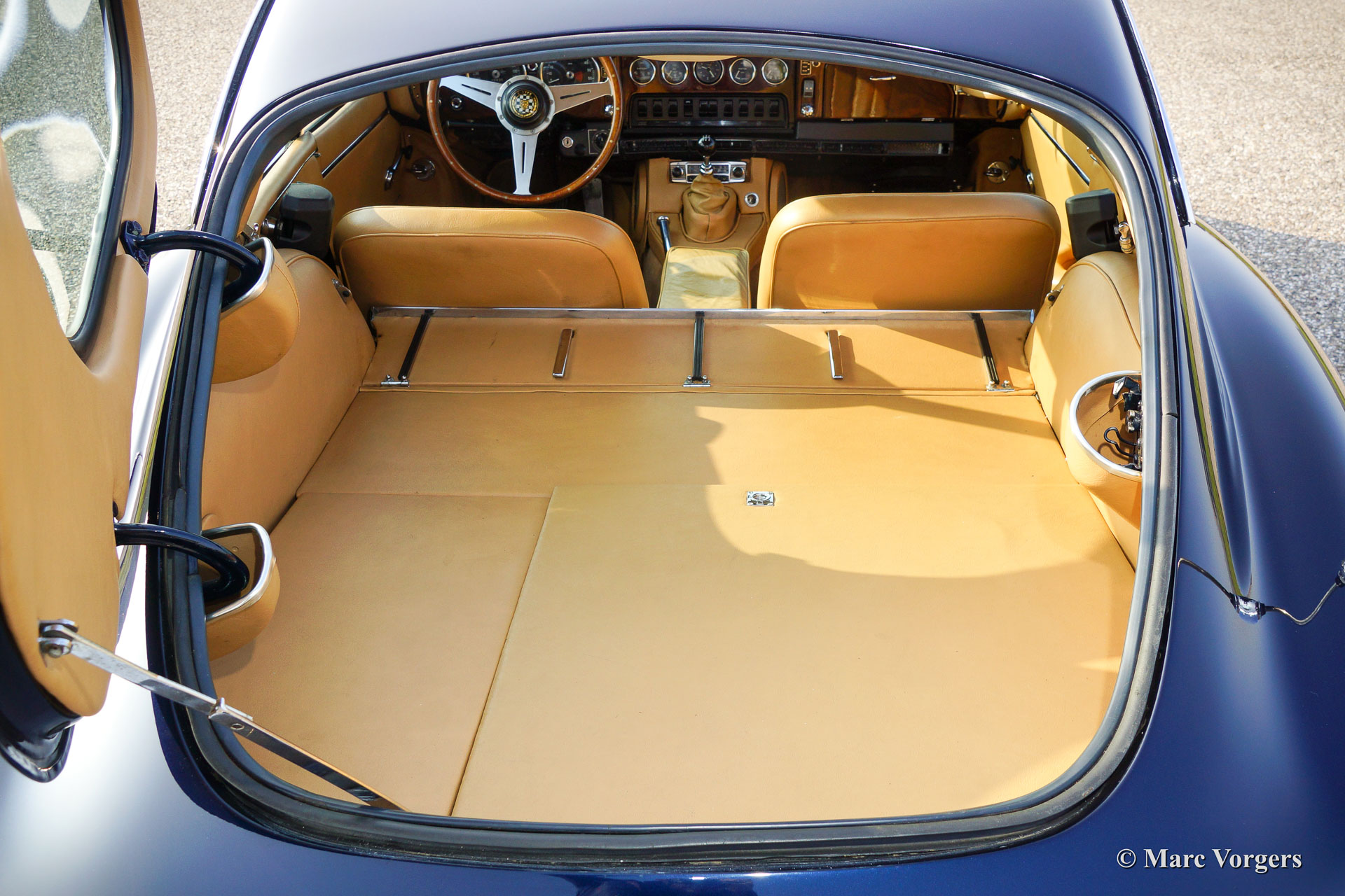 Jaguar E-type 4.2 Liter FHC Serie 2, Jahr 1969. Farbe "Midnight Blue" metallic. Innenraum mit Beige Lederausstattung. Dieses fantastische Jaguar E-type ist in sehr gutem Zustand und das Auto fährt perfekt! Dieser Jaguar E-Typ wurde im Jahr 1997 aus den USA importiert. Anschließend wurde das Auto weitgehend ‚body-off‘ restauriert. Die Arbeiten waren komplett im Jahr 2000. Eine umfangreiche Fotoreportage von der Wiederherstellung ist vorhanden. Diese feine Jaguar E-type wird gewartet in der Werkstatte von Lex Classics seit dem Jahr 2007. Alle Servicerechnungen liegen vor. Im Jahr 2013 wurde der Jaguar mit ein Tremec 5-Gang-Getriebe ausgestattet. Das Auto ist mit folgenden Optionen ausgestattet: Chrom Speichen Räder Chrom "knock-off" Radmuttern, ein Elektro Kenlow Lüfter, Radio und Antenne, ein Holz umrandeten Sportlenkrad, ein ‚high torque‘ Anlasser, Wechselstromgenerator, Edelstahl Auspuff, elektronische Zündung, Klimaanlage und das oben erwähnte Tremec 5-Gang-Getriebe.