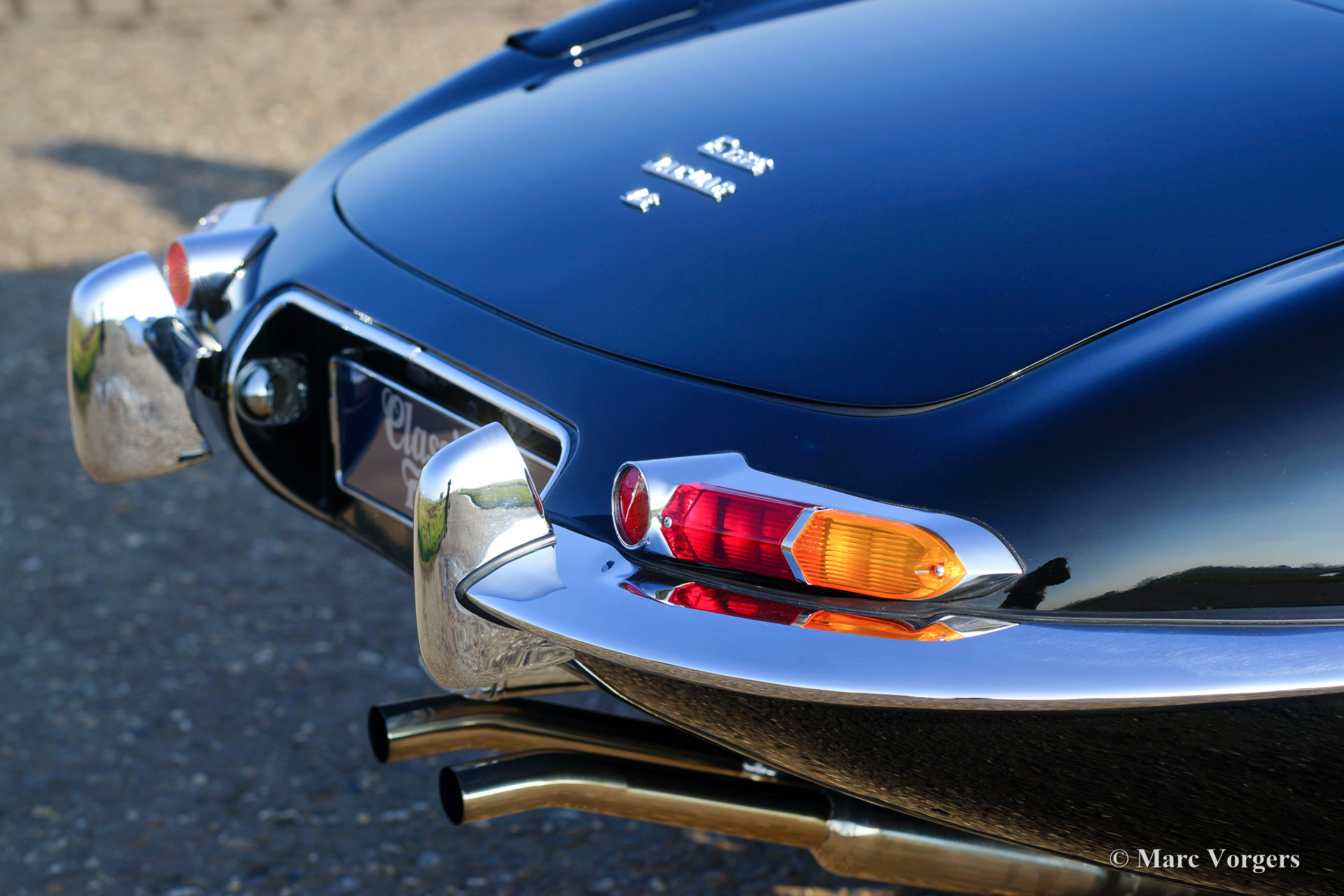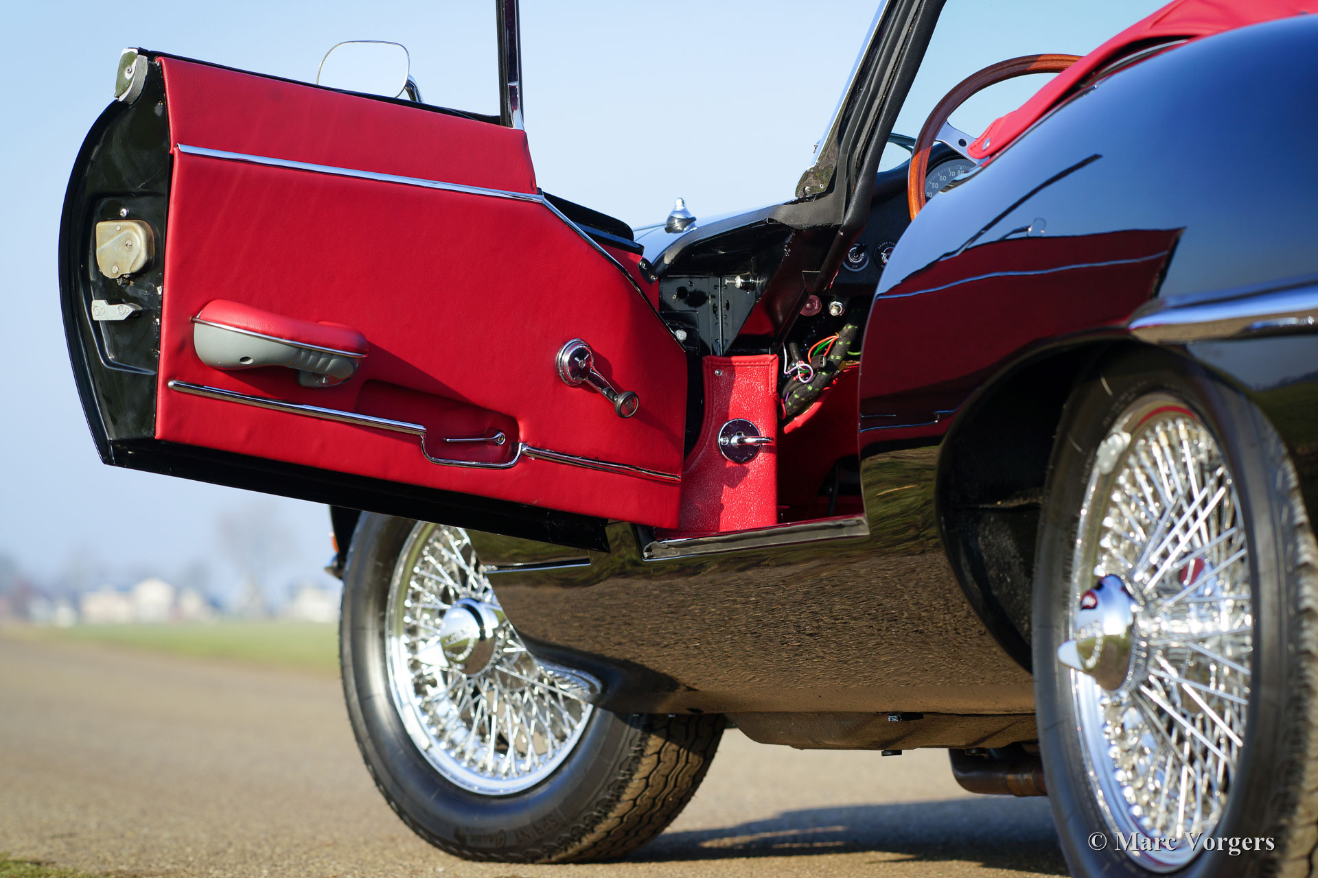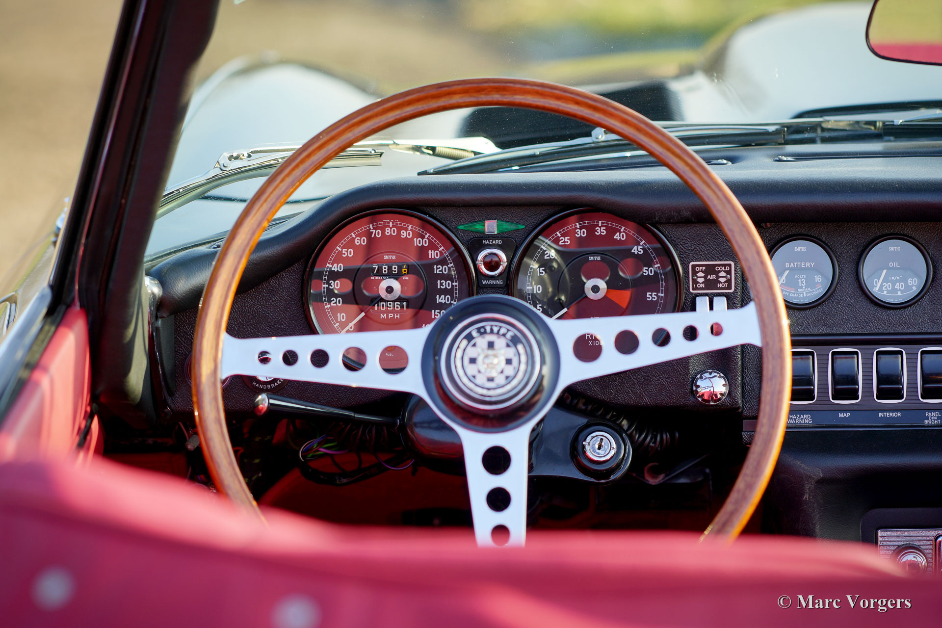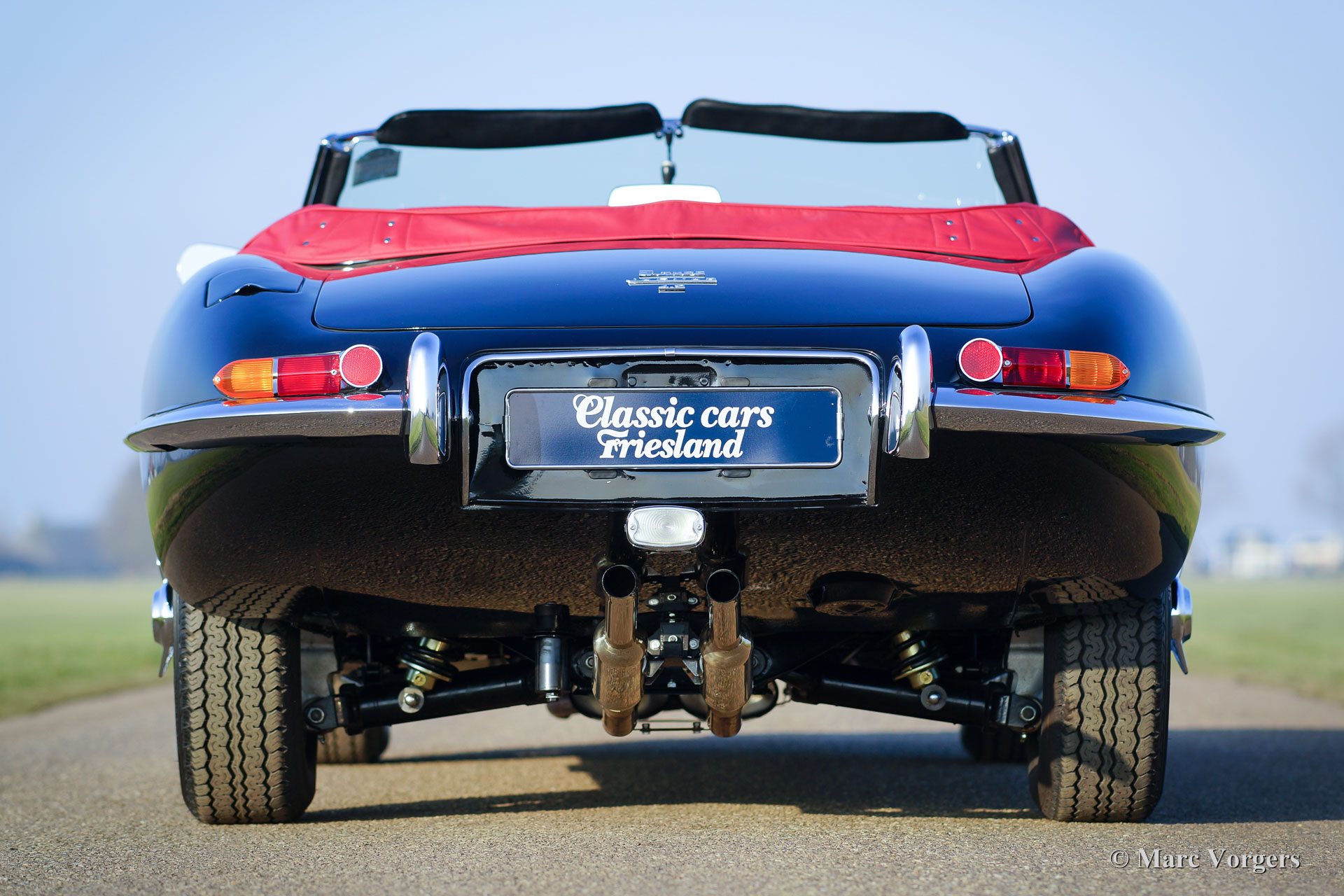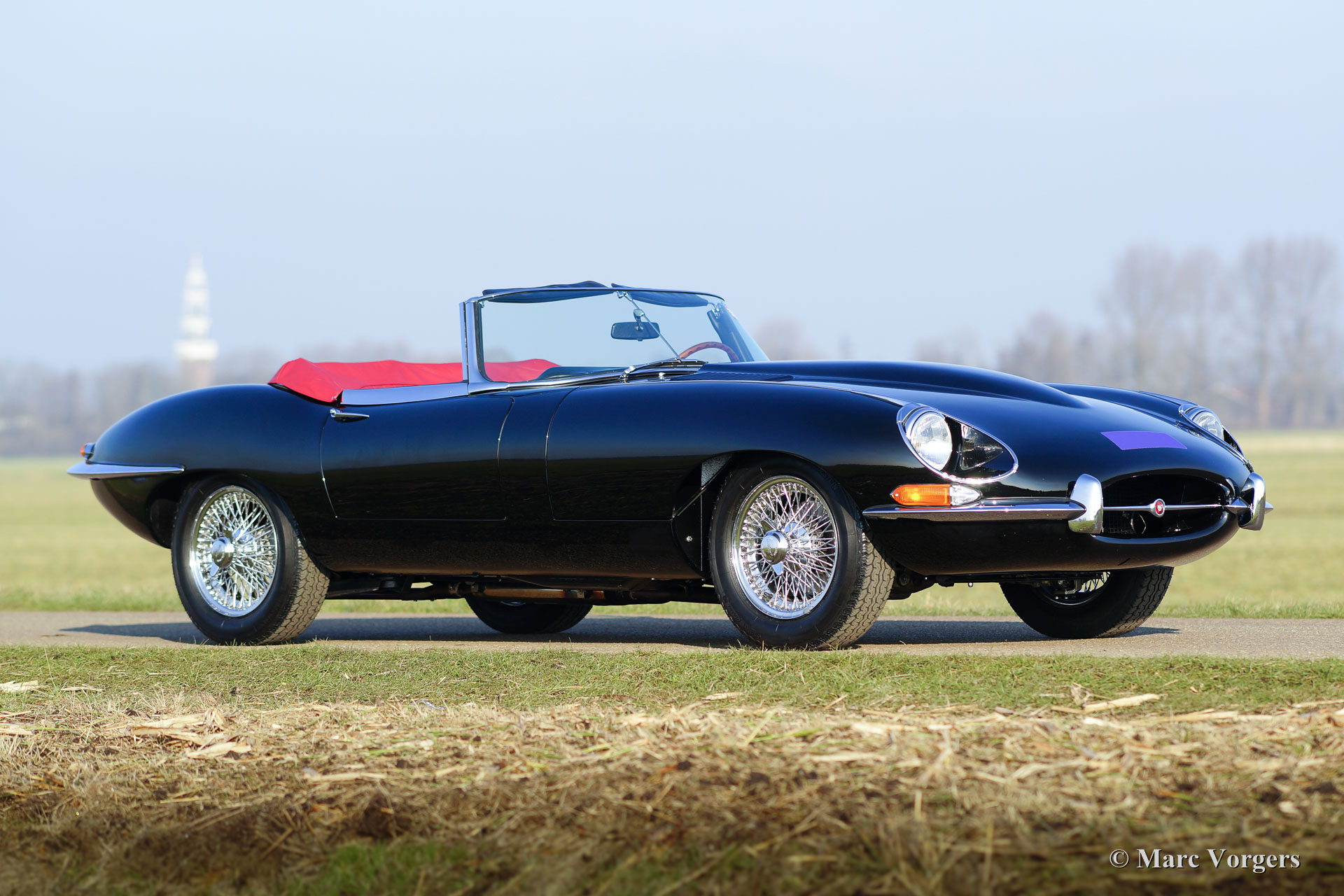 Jaguar E-Type 4,2 Liter OTS Serie 1½, Jahr 1967. Farbe schwarz mit einem roten Leder-Interieur und rotem Teppich. Schwarzes Mohair-Soft-Top und einer roten Verdeck Abdeckung. Dieser wunderbare Jaguar wurde in der Zeit von 2012 bis 2016 komplett restauriert und überholt. Die Restauration wurde sehr sorgfältig durchgeführt, um absolute Perfektion zu erreichen. Die Karosseriearbeit zeigt perfekte Passform, die Chrom Teile sind hervorragend, sowie das brandneu gepolsterte Interieur. Natürlich wurden alle Mechanische und elektrischen Teile überholt und / oder erneuert; Der Motor und das Getriebe wurden selbstverständlich überholt. Eine umfangreiche Fotoreportage der Restauration ist vorhanden, sowie eine Datei mit Rechnungen. Diese wunderschöne Jaguar E-Type (oder XK-E in den USA) ist in einem perfekten concours Zustand und das Auto hat ‘matching numbers‘. Das Auto ist ausgestattet mit Chrom Speichen Räder, Vredestein Sprint Classic-Reifen, ein Edelstahl-Auspuff und ein Original-Moto-Lita Lenkrad mit Holzkranz. Dieser Jaguar E-Type Open Two Seater (OTS), auch Roadster genannt, ist ein TOP-exemplar!