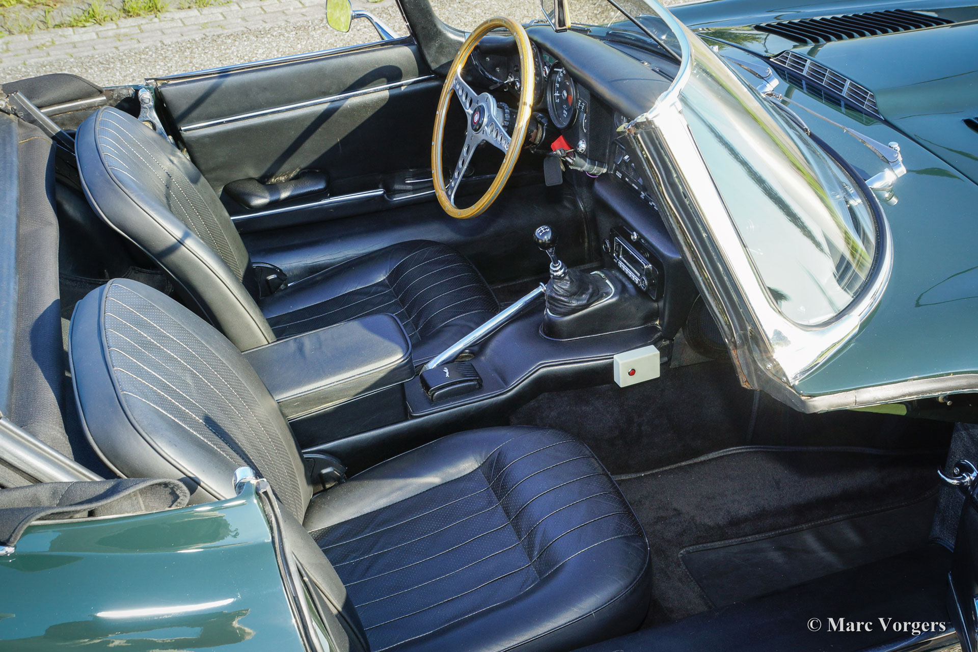 Jaguar E-Type 4.2 Liter OTS Serie 2, Jahr 1970. Farbe British Racing Green mit einem schwarzen Leder-Interieur und schwarzen Teppich. Schwarz Mohair Verdeck und Verdeck Abdeckung. Dieser mächtige Jaguar E-Type 4.2 Liter Open Two Seater (OTS, auch Roadster genannt), wurde in der Vergangenheit umfangreich und ‘body-off‘ restauriert. In jüngerer Zeit wurde das Auto in Auftrag von Lex Classics perfekte neue Lackierung gegeben. Fotos von dieser Teil-restaurierung sind vorhanden. Dieser schöne Jaguar E-Type wurde von einem Eigentümer seit 25 Jahre geschätzt; das Auto ist in einem hervorragenden Zustand! Das Auto verfügt über breiten Chrom-Speichen Räder, Chrom 'knock-off' Radmuttern, ein Tripmaster und Radio mit Antenne. Ein herrliches Jaguar E-Typ und ein wunderbarer Fahrer Auto!