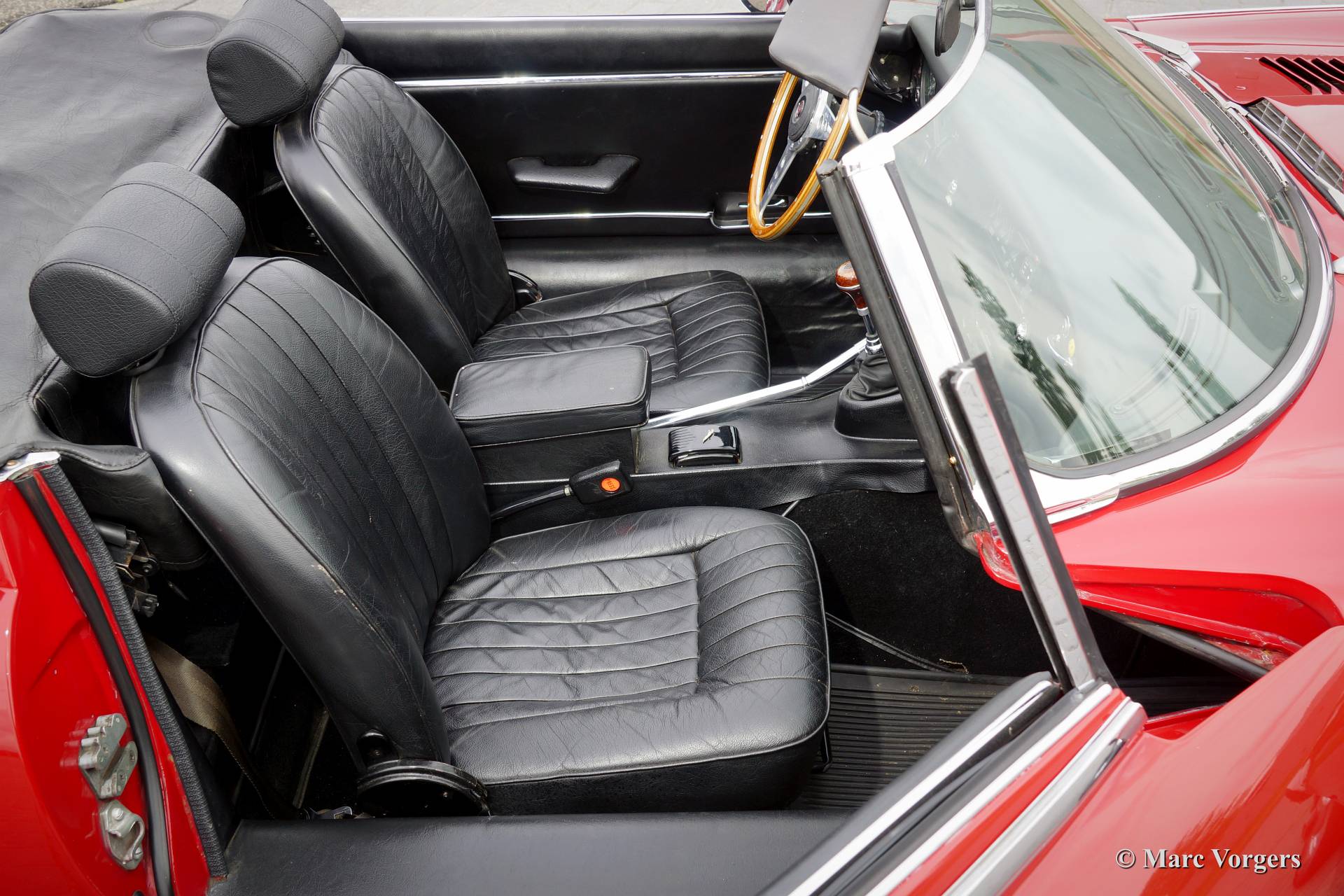 Jaguar E-type V12 Roadster, Jahr 1973 Farbe Rot mit einem schwarzen Leder-Interieur und schwarzen Teppich. Schwarzes Verdeck. Dieser sehr beeindruckender E-type V12 wurde aus den USA in die Niederlande importiert im Jahr 1994. Den letzten niederländischen Besitzer hatte das Auto im Besitz seit 2007. Das Auto ist immer gut gewartet und gepflegt von einem Jaguar-Spezialist, der Jaguar ist in sehr guter Zustand! Dieser E-type V12 Roadster ist ab Werk ausgestattet mit dem reizvollen 4-Gang-Schaltgetriebe Option. Auf diese Weise können Sie das immense Drehmoment des Motors nach ihren Hand setzen!