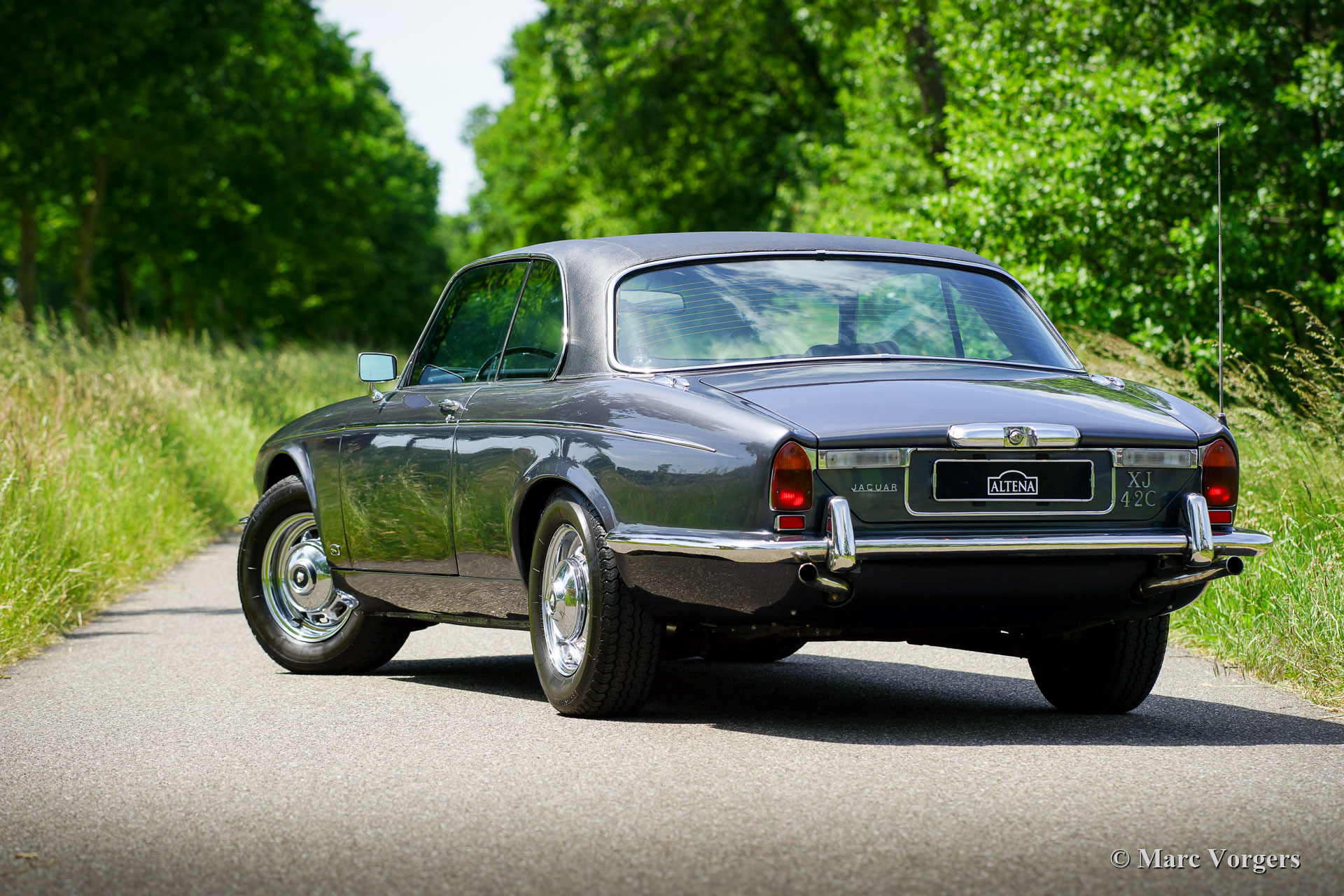 Jaguar XJ6 4.2 Coupé Serie 2, Jahr 1976. Farbe Gun Metal Grey Metallic kombiniert mit einer schwarzen Lederausstattung. Dieses wunderschöne Jaguar XJ6 Coupé (XJ-C) wurde im Jahr 1997 in die Niederlande importiert. Anfang der 2000er Jahre wurde das Auto umfangreich restauriert und mechanisch modifiziert. Die Karosserie wurde aus dem blanken Metall restauriert und die originale Lederausstattung aufgearbeitet. Der komplette Antriebsstrang (Motor, Getriebe, Achsen, Aufhängung und diverse andere Teile) wurde gegen modernere Teile eines Jaguar X300 (Baujahr 1994 bis 1997) ausgetauscht, der damals 60.000 Kilometer gefahren war. Das Auto wurde auch mit einem neuen Kühlsystem, einer neuen Klimaanlage, Edelstahlauspuff und neuen Edelstahlstoßstangen ausgestattet. Der moderne Motormanagement-Computer wurde unsichtbar eingebaut. Die Restaurierung und die umfangreichen Modifikationen wurden von einem Jaguar Spezialisten wunderbar durchgeführt. Es wurden weder Kosten noch Mühen gescheut, um diesen XJ6 der Spitzenklasse zu schaffen! Das Auto fährt, lenkt, lenkt, bremst und schaltet perfekt und sehr raffiniert. Dieser Jaguar XJ6 4.2 Coupé ist ein einzigartiges Auto, das von der Person geschätzt wird, die gerne einen Oldtimer mit ausgefeilter modernerer Technik, erhöhtem Komfort und verbesserter Sicherheit fährt.