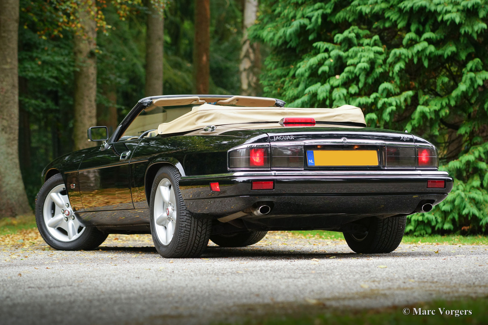 Jaguar XJS 4.0 Cabrio, Jahr 1995. Farbe schwarz mit beigem Leder-Interieur und beige Teppich. Schwarze Haube und beige Verdeck-Abdeckung. Dieser mächtige Jaguar XJS Cabrio wurde im Jahr 2013 in die Niederlande importiert. Das Auto ist in einem hervorragenden TOP-Originalzustand und das Auto fährt wunderbar! Von neuen hat dieser Jaguar 79,250 Meilen gefahren. Dieses feine XJS 4.0 stammt aus der letzten Serie und es ist ausgestattet mit den schönen 4,0-Liter-Sechszylinder-Reihen AJ16 I6-Motor mit vier Ventilen pro Zylinder. Darüber hinaus verfugt diese schöne Jaguar XJS über einem automatischen Getriebe, sehr schöne Leichtmetallräder (die Original-Räder sind ebenfalls vorhanden) und eine automatisch betriebene Haube. Alle ursprünglichen Bücher sind anwesend sowie ein ‘Carfax‘ Dokument. Ein Top-Exemplar!