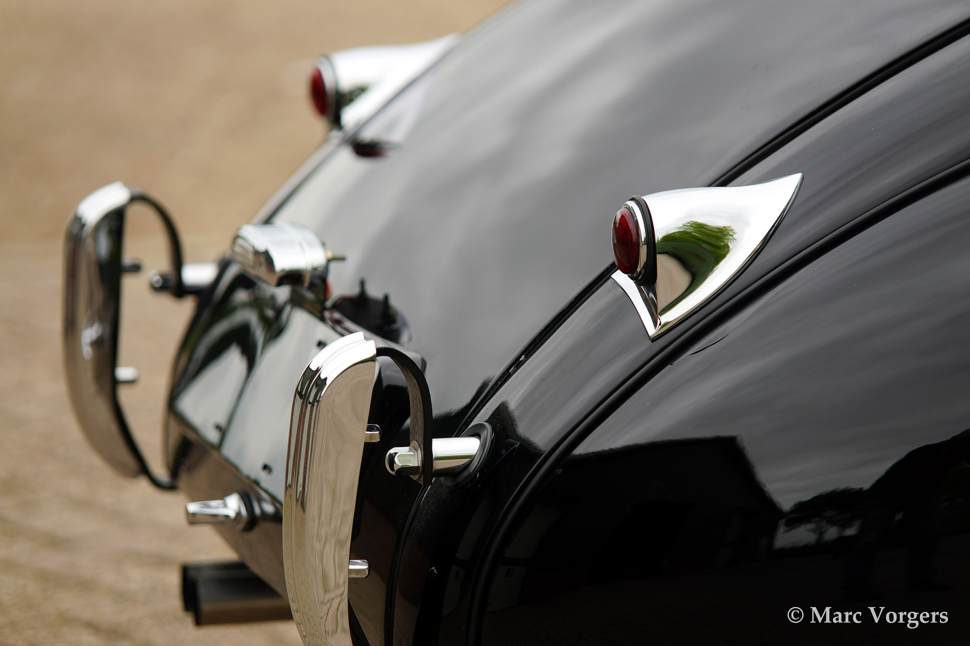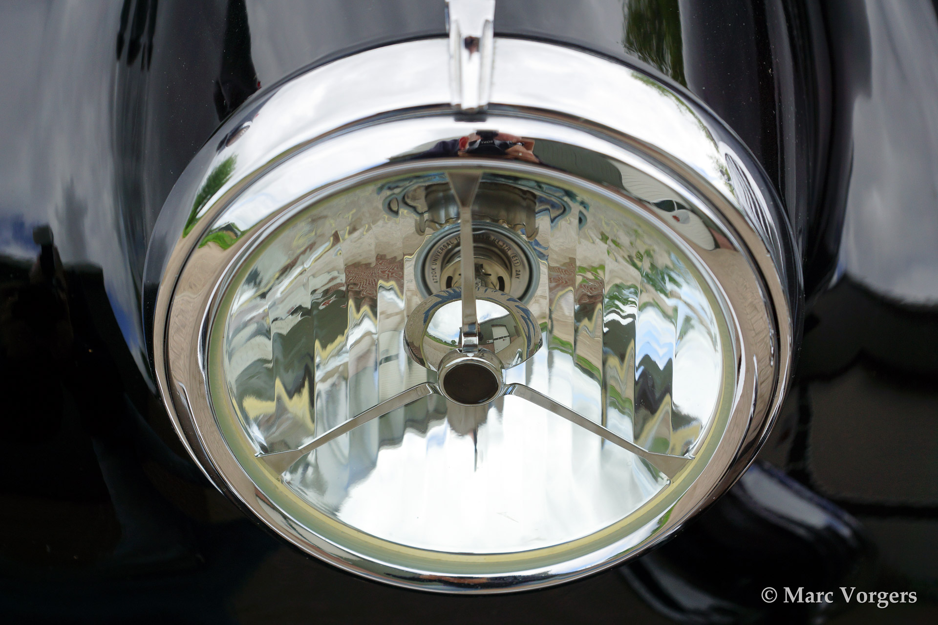 The Jaguar XK 120 was introduced in 1948, and caused an immediate sensation. The XK 120 had a top speed of 120 miles an hour (about. 200 km/h) and was the fastest production car for sale at that time. The XK 120 was designed by Jaguar’s boss and founder William Lyons. The bodywork had an almost sculptural design, with sober, well-chosen flowing lines and beautiful curves. With its exquisite long bonnet and elongated wing lines, the XK 120 has a very dynamic charisma.