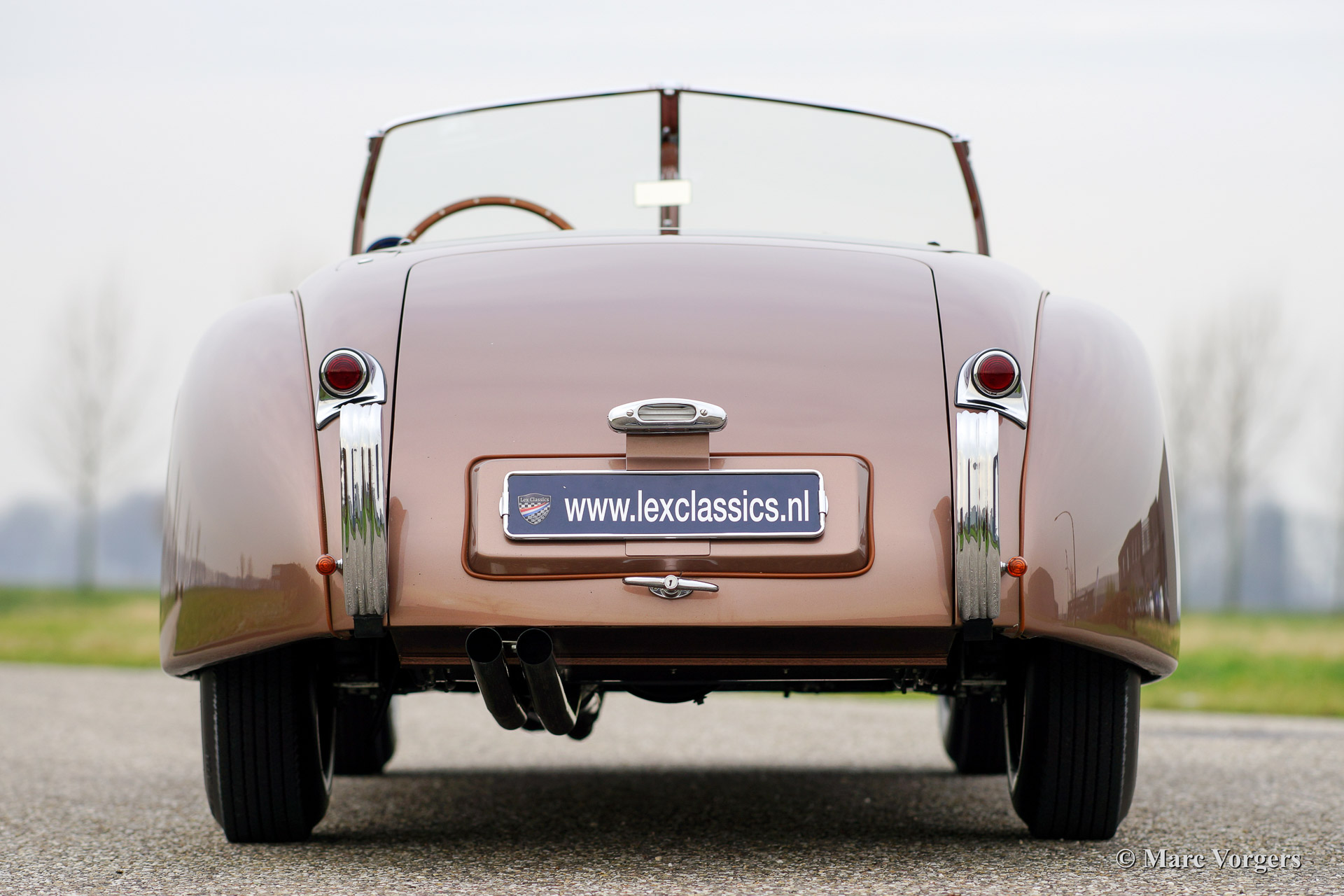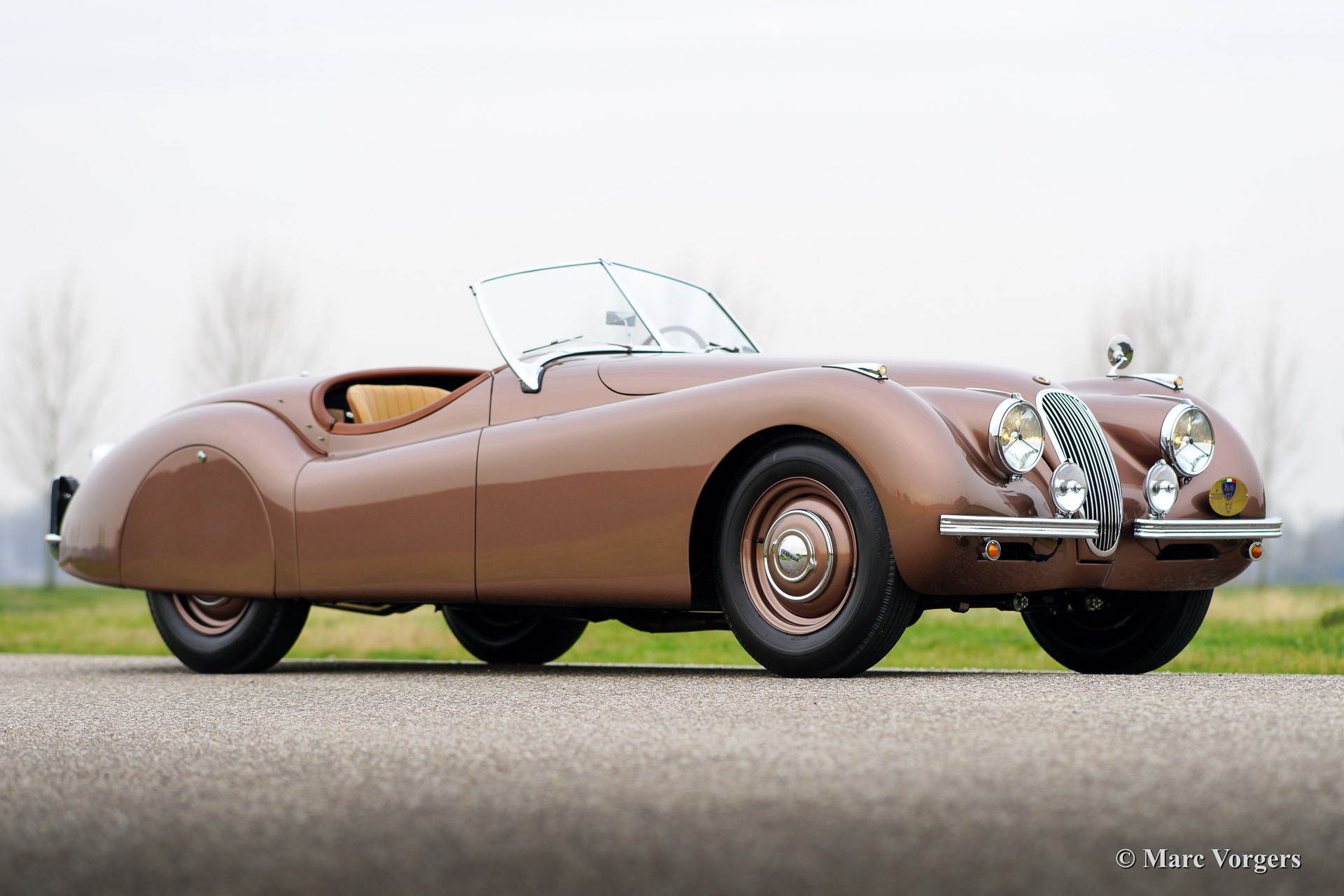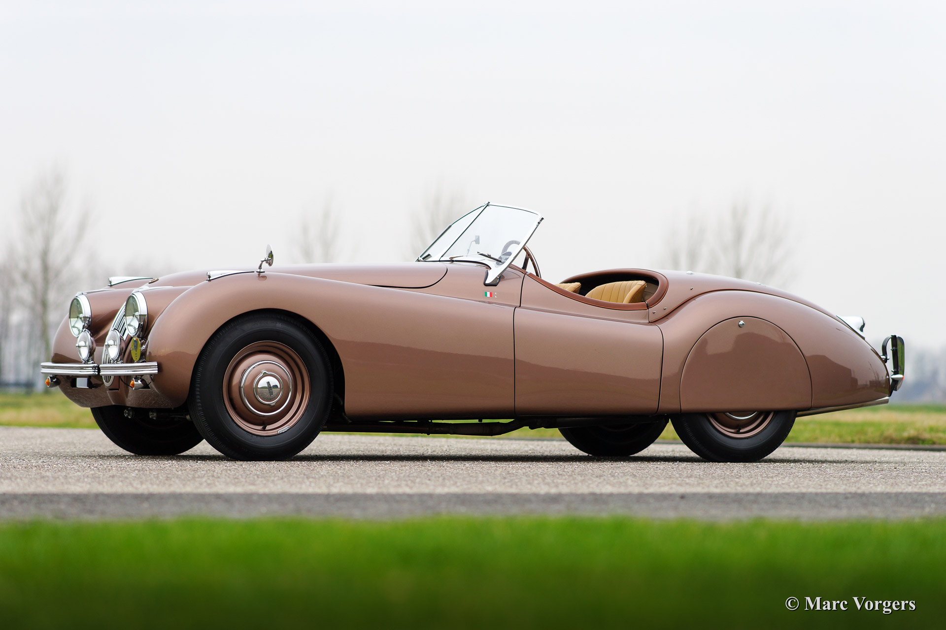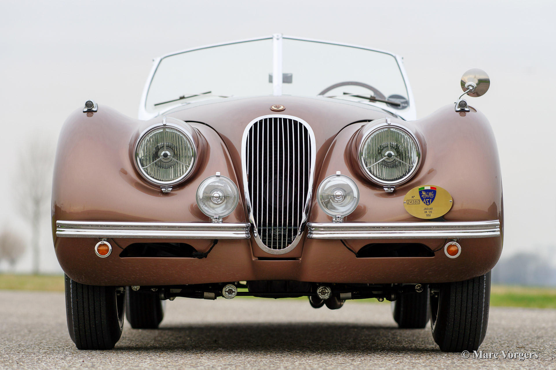 Jaguar XK 120 OTS (Open Two Seater / Roadster), Jahr 1950. Fahrgestellnummer 670.612, Motornummer W 1351-8. Farbe Bronze mit einem beige Lederausstattung. Diese frühe Jaguar XK 120 mit Stahl Körper ist vor ein paar Jahren aufwendig und perfekt ‚body off‘ restauriert worden. Das Auto ist in Top-Zustand, concours! Ein Heritage Zertifikat ist vorhanden; dies ist ein "matching numbers" Auto. Dieser XK 120 zeigt fantastische ursprünglichen Details wie die lackierte Stahlfelgen und den "spats" über die Hinterräder. Weiter ist das Auto ausgestattet mit zusätzlicher Lampen auf der Vorderseite und ein schönes 4-Speichen-Lenkrad mit Holzkranz. Die seltenen poliertem Metall-Lampen auf den vorderen Kotflügeln findet man nur an die seltene XK 120 Autos mit Aluminium Körper und an die ersten XK 120 Modelle mit Stahl Karosserie. Diese wunderschone Jaguar XK 120 Roadster hat in die Jahre 2009, 2011 und 2012 teilgenommen in der Mille Miglia Storiche und in der Gran Premio Nuvolari. Dies in den Händen des vorigen Eigners, ein bekannter italienischen Geschäftsmann. Dieser feine Jaguar kommt ausgezeichnet dokumentiert. Dieses Auto ist eine perfekte Investition und das Auto bringt den neuen eigner die Möglichkeit einen Startplatz in der berühmten italienischen Mille Miglia zu erhalten.