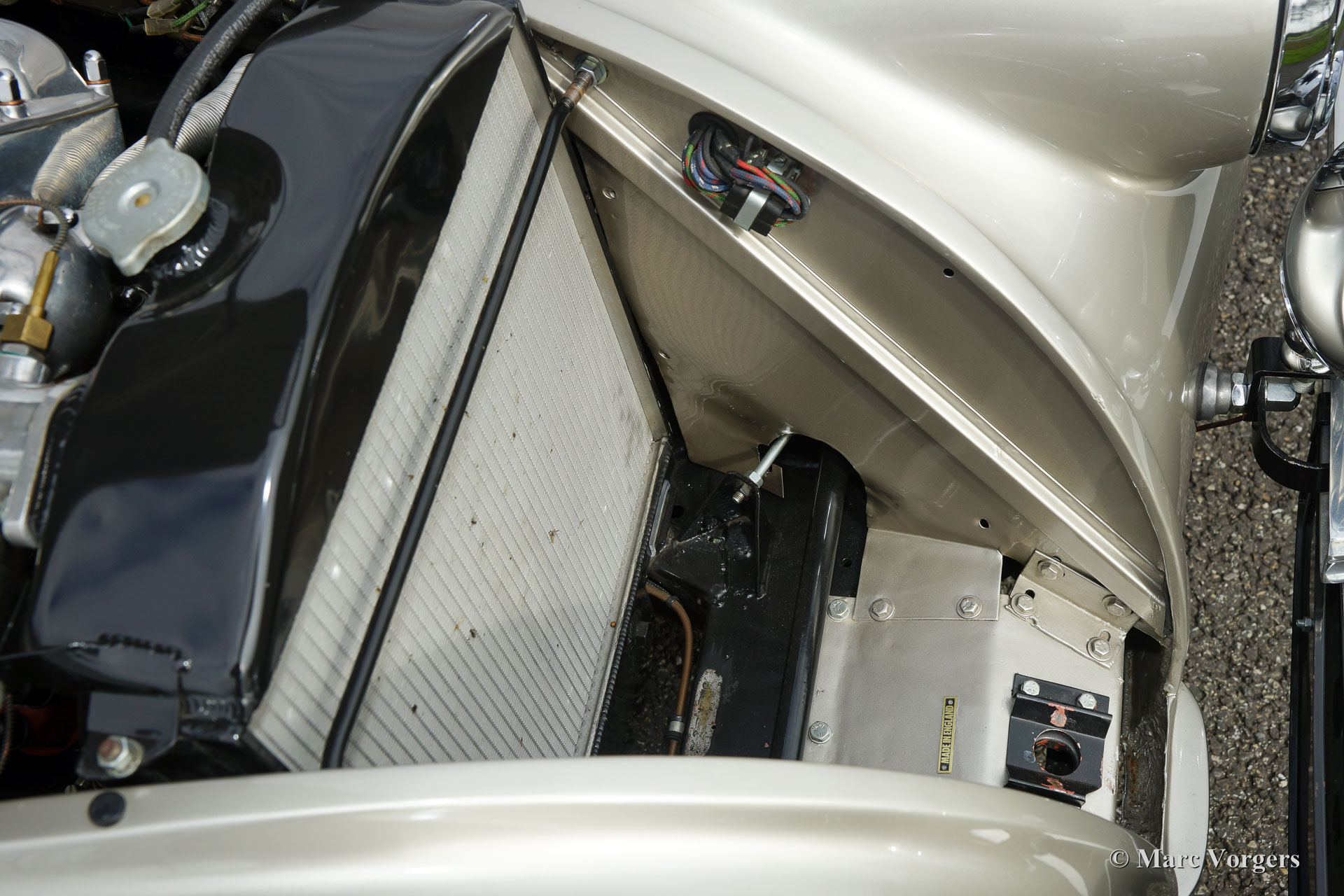 The Jaguar XK 120 was introduced in 1948, and caused an immediate sensation. The XK 120 had a top speed of 120 miles an hour (about. 200 km/h) and was the fastest production car for sale at that time. The XK 120 was designed by Jaguar’s boss and founder William Lyons. The bodywork had an almost sculptural design, with sober, well-chosen flowing lines and beautiful curves. With its exquisite long bonnet and elongated wing lines, the XK 120 has a very dynamic charisma.