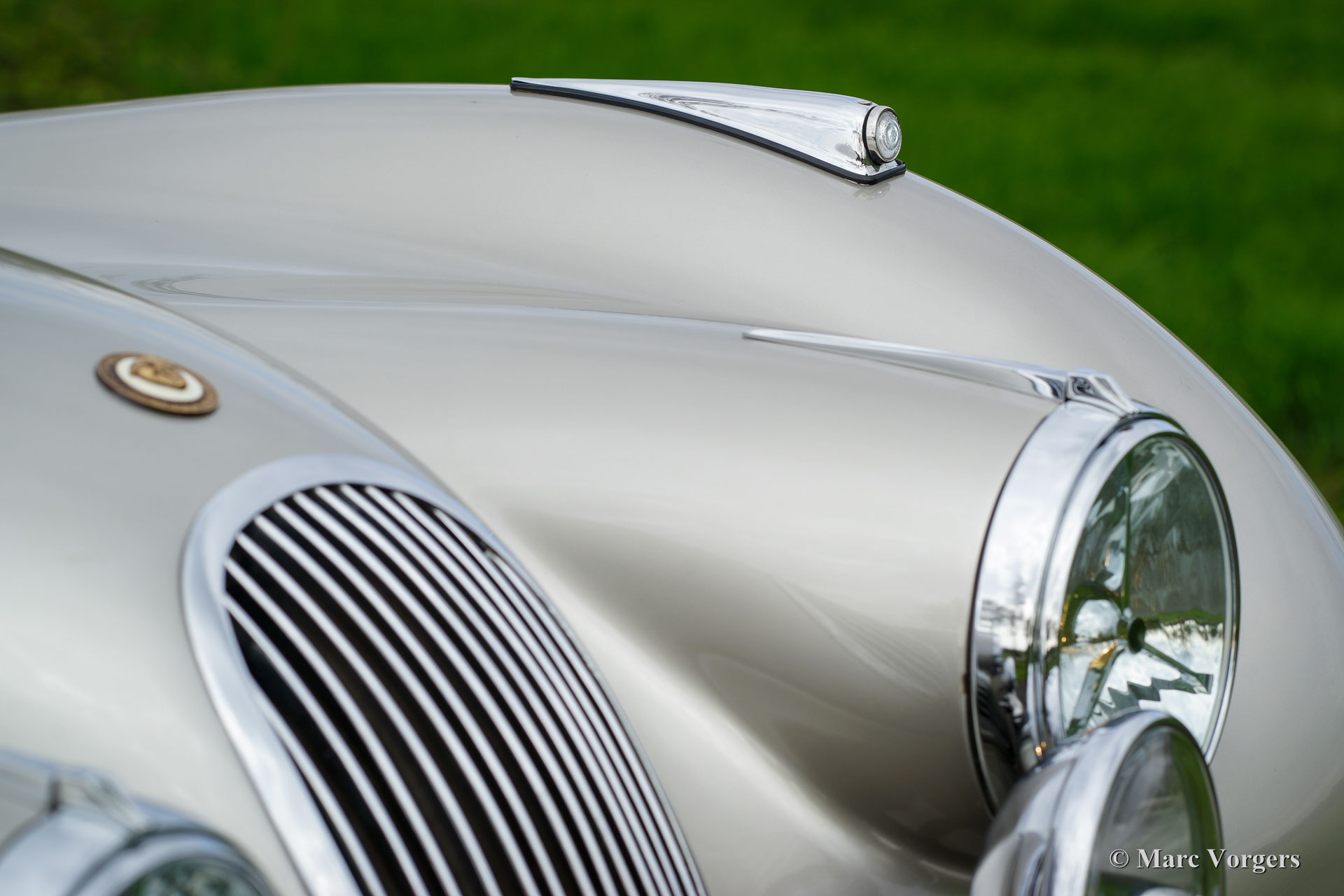 Together with the XK 120, the new Jaguar "XK" straight-six engine was introduced which, for the next forty years, was to attire all Jaguar models in ever improved forms. The XK 120 was available in three versions: as a roadster, the slightly larger DHC (Drop Head Coupe) and as the FHC (Fixed Head Coupe) with a fixed steel roof. The XK 120 was built until 1954 and was followed by the XK 140.