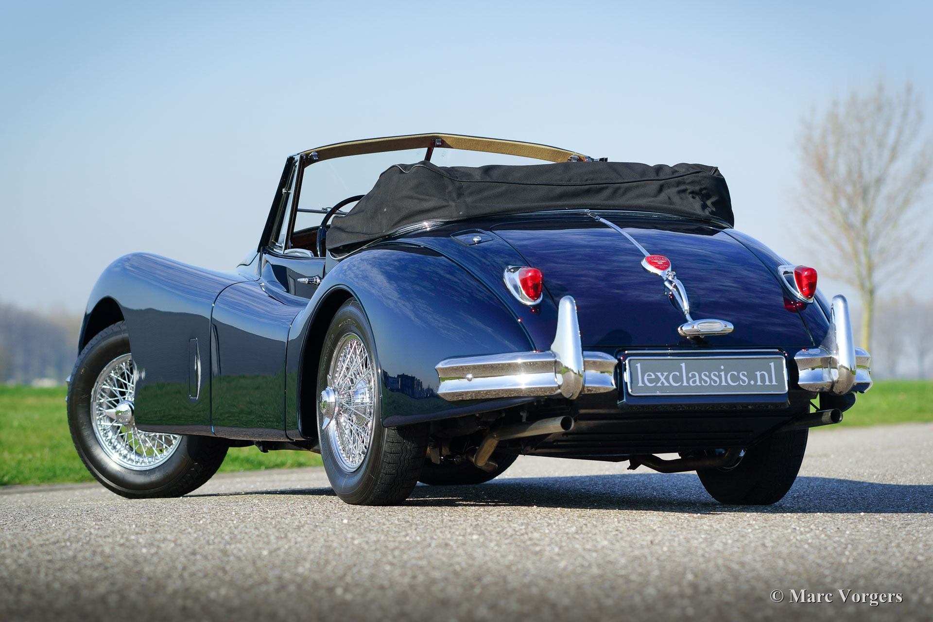 The Jaguar XK 140 replaced the famous XK 120 and was brought onto the market in 1954. The XK 140 was an evolution of the XK 120 with some visual differences and technical improvements. The handsome and dynamic features remained largely unchanged. New was the grille, which counted fewer vertical bars; the rear lights were larger, the bumpers were thicker, and the front indicators, which were placed on the front of the front wing. The important technical improvement was that the XK 140 was provided with a rack and pinion steering which greatly improved steering and driving.