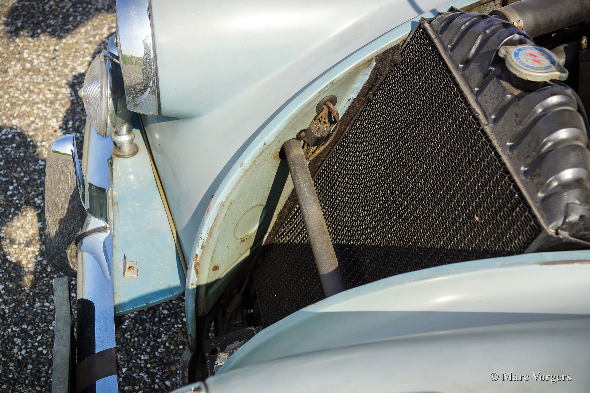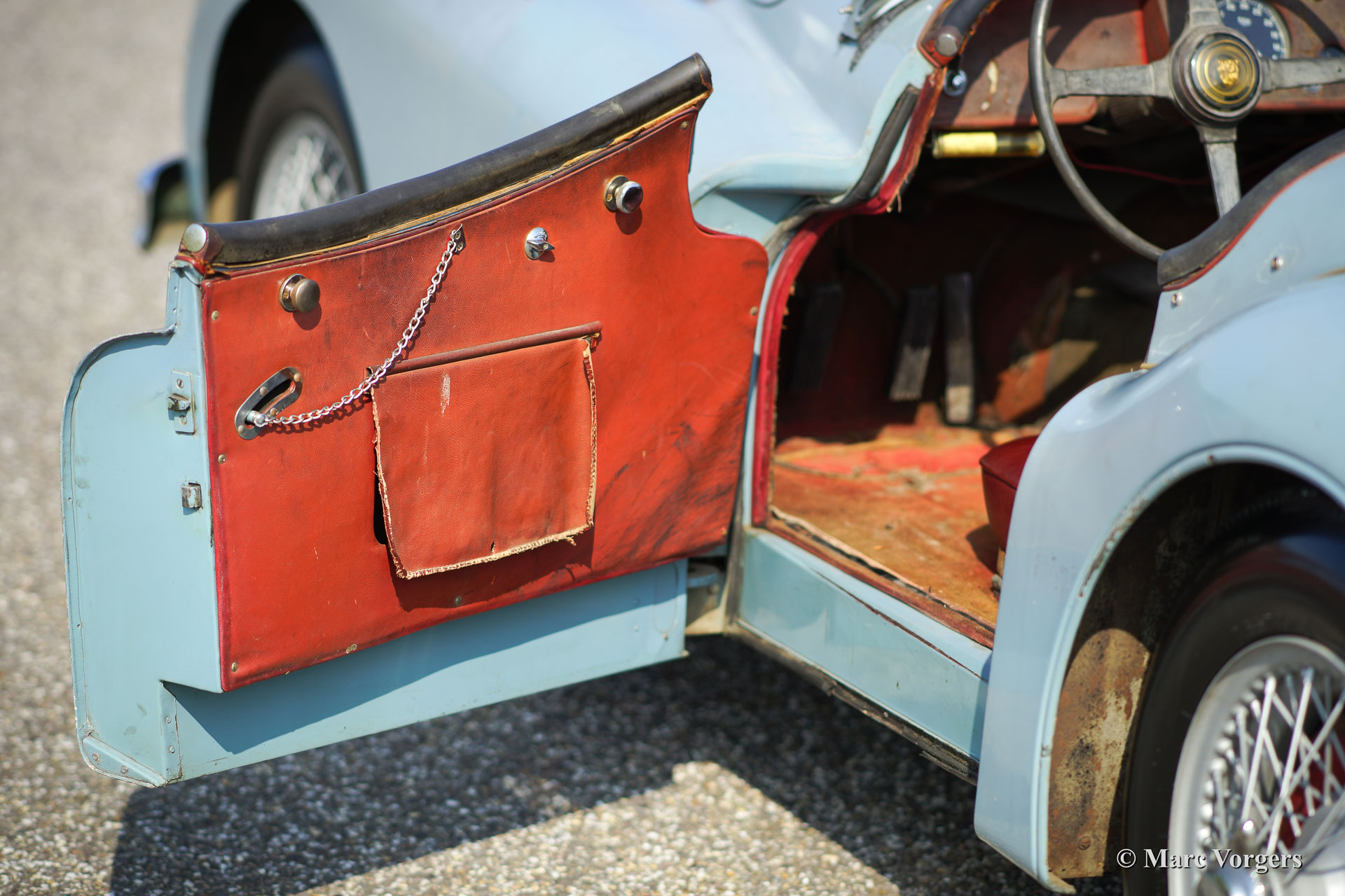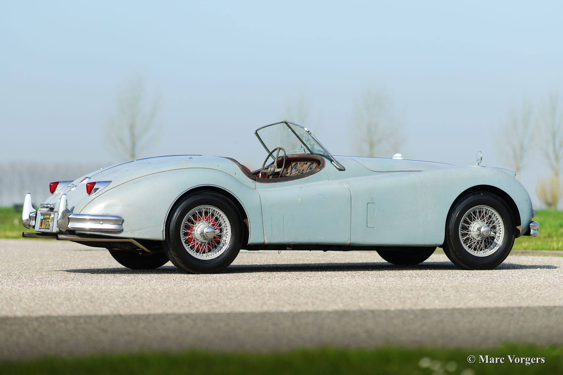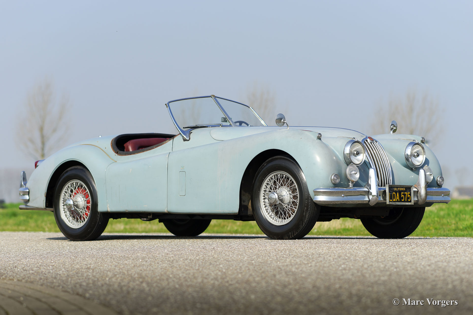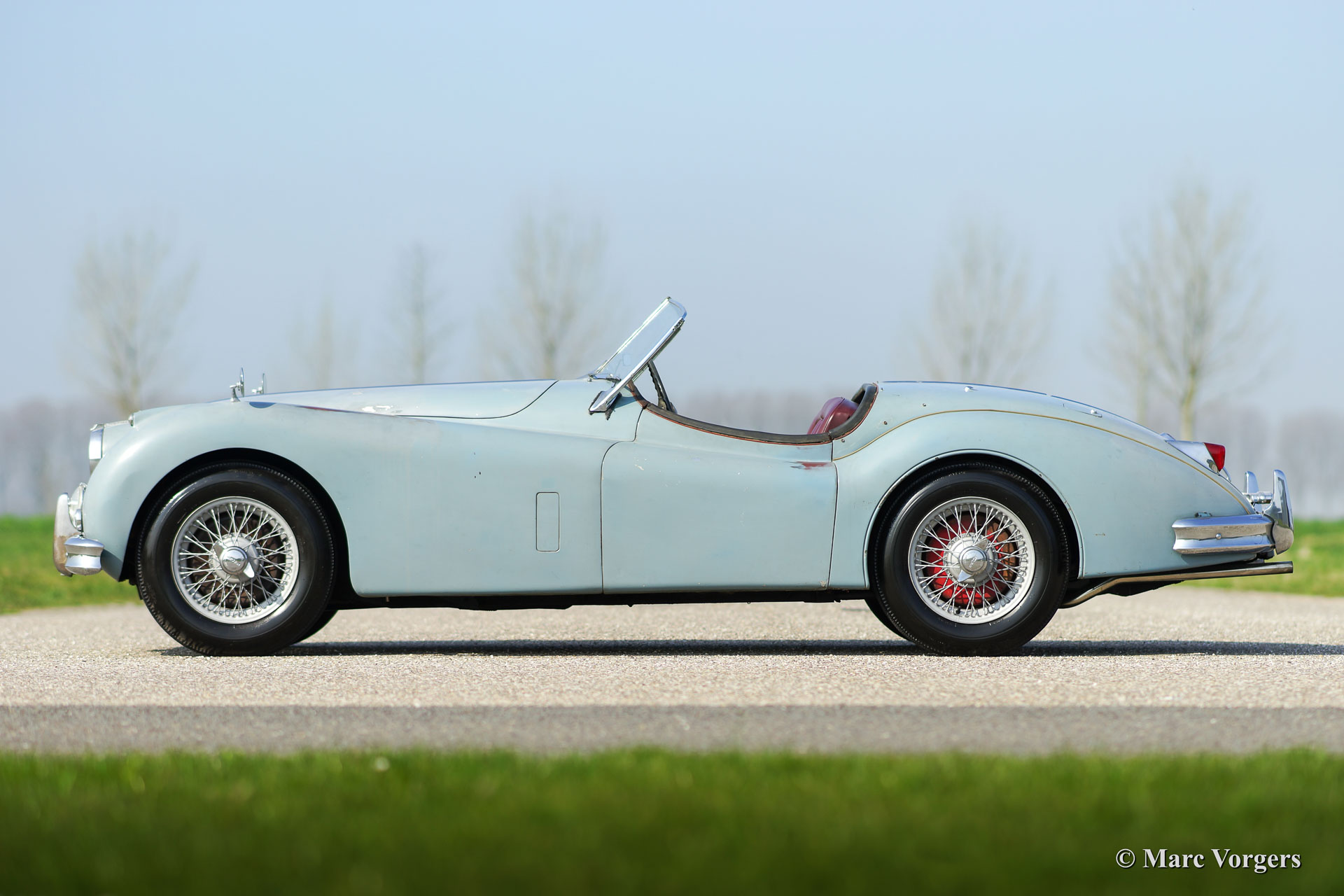 The Jaguar XK 140 replaced the famous XK 120 and was brought onto the market in 1954. The XK 140 was an evolution of the XK 120 with some visual differences and technical improvements. The handsome and dynamic features remained largely unchanged. New was the grille, which counted fewer vertical bars; the rear lights were larger, the bumpers were thicker, and the front indicators, which were placed on the front of the front wing. The important technical improvement was that the XK 140 was provided with a rack and pinion steering which greatly improved steering and driving.
