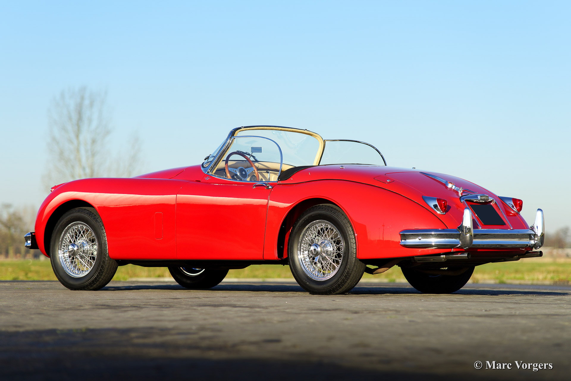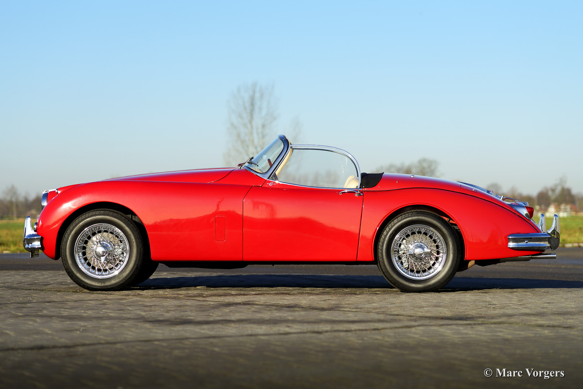 Jaguar XK 150 3.4 Litre S OTS (Open Two Seater), year 1958. Chassis number: S830829DN, engine number VS1170-9, both numbers matching according to the Heritage certificate. Colour Carmen red with a beige leather interior and beige carpet. Black mohair soft top. This stunning Jaguar XK 150 roadster is a factory original S (Special Equipment) model. The automobile has been extensively restored by a Dutch Jaguar restoration specialist in the years 1998/2002. A restoration file is present without photo reportage. The Jaguar has driven 18.000 miles since the restoration and the car is in superb (excellent+) condition!