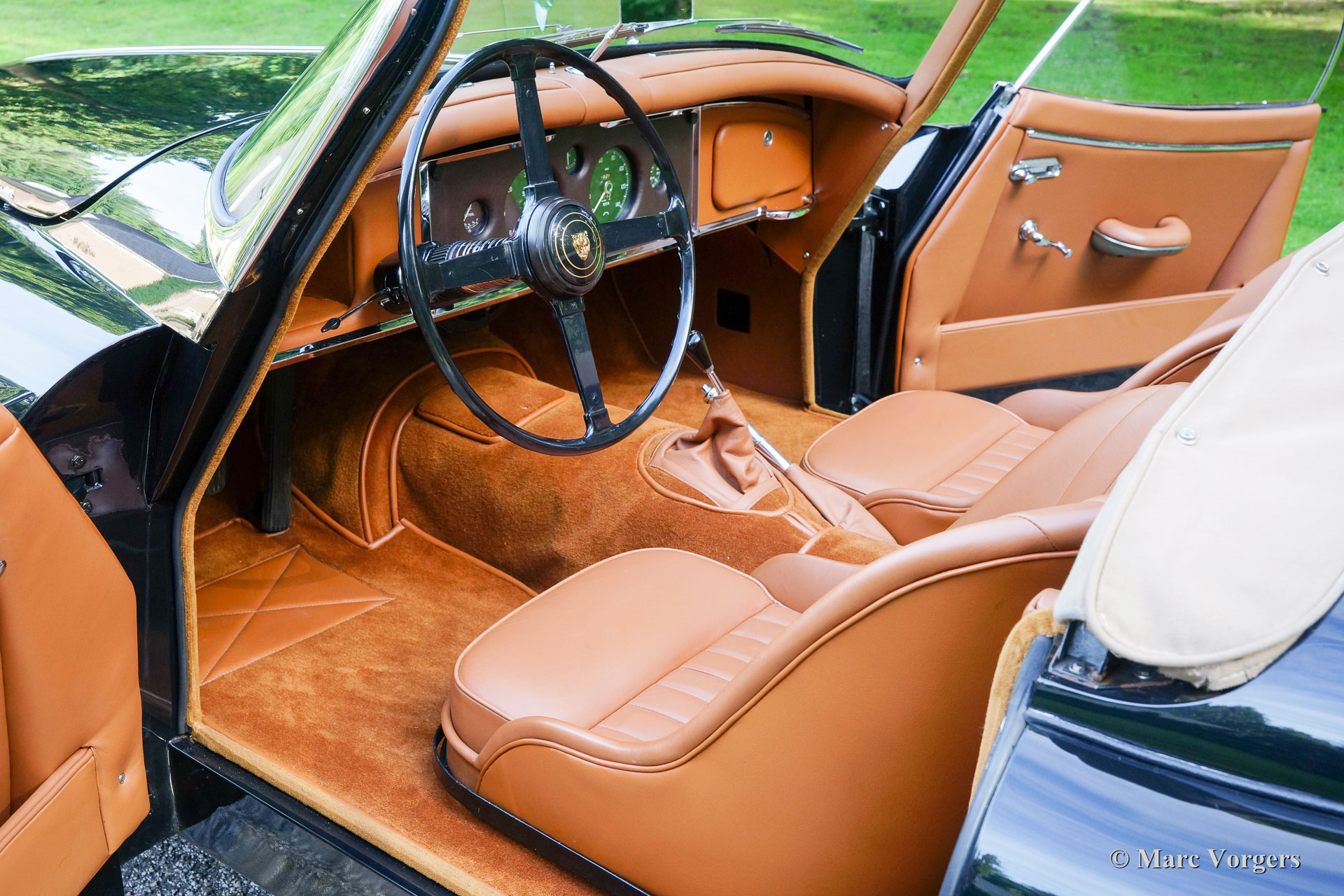 Jaguar XK 150 3,4 Liter S OTS, Jahr 1958. Farbe schwarz mit einem Cognac Farbe Leder-Interieur und passenden Teppich. Diese fantastische Jaguar XK 150 S ‘Open Two Seater‘ (OTS) wurde neu geliefert in den USA. Das Auto wurde in den letzten Jahren umfangreich und ‘body off‘ restauriert zur Perfektion. Die sorgfältige Restaurierung hat zehn Jahre gedauert, etwa 2000 Stunden waren benötigt um diese hervorragende Qualität zu erreichen. Das Auto verfügt über die wünschenswerte 250 PS 3,4 Liter S-Motor mit dem ‘straight port‘ Zylinderkopf und drei SU HD8 Vergaser. Der Motor und das Getriebe wurden von der renommierten Firma Kolvenbach in den Niederlanden überholt. Seit Abschluss der Wiederherstellung hat der Wagen nur 1500 km gefahren, das Auto Fährt perfekt! Das Auto verfügt über die folgenden Optionen: Silber lackierte Chrom Speichen Räder, einbrennlackiertes Fahrwerk, original Jaguar C-Typ-Schalensitze und eine Hochleistungsanlasser. Eine fantastische XK 150 S in herforragender Zustand!