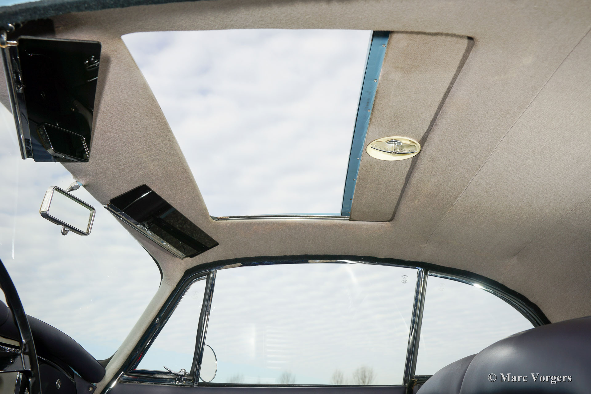 The XK 150 replaced the Jaguar XK 140 in 1957. The undercarriage of the XK 150 was for the greater part equal to the XK 140’s, but its bodywork was new and broader. Though its design was again very refined, it was somewhat less dynamic as compared with the XK 120 and XK 140. The bodywork was less sleek and the design of the characteristic wing lines was now less markedly sloping. The increased width of the bodywork resulted in a wider grille which, in line with the best Jaguar’s tradition, was delicately integrated in its design. The XK 150 was the first of XK series with an unbroken panoramic windscreen.