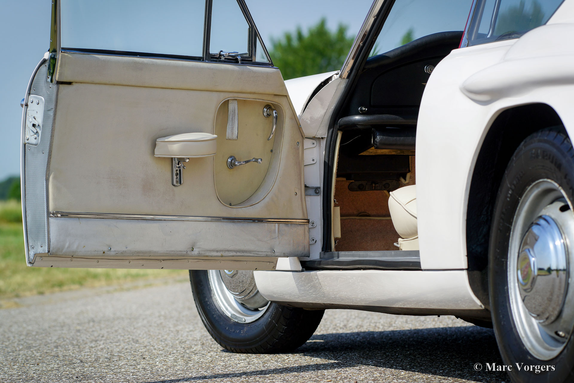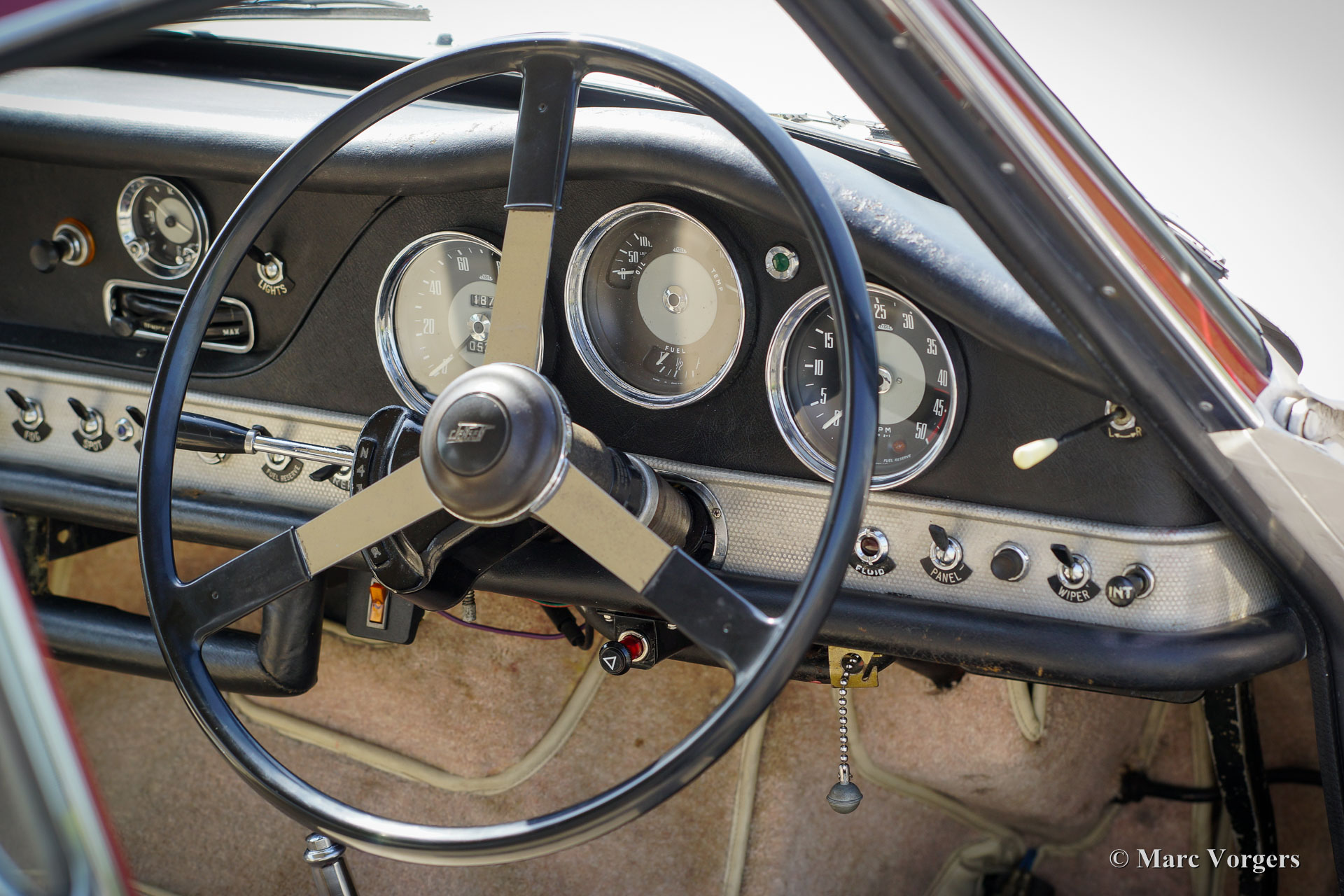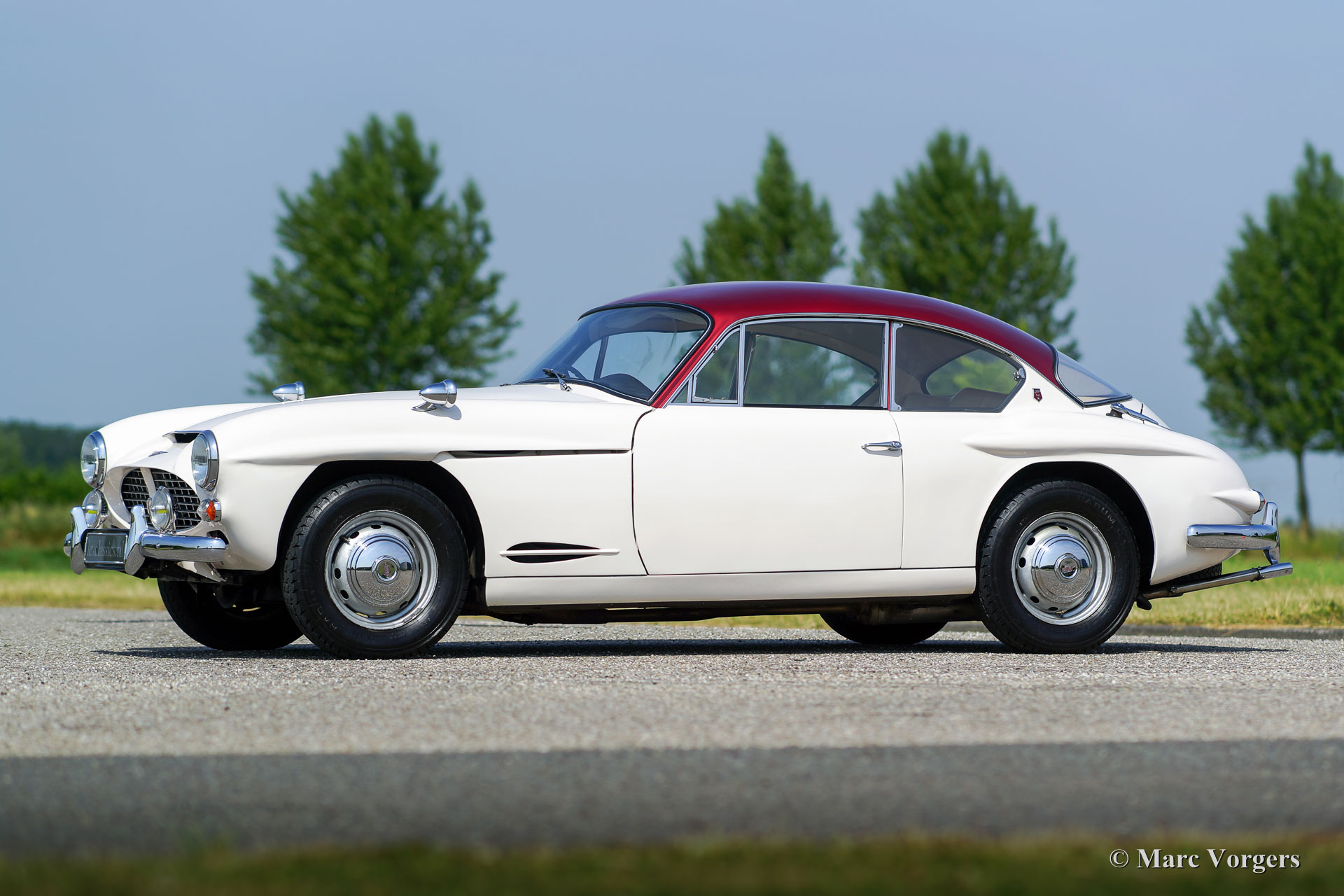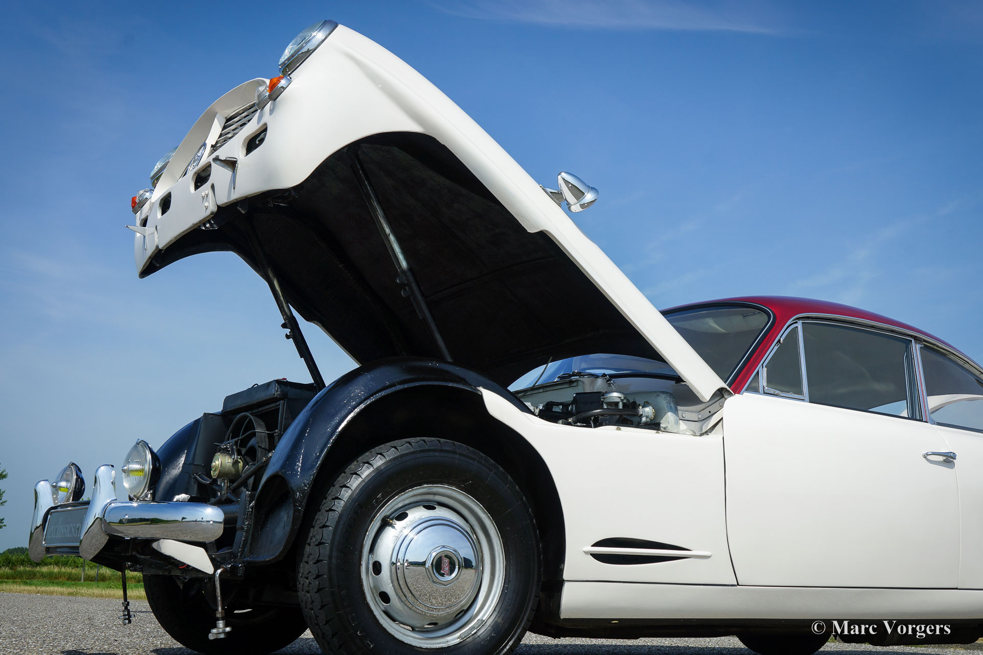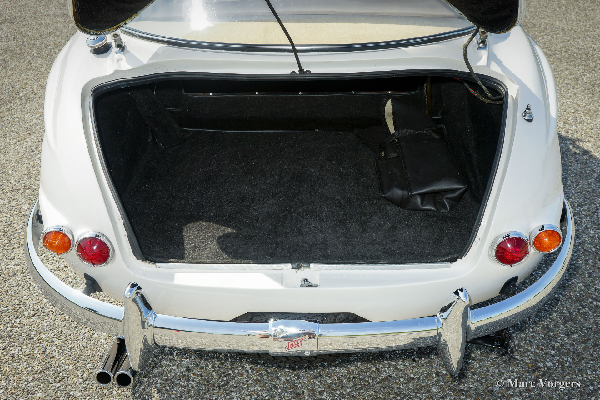 Jensen 541 S, Jahr 1961. Farbe weiß mit dem Dach rot metallic lackiert. Hellbeige (Magnolia) Lederpolster und Beige Teppich. Diese wunderschöne und seltene Jensen 541 S wurde in der Vergangenheit in Großbritannien restauriert. Rechnungen der Wiederherstellung sind vorhanden. Das Auto ist in einem sehr guten und schönen Zustand und das Auto zeigt alle Originaldetails. Die Jensen 541 S verfügt über eine große Austin 3993 cc Sechs-Zylinder Reihen-Motor mit einem herrlichen Motor Sound. Die Kraft wird über ein Rolls-Royce Hydramatic 4-Gang-Automatikgetriebe auf die Hinterräder übertragen. Der Jensen 541 S ist ein sehr seltenes Auto, wie oben erwähnt, nur 127 Autos wurden gebaut, von denen 20 mit einem manuellen Getriebe und 107 Autos mit dem Rolls Royce Hydramatic ausgestattet waren. Der Jensen 541 S verfügt über ein Stahl-Chassis mit einer glasfaserverstärkten Kunststoff-Karosserie (GFK), dass in der Tradition vieler britischer Sportwagenhersteller der 60er Jahre. Mit einem Jensen 541 S fährt man nicht incognito; Ein echter Kopfdreher ist es und ein besonderes Stück britischer Auto-Geschichte!