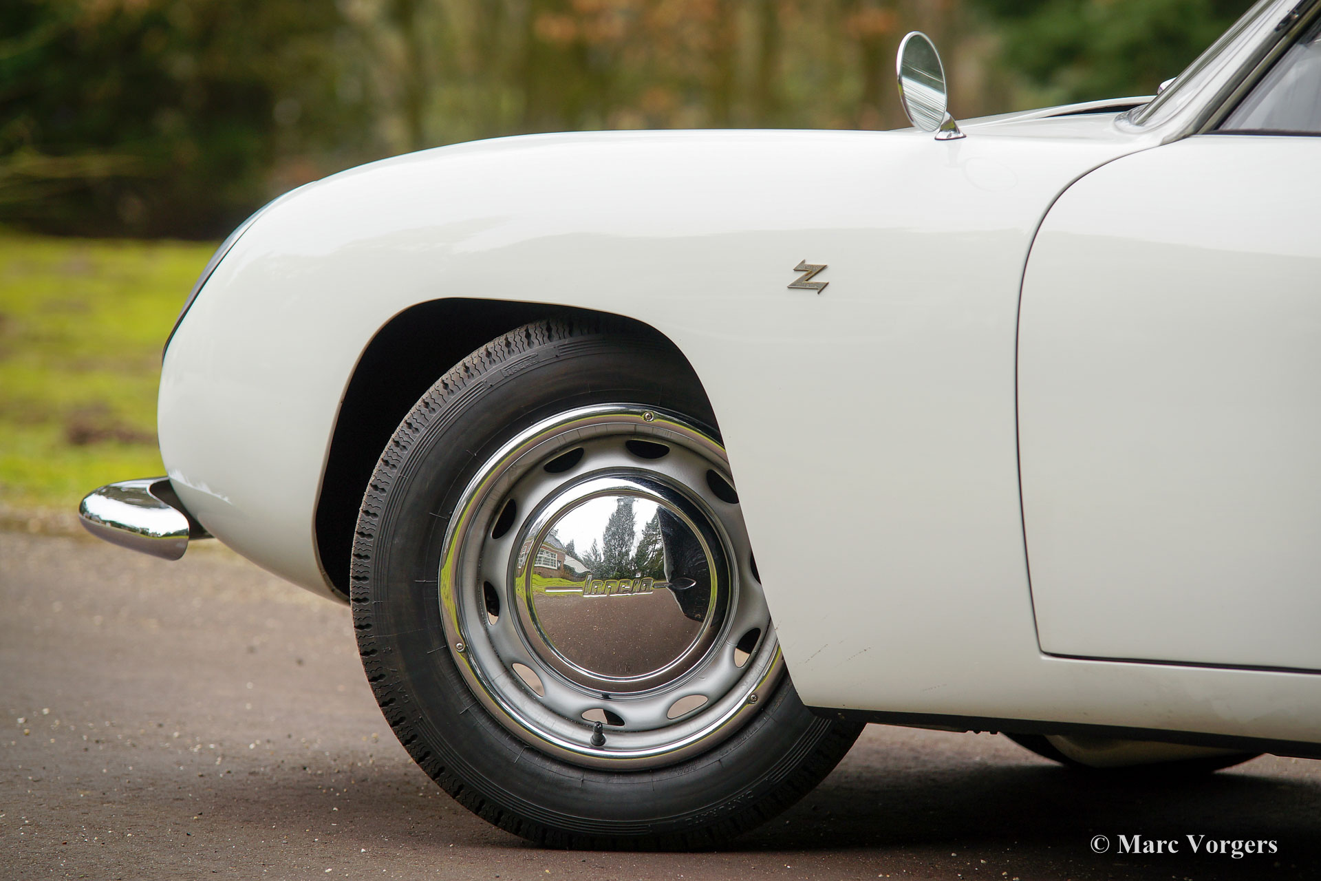 Lancia Appia GTE Zagato, Jahr 1959. Farbe Weiß mit einer blauen Lederausstattung und schwarzem Gummi Teppich. Dieser wunderschöne und seltene Lancia Appia GTE Zagato wurde neu verkauft in Frankreich. Im Jahr 1960 fand der Lancia ein neues Zuhause in den USA, wo es seit über 45 Jahren nur einen Besitzer hatte! Im Jahr 2005 wurde das Auto in die Niederlande importiert. Im Jahr 2007 wurde das Auto auf dem neuesten Stand gebracht von einem Fiat/ Lancia Spezialisten und wurde das Auto wurde wieder für den Straßenverkehr registriert. Im Jahr 2013 wurde der Lancia ausgiebig gestrippt, um das Auto neu zu lackieren. Die Unterseite und der Kofferraumboden wurden auf das blanke Metall abgestreift. Der Körper war in einem tadellosen Zustand; kein Rost, Beulen oder Füllstoff gefunden! Der Körper wurde mit Epoxy-Primer grundiert und dann in der Originalfarbe lackiert. Zur gleichen Zeit wurden die Stoßfänger, der Kühlergrill und die Radkappen neu verchromt und es wurden vier neue Pirelli Cinturato Reifen montiert. Der Kilometerzähler liest derzeit 49.800 Kilometer. Diese fantastische Lancia Appia GTE Zagato ist in einem sehr guten Zustand und das Auto fährt perfekt. Das Auto ist komplett mit einer Geschichte-Datei. Der Lancia Appia GTE Zagato ist ein seltenes Sammlerstück; nur 241 Exemplare wurden von Zagato gebaut. Ein höchst wünschenswerter Klassiker und eine sehr gute Investition.