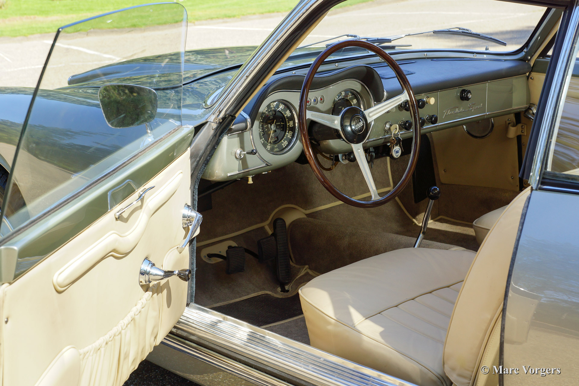 The Flaminia series was at first equipped with a 2500 cc. V6 engine fitted with one double choked Weber carburettor. Shortly thereafter the Flaminia models were fitted with uprated 2800 cc. engines and the most powerful versions were fitted with three double choked Webers. (3C in the Super Sport Zagato). The Flaminia Supersport Zagato was built with a aluminium unitary bodywork construction and the car featured the same technical specialties as the other Flaminia models. The cars featured a "de Dion" rear axle, overhead camshafts, disc brakes all round and a gearbox mounted to the rear axle (Transaxle). The expensive Transaxle construction made it possible to obtain an ideal weight distribution between the front and rear axles resulting in superb roadholding.