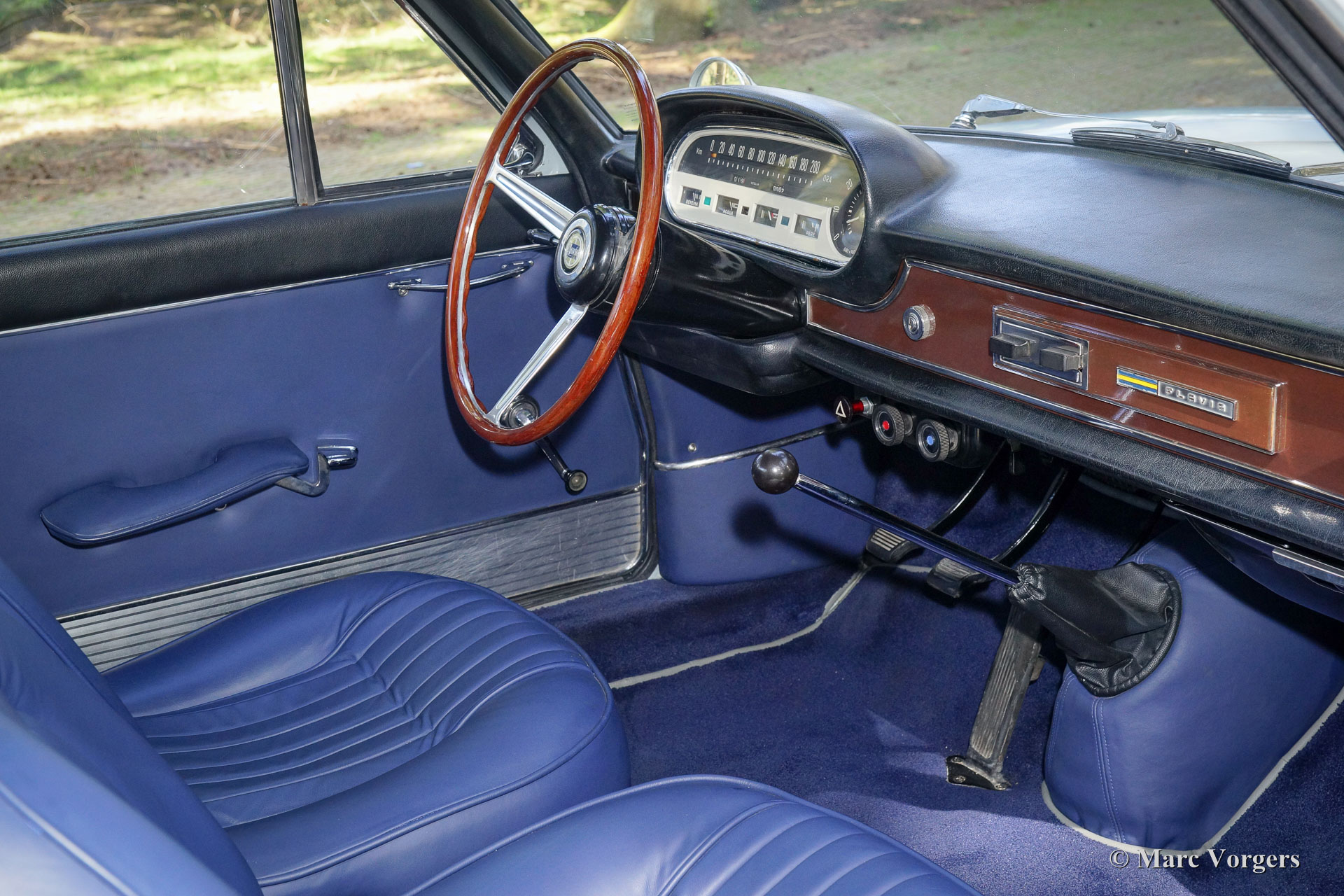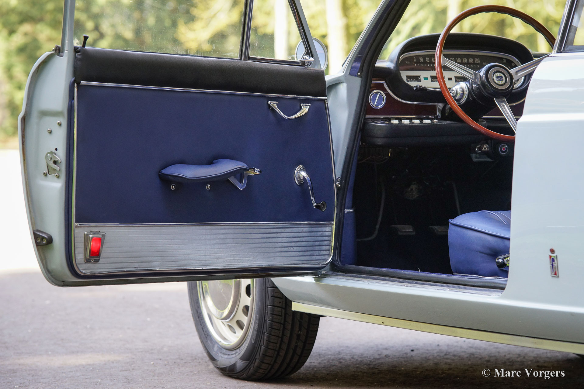 Lancia Flavia 1.8 PF Coupé, Jahr 1965. Farbe hellgrau (Grigio York) mit einer dunkelblauen Lederausstattung und dunkelblauen Teppich. Diese sehr schöne Lancia Flavia wurde von Vasto, Italien importiert. Dies ist ein ‘matching numbers‘ Auto aus der ersten Serie. Der Lancia wurde total ‘nut & bolt‘ bis zur Perfektion restauriert; Das Automobil ist in TOP-zustand, concours! Bei der Restaurierung wurden folgende Teile erneuert (unter anderem): 4 innere Kotflügel, 4 Rad Läufe, Bremsen (jetzt mit Edelstahl Hydraulikleitungen), Stoßstangen (jetzt Edelstahl), Kühlergrill, Abgasanlage, Parkbremsmechanismus, Gelenke / Lager der vorderen Antriebs Radachsen, Kühler, Hauptlager, Ölpumpe, Leuchten und Lampen, Türgriffe, breitere Räder mit breiteren Reifen (original Räder sind vorhanden), Kupplung, Anlasser und der Vergaser. Zusätzlich wurde das Auto eine Dinitrol Rostschutz Behandlung gegeben. Dies ist der schönste Lancia Flavia wir je gesehen haben und der Beste den wir je gefahren haben. Sie werden kein besseres Exemplar finden!