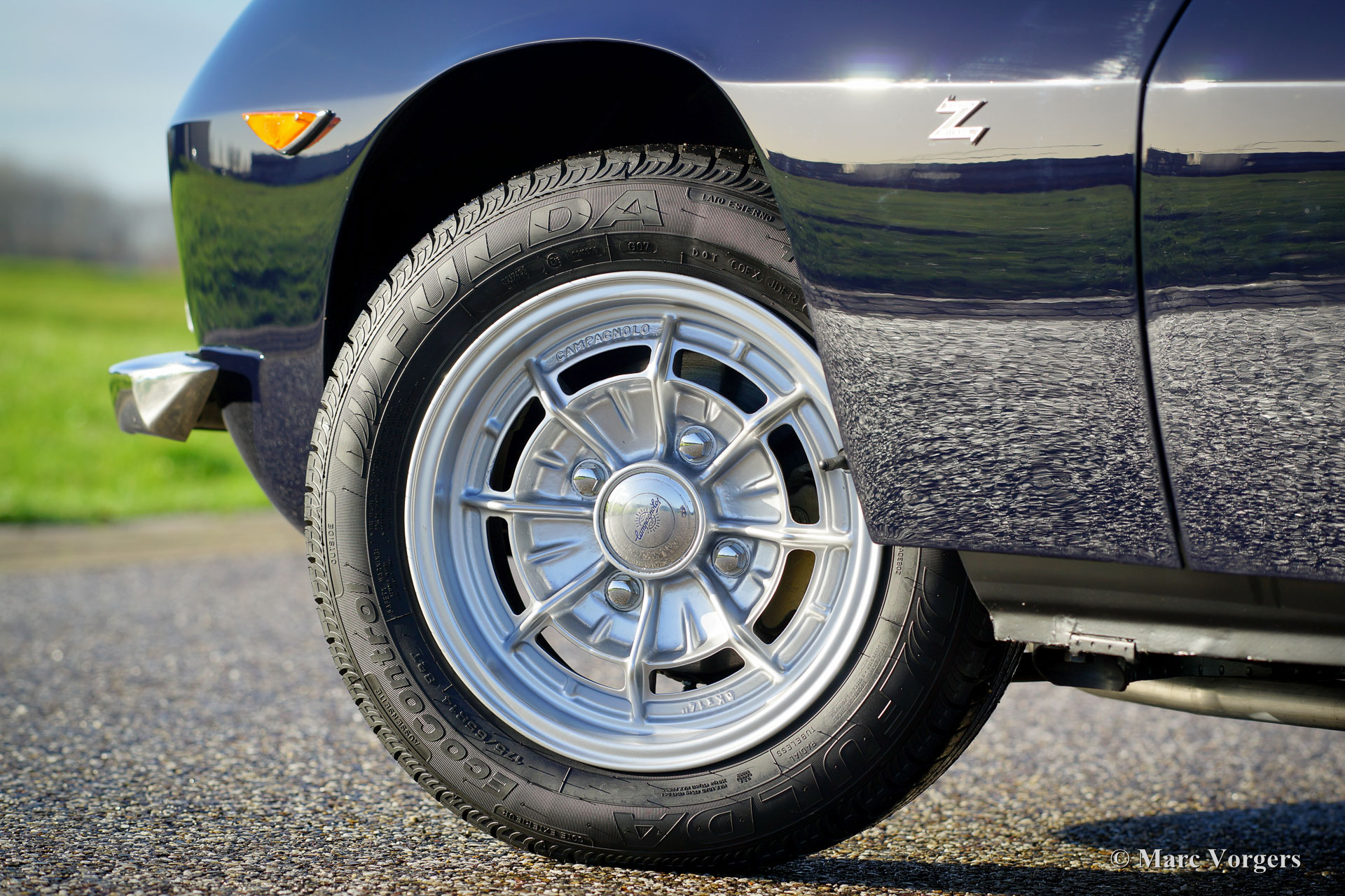 Lancia Fulvia 1.3 S Sport Zagato, Jahr 1971. Farbe dunkelblau mit einer dunklen beigen Lederausstattung und schwarzem Teppich. Diese enorme Lancia Fulvia Sport Zagato von der zweiten Serie wurde vor kurzem komplett restauriert, um Perfektion und ohne Kompromisse! A1 concours Zustand! Dies ist ohne Zweifel der schönste und den besten Lancia Fulvia Sport Zagato die Sie jemals finden werden. Jedes Detail wurde sorgfältig und mit liebe restauriert, und wo Bedingt wurden ‘new old stock‘ Teile verwendet. Die Karosserie zeigt perfekte Panel fit, der Lack zeigt wie Glas mit einem tiefen Glanz und der Innenraum ist atemberaubend gut renoviert. Die Restaurierung wurde im Jahr 2015 abgeschlossen, eine Fotoreportage von der Wiederherstellung ist vorhanden. Nur 600 Lancia Fulvia Sport Zagato Autos wurden gebaut. Dies ist ein seltenes und sehr wünschenswertes italienisches Coupé in einwandfreiem Zustand. Eine solide Investition für den ernsthaften Sammler und einem potenziellen Concours d'Elegance Gewinner!