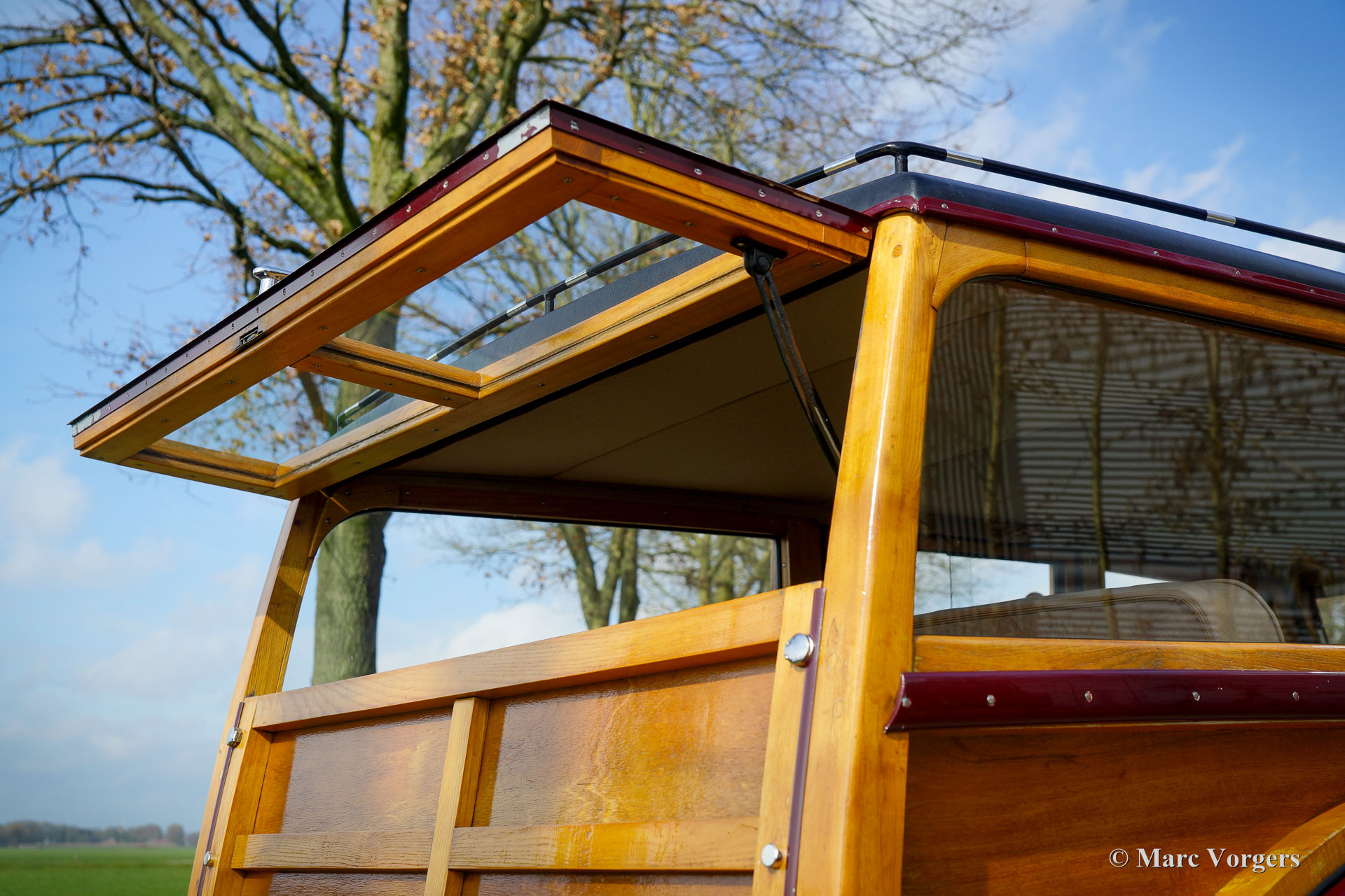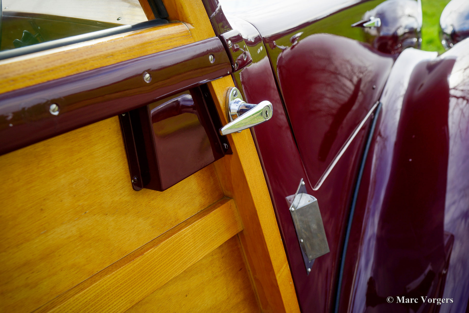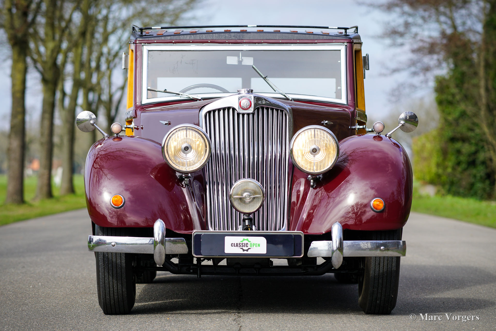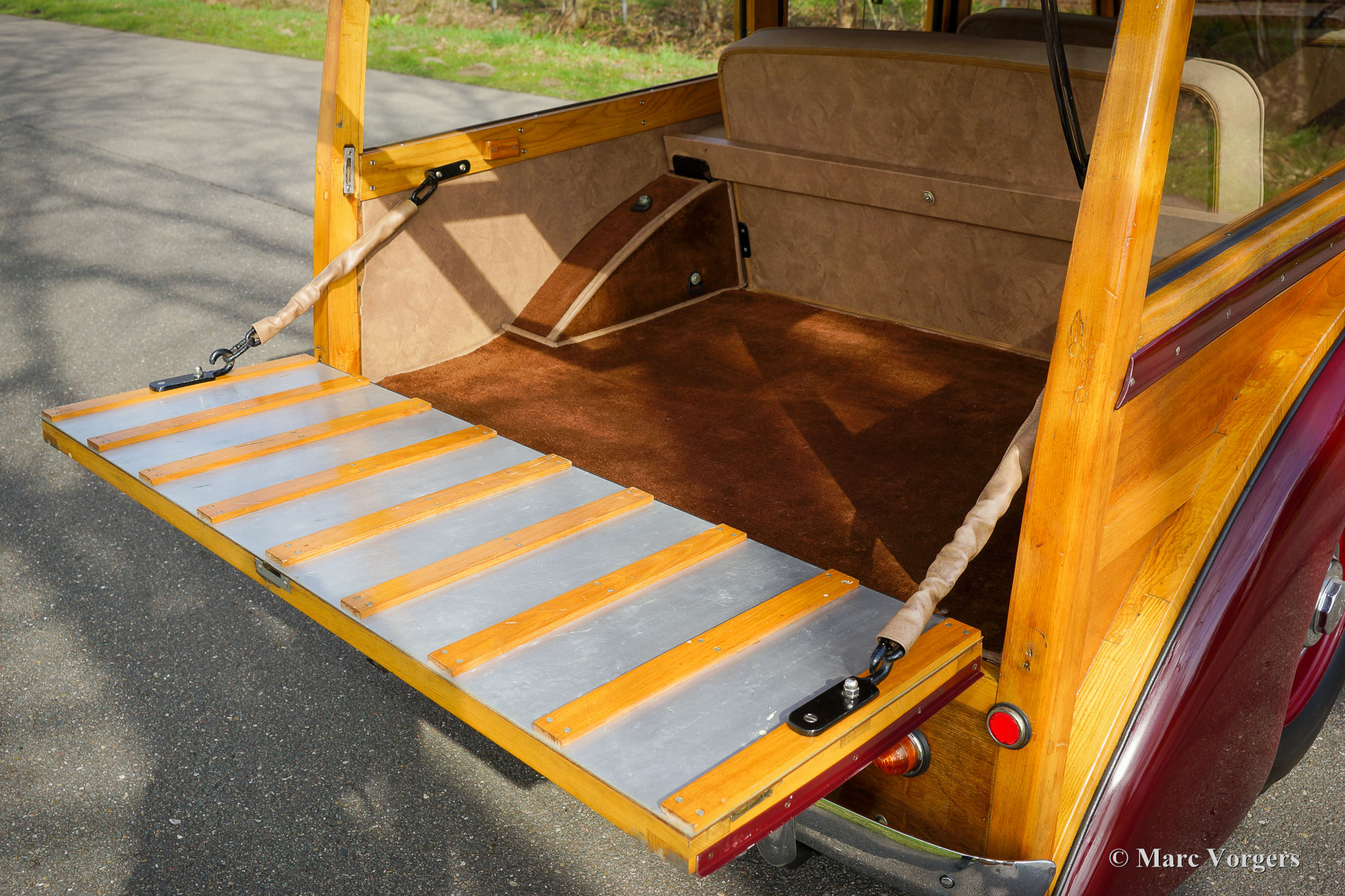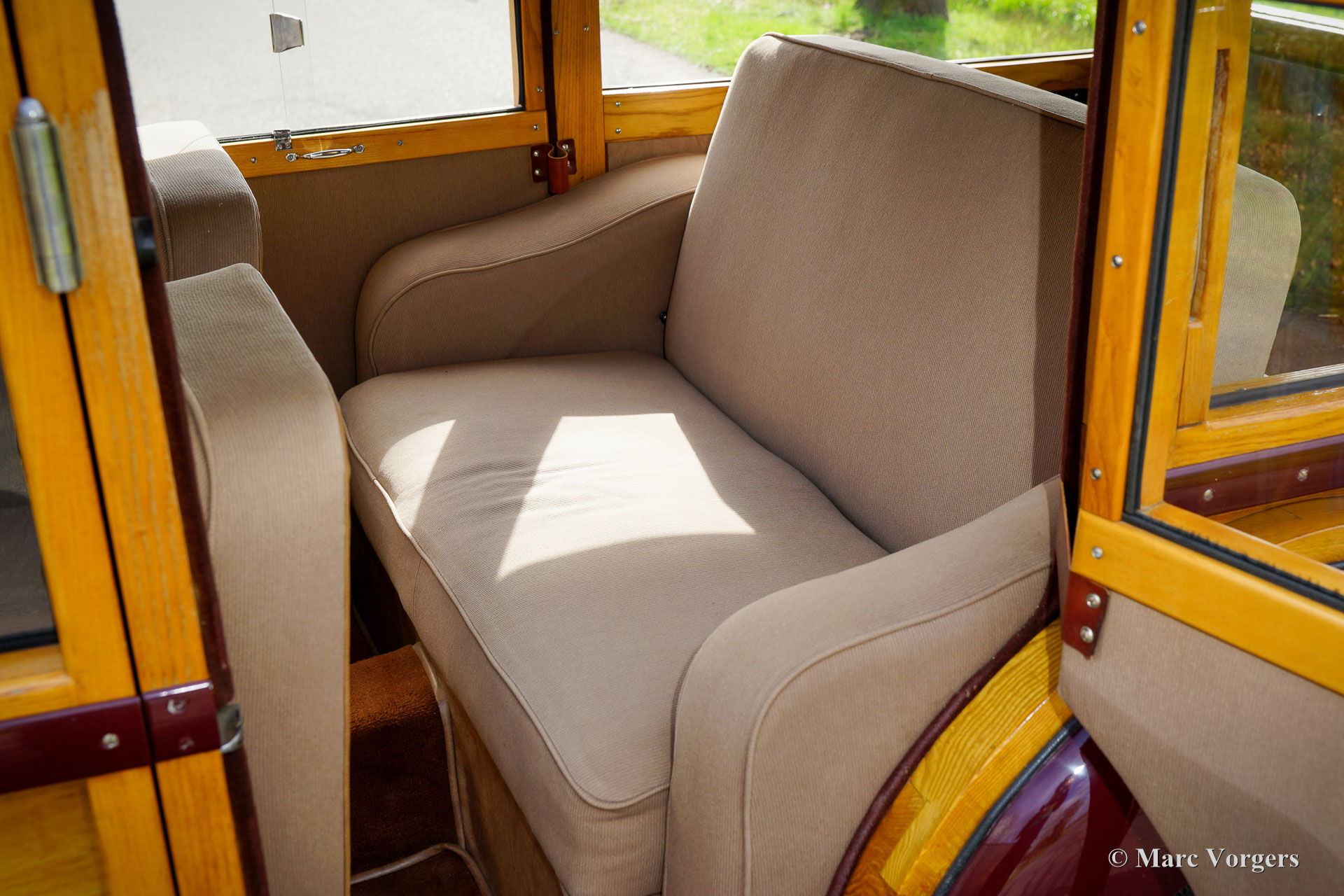 Lea Francis 14HP ‘Estate car’, Jahr 1949. Farbe Burgunderrot kombiniert mit einem beigen Stoffinterieur und hellbraunem Teppich. Dieser prächtige Lea Francis 14HP ‘Estate car‘ (Kombi) wurde im Vereinigten Königreich neu verkauft. Das Automobil wurde in den Jahren 1986-1988 von Lea Francis Cars Ltd. in Großbritannien umfassend restauriert. Jetzt, 35 Jahre später, ist das Automobil immer noch in einem sehr guten und schönen Zustand! Das Auto wurde 2002 in die Niederlande importiert, der jetzige Besitzer kaufte das Auto 2005. Der Lea Francis wurde während dieser fürsorglichen Eigentümerschaft gut gepflegt und ordnungsgemäß in einem trockenen Garage abgestellt. Das Fahrgestell und die Mechanik des Autos sind in einem sehr guten Zustand, und das Auto fährt wunderbar. Das Holz der Karosserie ist immer noch in perfektem Zustand und die Innenausstattung ist wunderschön! Der Stoff auf den Sitzen und der Dachhimmel sind perfekt, die Holzverkleidung auf dem Armaturenbrett und den Türen ist hervorragend. Der Motorraum ist sauber und da finden Sie den wundervollen Lea Francis 1767 ccm Vierzylindermotor mit zwei obenliegenden Nockenwellen ausgestellt! Dieser fantastische „Woody“-Kombi zeigt wunderbare Originaldetails. Von 1946 bis 1953 wurden von Lea Francis und ihren Karosseriewerkstätten in der Gegend von Coventry nur 916 dieser „Woody“-Kombis und -Vans auf dem 14-PS-Chassis gebaut. Lea Francis produzierte immer zuverlässige und robuste Personenwagen und feine Sportwagen. Der 14HP ‚Estate car‘ ist einer der am besten aussehenden und gebauten „Woody“-Kombiwagen eines britischen Herstellers. Diese Lea Francis wird geliefert mit einer britischen Geschichtsakte mit Korrespondenz und Rechnungen aus den 1980er und 1990er Jahren. Ein sehr begehrtes Sammlerstück in einem wunderbaren Zustand!