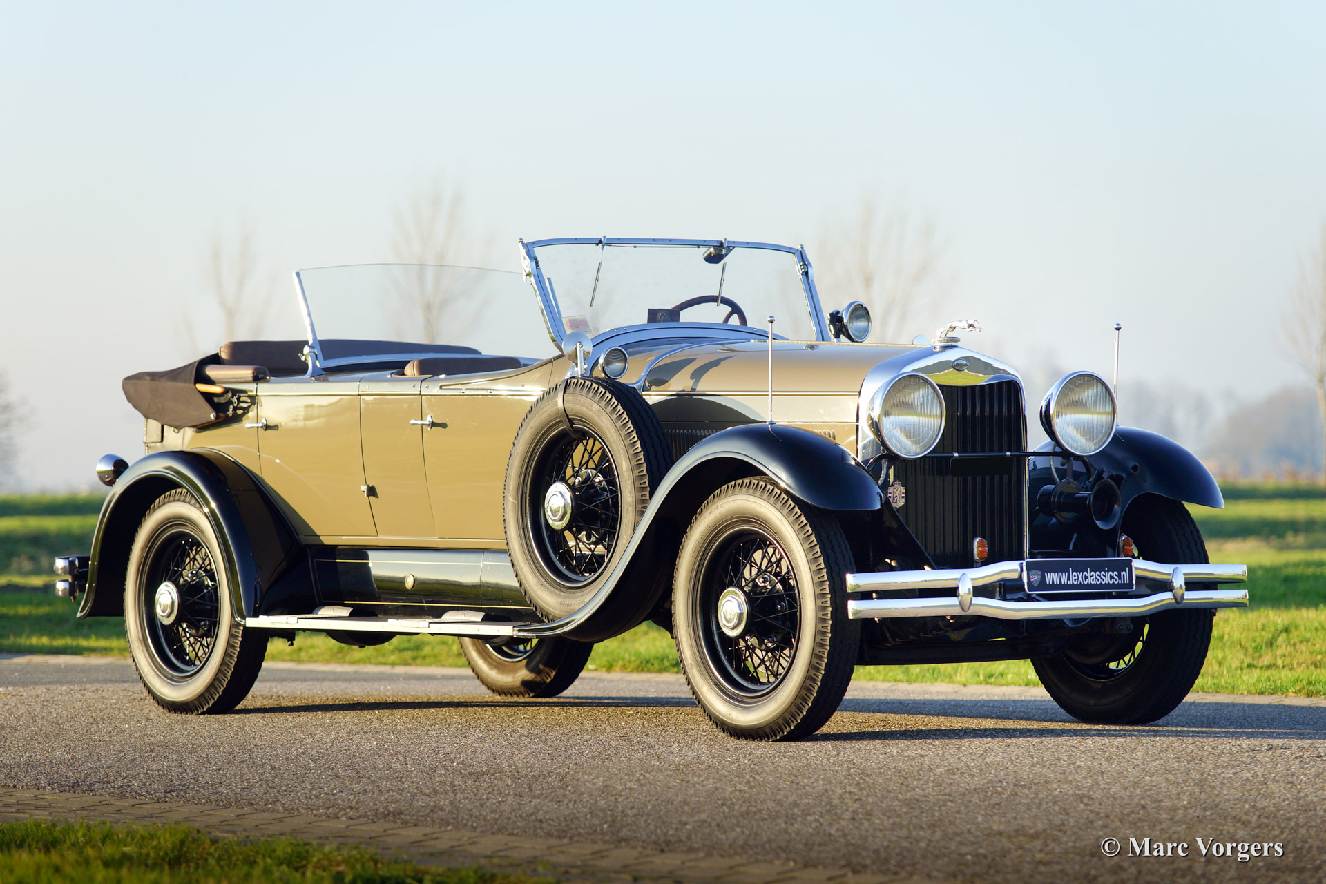 This 1928 Lincoln model L Sport Phaeton was sold new in The Netherlands. The first owner Mr. M. van Marwijk-Kooy purchased the motorcar at Schutter & van Bakel coachbuilders located in Amsterdam. 1930'ies photo's picturing the Lincoln in front of the old 'van Vollenhoven' residence in 'de Bilt' are present. The family still owns this property in The Netherlands.