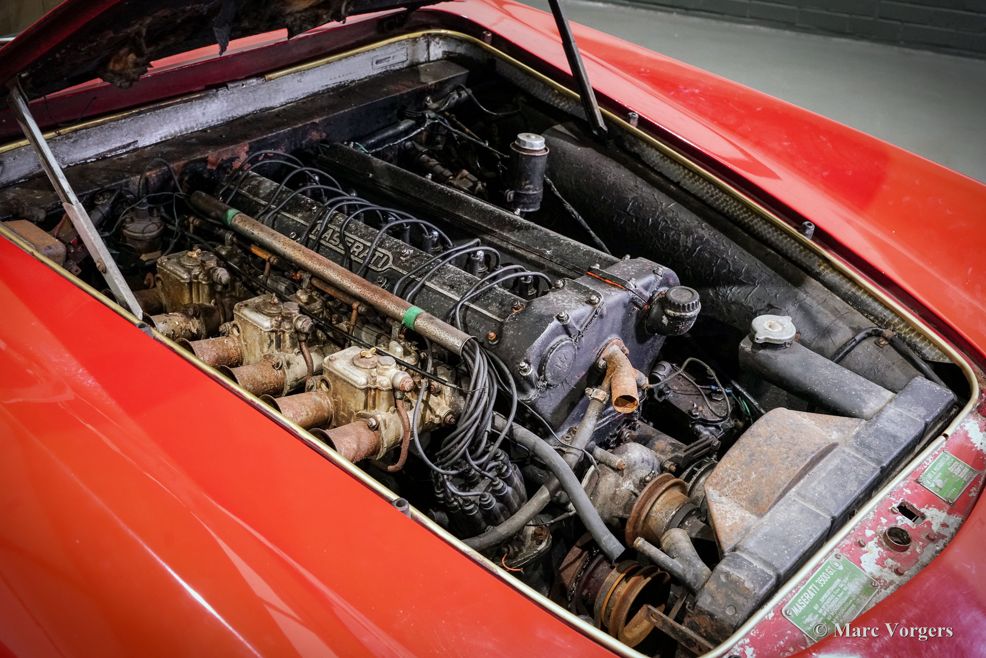 Maserati 3500 GT Touring, Jahr 1962, Restaurierungsobjekt, komplett und versehen von dem originalen Motor, Getriebe und anderen Teile, die ab Werk montiert waren (‚matching numbers‘). Fahrgestellnummer (VIN): 101-1862, Touring-Karosserienummer 12172. Farbe Rot kombiniert mit beigem (Elfenbein) Interieur. Nach 10 Jahren beim ersten Besitzer fand dieser fantastische Maserati 3500 GT im Jahr 1972 ein neues Zuhause im Vereinigten Königreich. Im Jahr 1987 wurde das noch immer fahrbereite Auto abgestellt in einer Garage. Das Kühlsystem wurde entleert und die Bremsbeläge entfernt. Das letzte britische V5C-Dokument aus dem Jahr 1986 gibt einen Kilometerstand von (1)17,898 Kilometern an, derzeit zeigt der Kilometerzähler 18,191 an. Das Auto kannte vier britische Besitzer, alle ihre Namen sind in den Unterlagen verzeichnet. Der Maserati wurde neu in der Farbe Kastanienrot (Maroon), kombiniert mit einer elfenbeinfarbenen Innenausstattung, verkauft. Im Jahr 2023 wurde das Auto versteigert und in die Niederlande verkauft. Dieser wunderschöne Maserati 3500 GT ist ein komplettes Auto und eine wunderbare Basis für eine vollständige Restaurierung. Es ist auch möglich, diesen Maserati mit einigen Restaurierungen an Teilen des Bodens und einer kompletten mechanischen Pflege in ein fahrbereites Fahrerauto zu verwandeln! Die Karosserie ist in einem recht guten Zustand und weist einige schlechte Stellen am Boden und in der Nähe der Radkästen auf. Es ist offensichtlicher, dass diese wunderschöne Maschine einer vollständigen Restaurierung unterzogen wird, sodass sie wieder in einem 1A-Werkszustand ist. Auf Wunsch kann das Auto von unserem erfahrenen Team, das Erfahrung mit dem Maserati 3500 GT und der Touring Superleggera-Karosseriekonstruktion hat, vollständig restauriert werden. Der Maserati 3500 GT ist ein sehr begehrtes und seltenes Automobil, von 1957 bis 1964 wurden nur 2226 Exemplare gebaut.