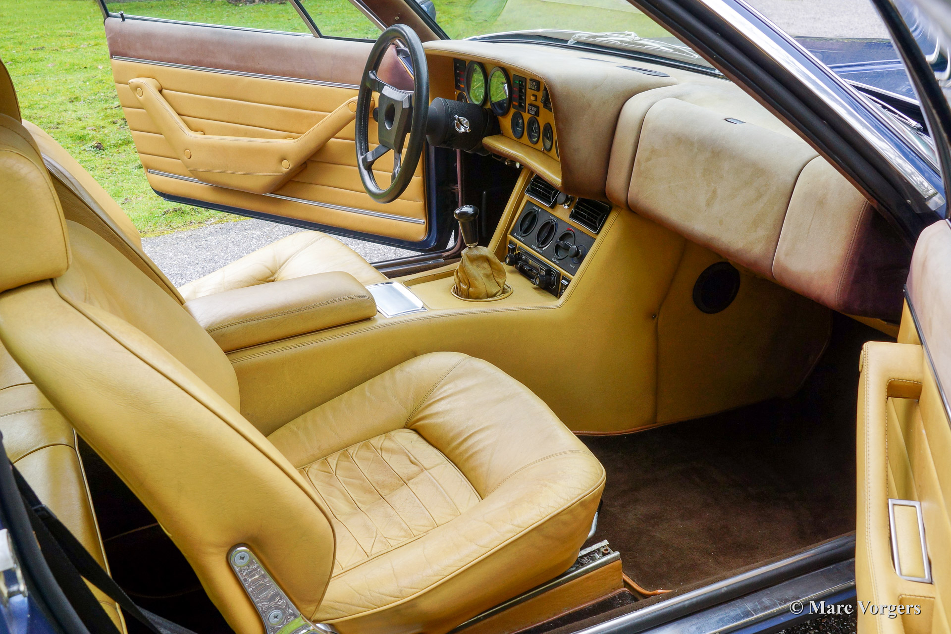 Maserati Kyalami, year 1980. Colour blue metallic with a beige leather interior, brown Alcantara dashboard and brown carpet. This rare Maserati Kyalami was imported from Rome, Italy. The beautiful bodywork was given new paint in the past which shows some dull (less shiny) spots on the adjacent panels. This Kyalami features the 4.2 Litre Maserati V8 engine and a 5-speed manual gearbox. The car has been reconditioned mechanically by a well known classic car restoration company, the car runs, shifts, brakes and drives perfect! The car is registered in The Netherlands and it comes with a recent Dutch APK (MOT /TUV).
