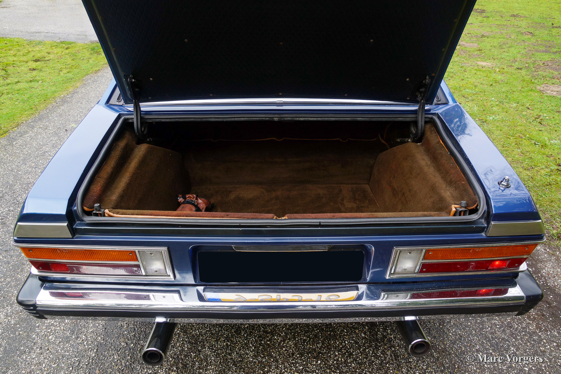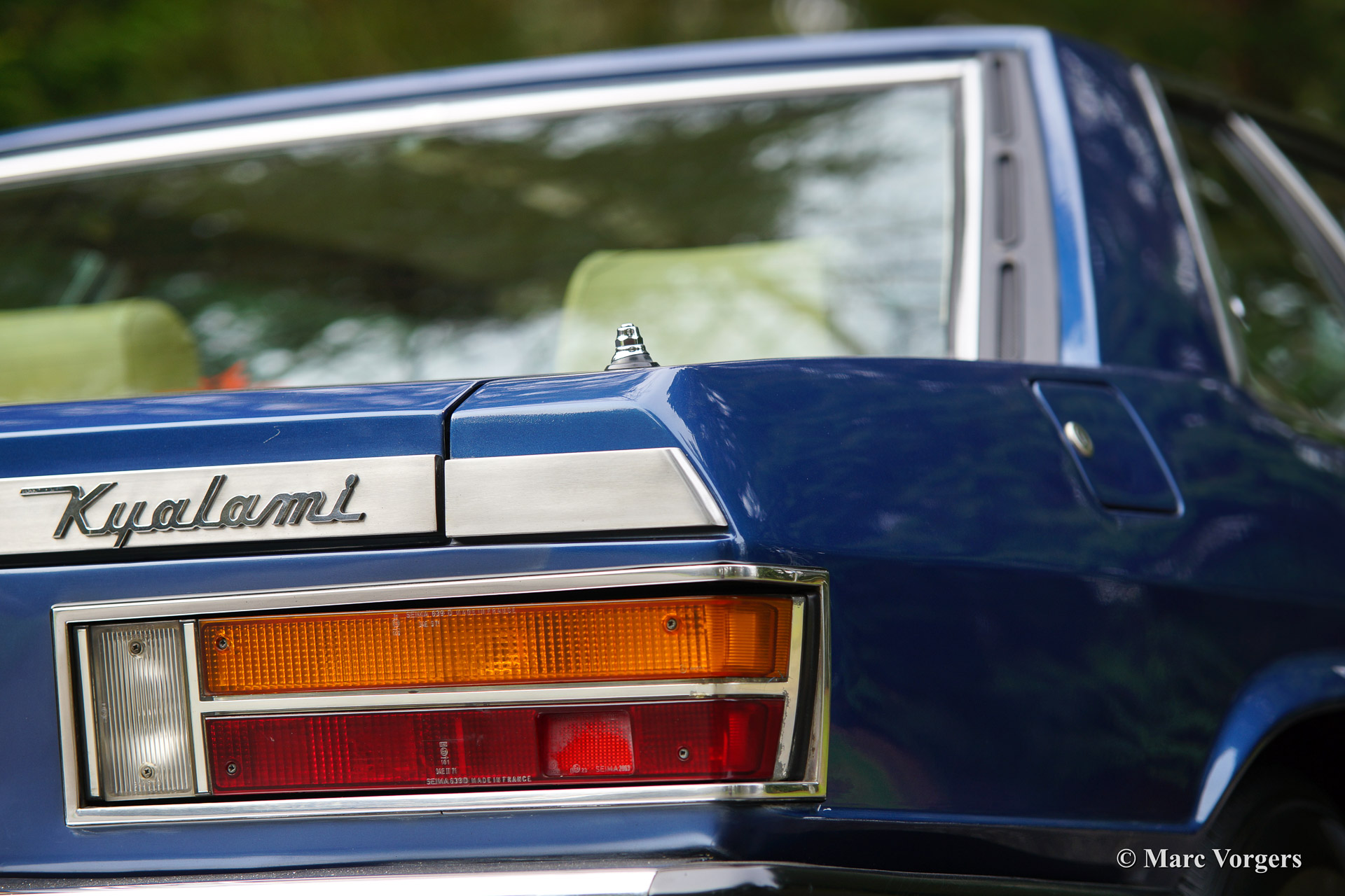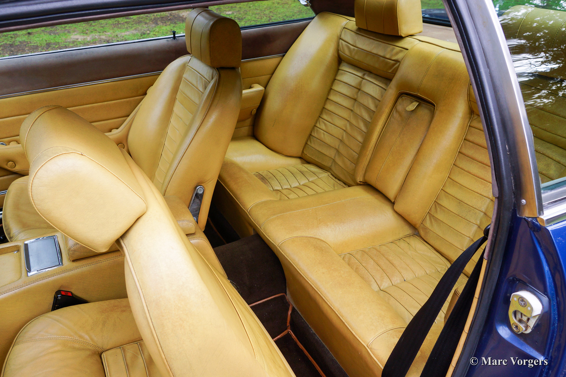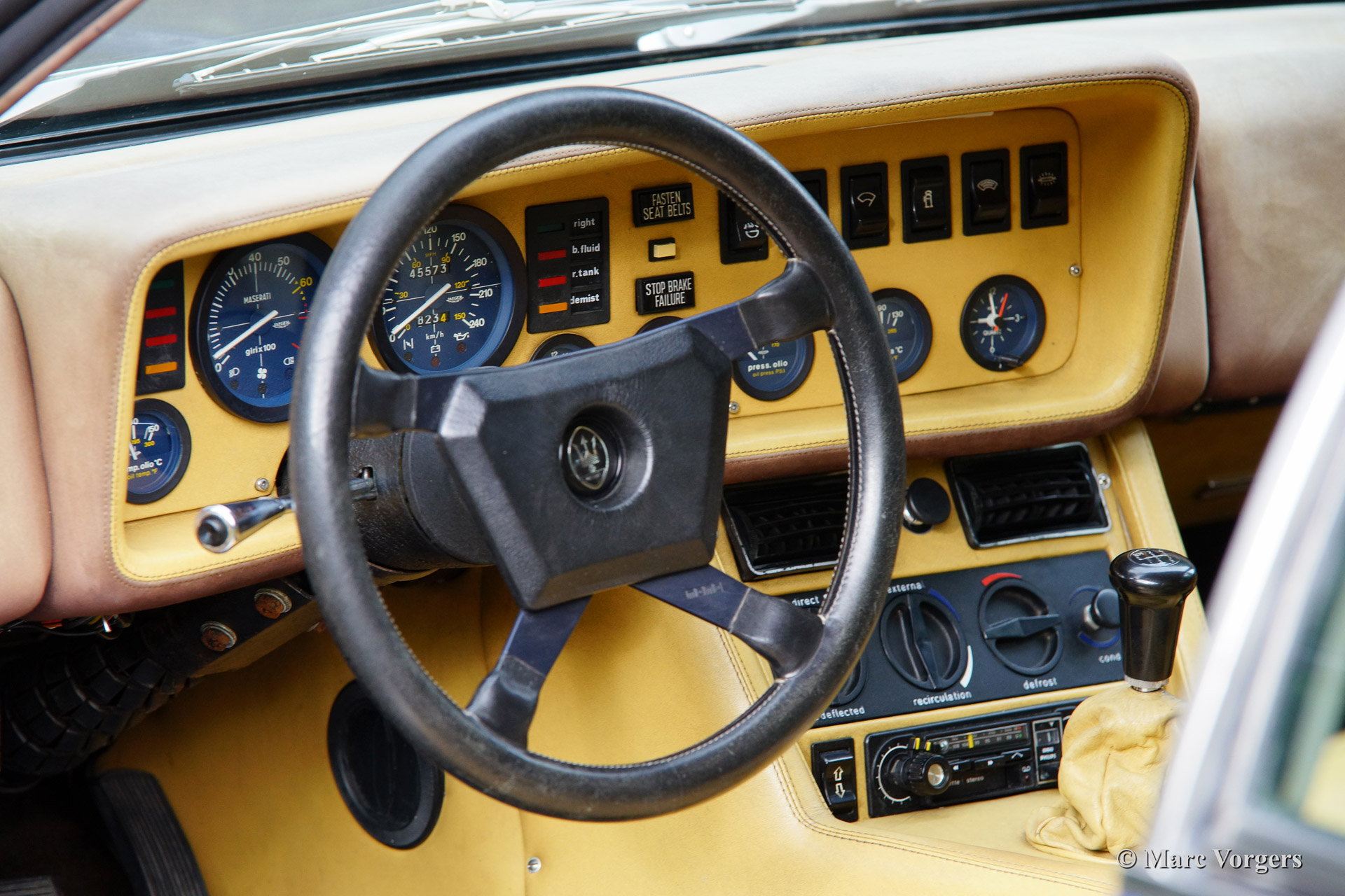 The Maserati Kyalami 2+2 seater two door saloon was introduced in the year 1976 after Alejandro De Tomaso had taken over the proud make. The automobile was based upon the De Tomaso Longchamps which was designed by Tom Tjaarda at Ghia. For Maserati the exterior was slightly altered by Pietro Frua. The modern Longchamps/Kyalami design proved to stand the test of time very well; the Longchamps was built from 1972 until 1990 and the Kyalami from 1976 until 1983. The cars featured a unitary bodywork structure, independent suspension and disc brakes all round, and powerful V8 engines. The De Tomaso Longchamps was fitted with Ford V8 engines. The Maserati featured thoroughbred Maserati power plants. First the 255 bhp. 4136 cc. V8 with double overhead camshafts (DOHC), and from 1978 the 280 bhp. 4930 cc. V8. Both cars are rare, the Longchamps production consisted of 412 cars, the Kyalami production ceased after only 150 cars being built.