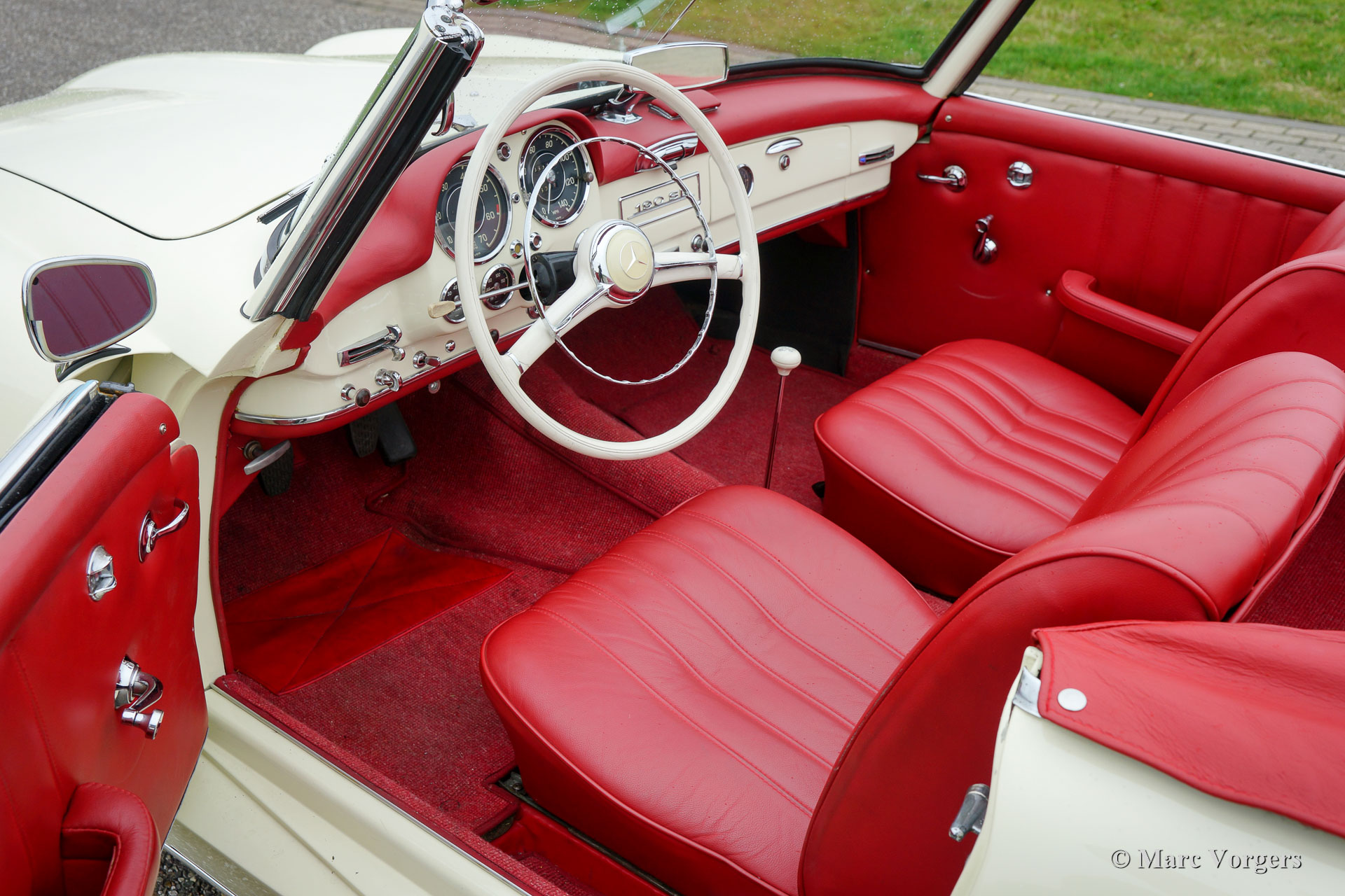 Mercedes-Benz 190 SL, Jahr 1959. Fahrgestellnummer 12140-10-95014XX. Farbe Elfenbein weiß mit einem roten Leder Interieur und eine schwarze Mohair Kapuze. Dieser wunderschöne Mercedes 190 SL wurde in Italien vom Jahr 2007 bis 2009 restauriert. In 2009 wurde das Auto in Italien registriert. Dieser wundervolle Mercedes-Benz 190 SL ist in einem sehr guten Zustand und das Auto fährt perfekt!
