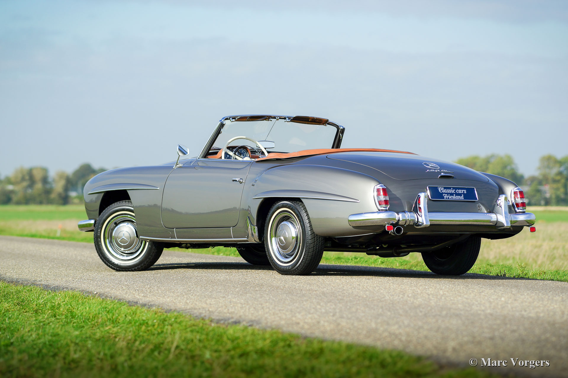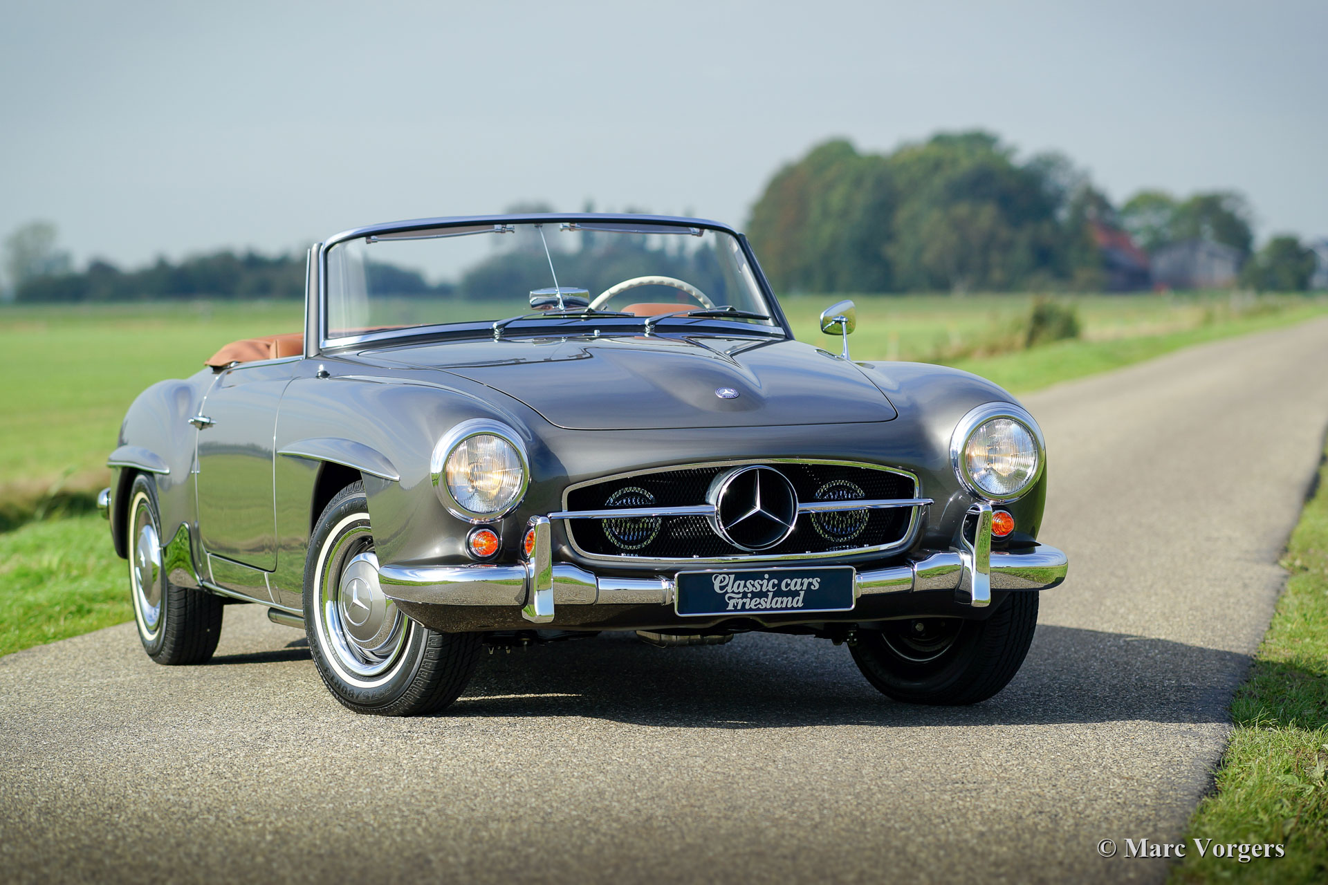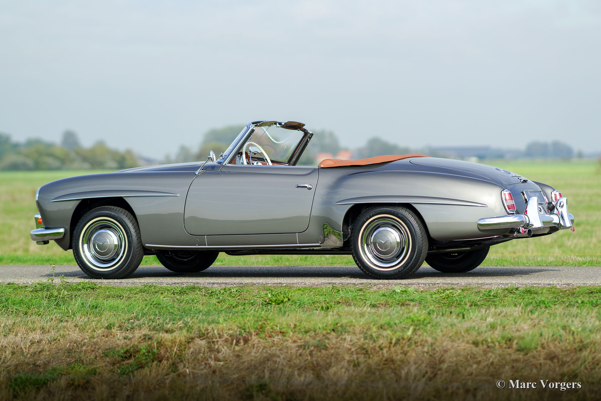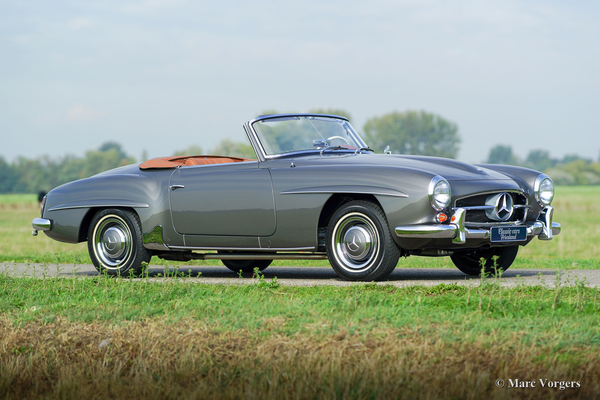 Mercedes-Benz 190 SL, jahr 1962. ‘Matching Numbers‘. Farbe ‘Gun Metal Grey‘ (Farbcode DB 172) kombiniert mit ein Cognac-farbigem Lederinterieur und beige Teppich. Schwarzes Mohair-Verdeck und ein cognacfarbenem Leder Verdeck-Abdeckung. Dieser wunderschöne Mercedes-Benz 190 SL wurde von einem professionellen Restaurierungsfirma in den Niederlanden vollständig restauriert. Die Restauration fand in den Jahren 2015 - 2018 statt. Ein ausführlicher Fotobericht und Rechnungen der Restauration liegen vor. Dieser sehr feine 190 SL ist in einem TOP Zustand: Concours! Die Karosserie wurde von dem nackten Metall aus restauriert und es erhielt eine perfekte 2K metallic Lackierung. Die Panel-Passform ist perfekt! Der Innenraum und das Verdeck wurden von einem Spezialisten perfekt neu gemacht und montiert. Mechanisch wurde alles restauriert, überholt und / oder erneuert (einschließlich der Armaturenbrett-Instrumente), ein neuer Kabelbaum wurde montiert und alle Chromteile wurden perfekt neu verchromt. Das Auto ist ausgestattet mit der Originaluhr, einem prächtigen Oldtimer Becker Europa LMKU-Radio, einem sehr schönen Satz von drei Koffern und dem ursprünglichen Werkzeugsatz. Dies ist ein brandneu restaurierter Mercedes-Benz 190 SL in einem sehr wünschenswerten Farbschema.