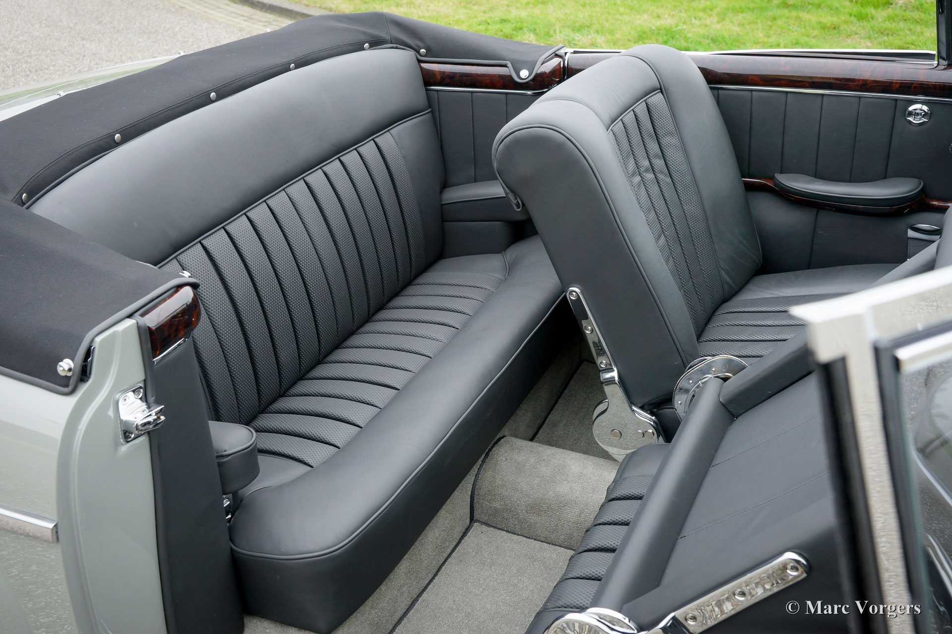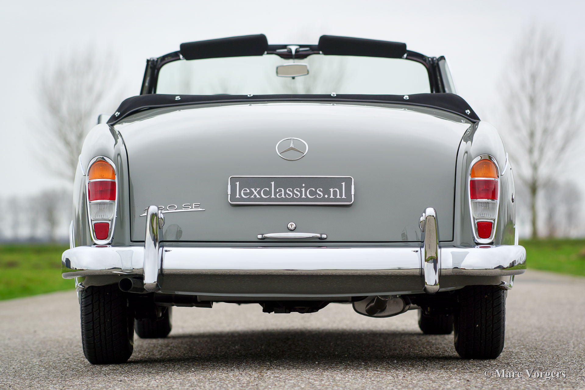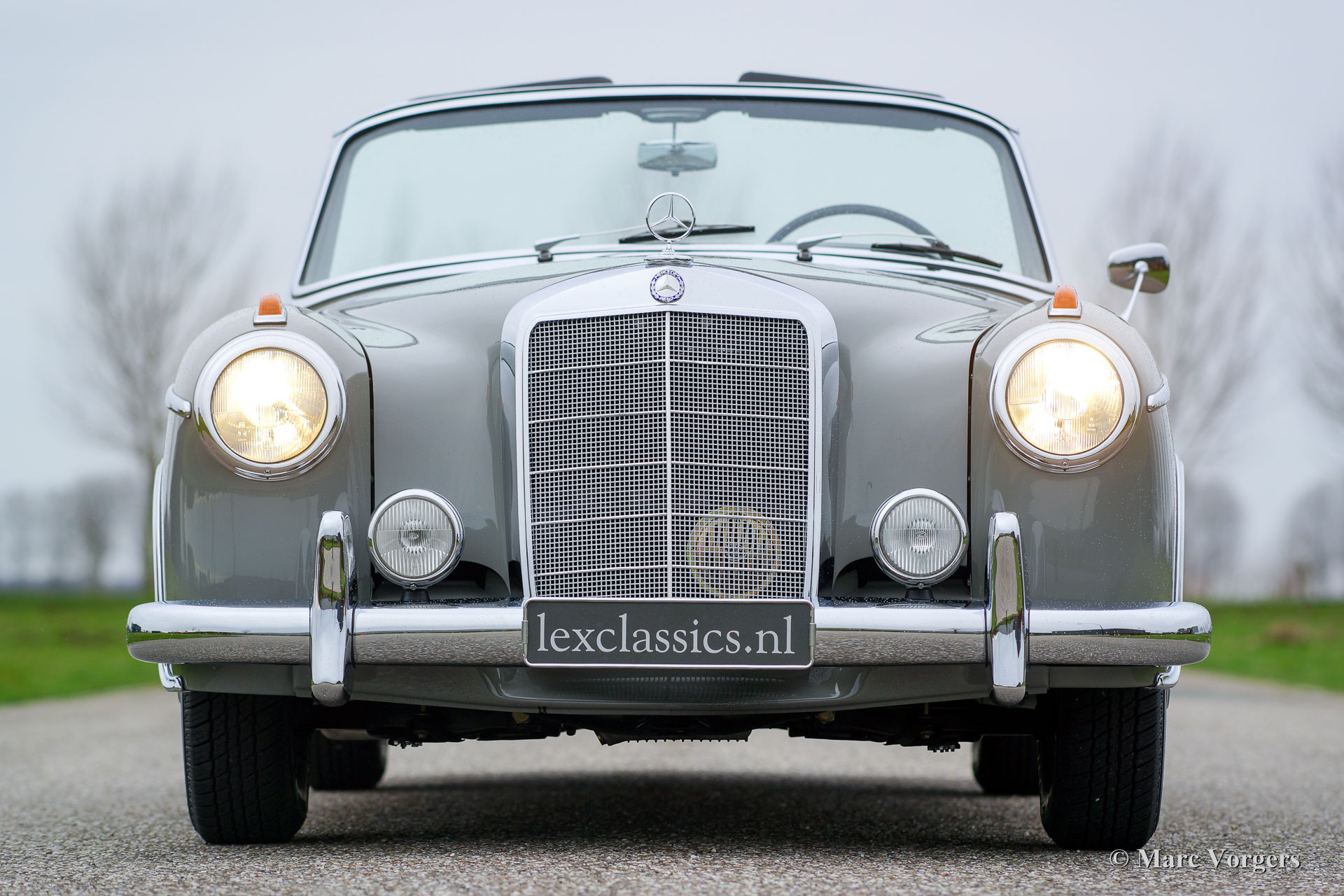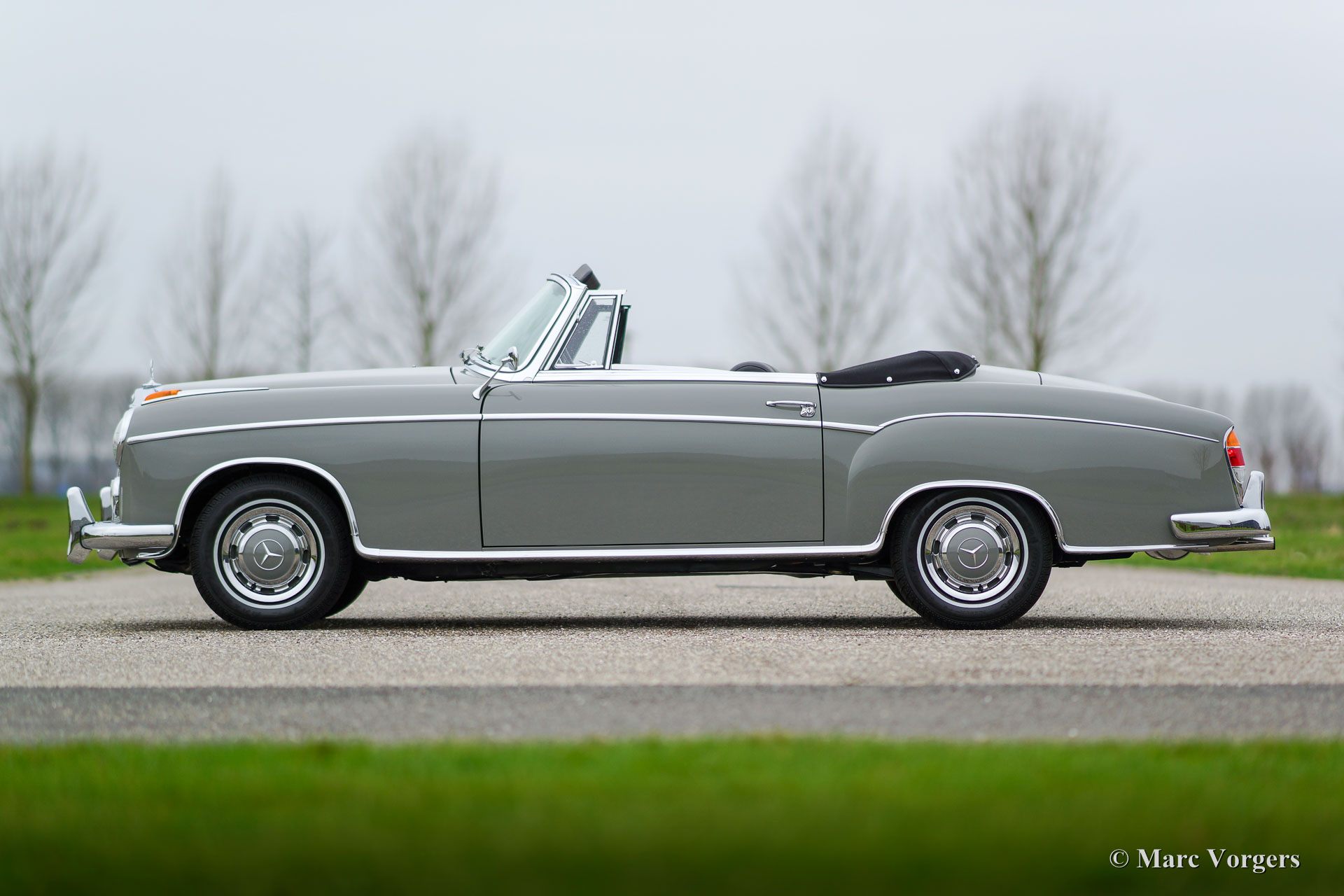Mercedes-Benz W128 220 SE Cabriolet, Jahr 1959. Farbe Grau (Zementgrau, Farbcode 186) mit einem dunkelgrauen Lederinterieur und grauem Teppich. Schwarze Mohair Kapuze und Verdeck Abdeckung. Dieses prächtige Automobil wurde ausgiebig und perfekt von einem Spezialisten restauriert. Eine Foto-Reportage der Restauration ist vorhanden wie ein M.B. ‘Wagenkarte‘, die bestätigt, dass das Auto ‚‘matching numbers‘ hat. Dieses feine Mercedes-Cabriolet ist in perfektem Zustand; concours! Von 1958 bis 1960 wurden nur 1.112 Exemplare dieses Modelles gebaut.