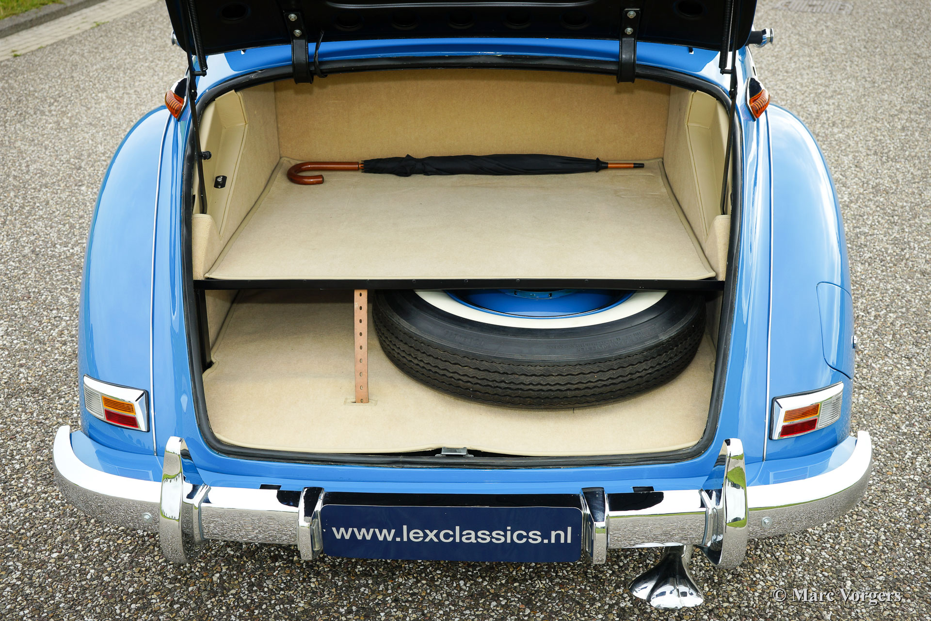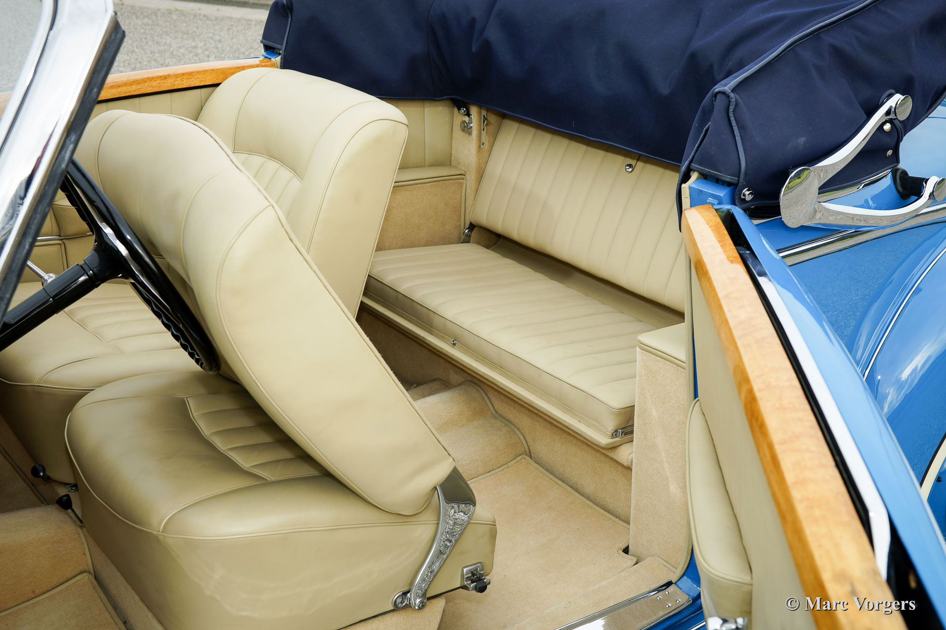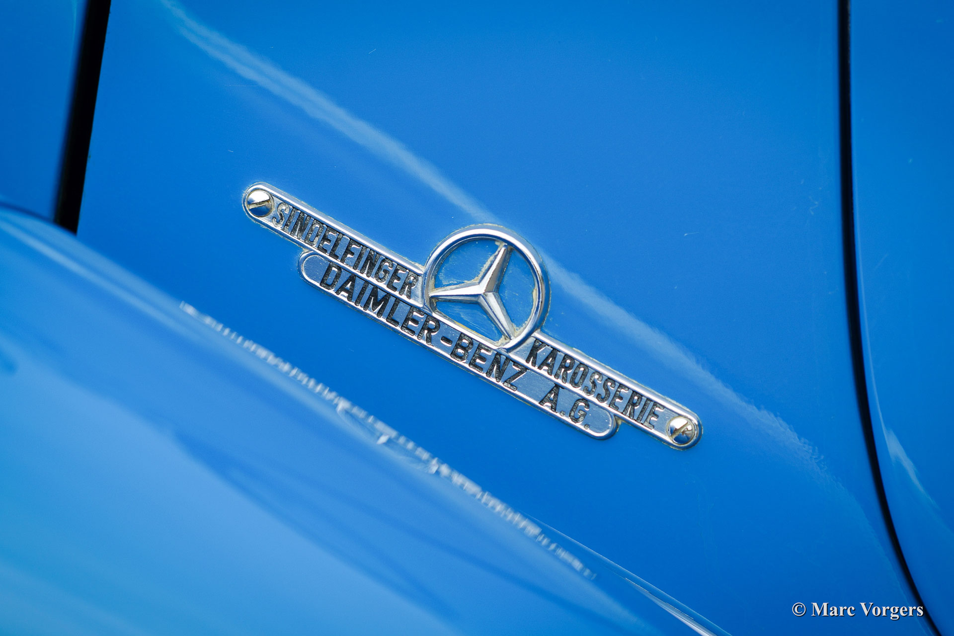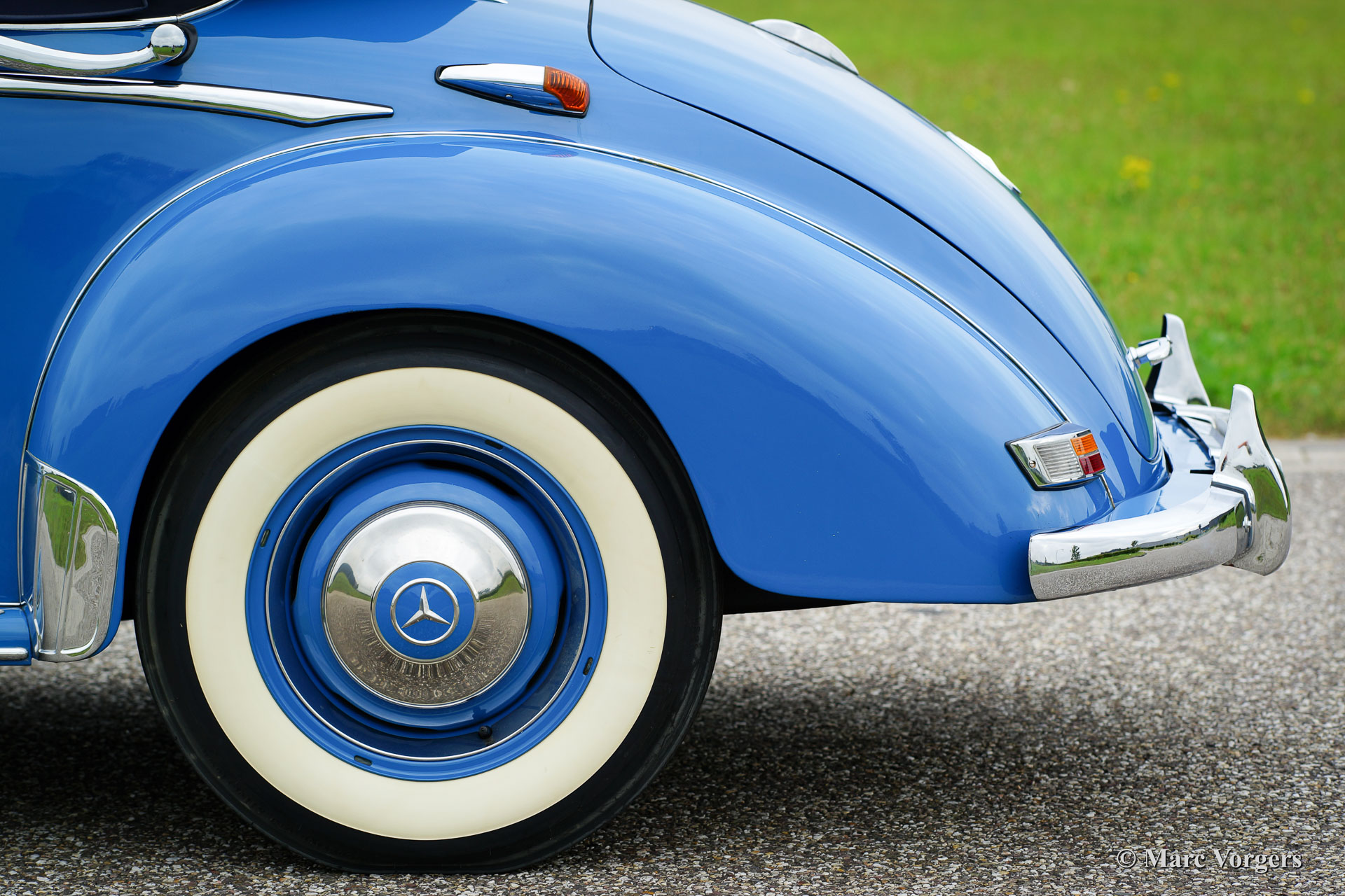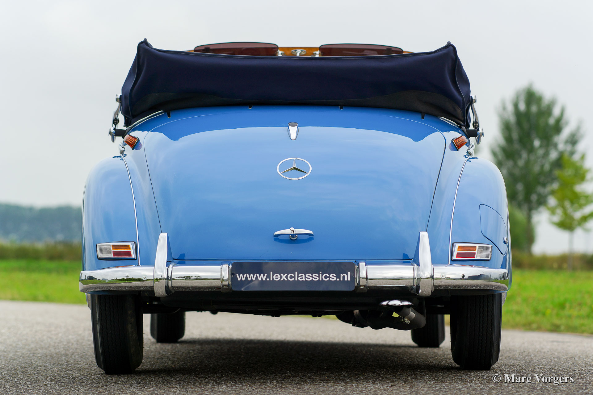 Mercedes-Benz 220A Cabriolet, Jahr 1954. Fahrgestellnummer 1870124500XXX. Farbe Blau mit beige Lederausstattung und beige Teppich. Dunkelblau Mohair Verdeck und Verdeck Abdeckung. Dieses schöne Mercedes Cabrio wurde in der Vergangenheit umfangreich 'Körper aus‘ wieder hergestellt. Eine Fotoreportage der Restauration ist vorhanden. Das Auto ist in einem sehr gutem bis exzellenten Zustand und das Auto fährt herrlich. Das Auto ist schon seit dem Jahr 1965 in den Niederlanden. Den letzten zehn Jahren war das Automobil Teil einer Autosammlung.