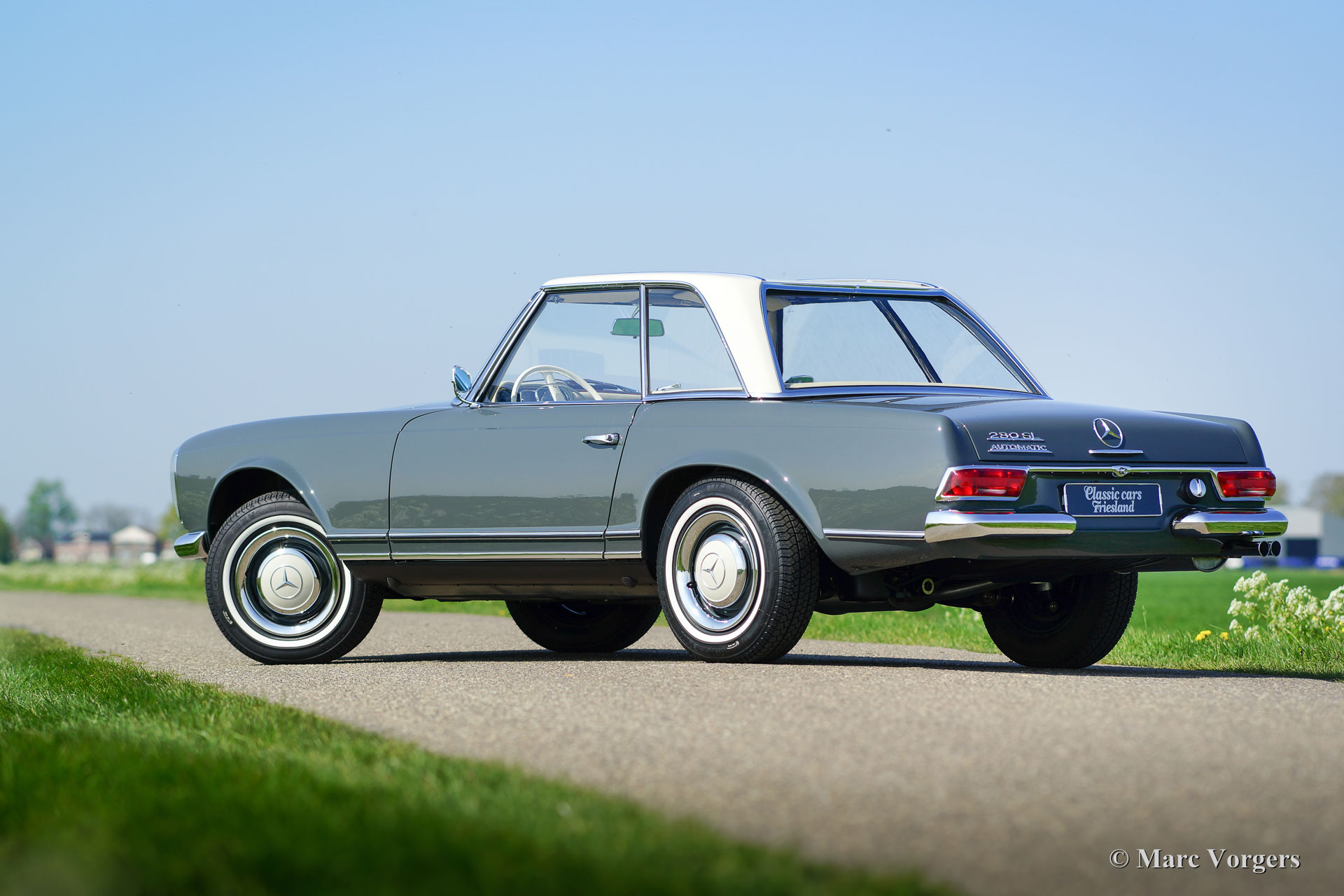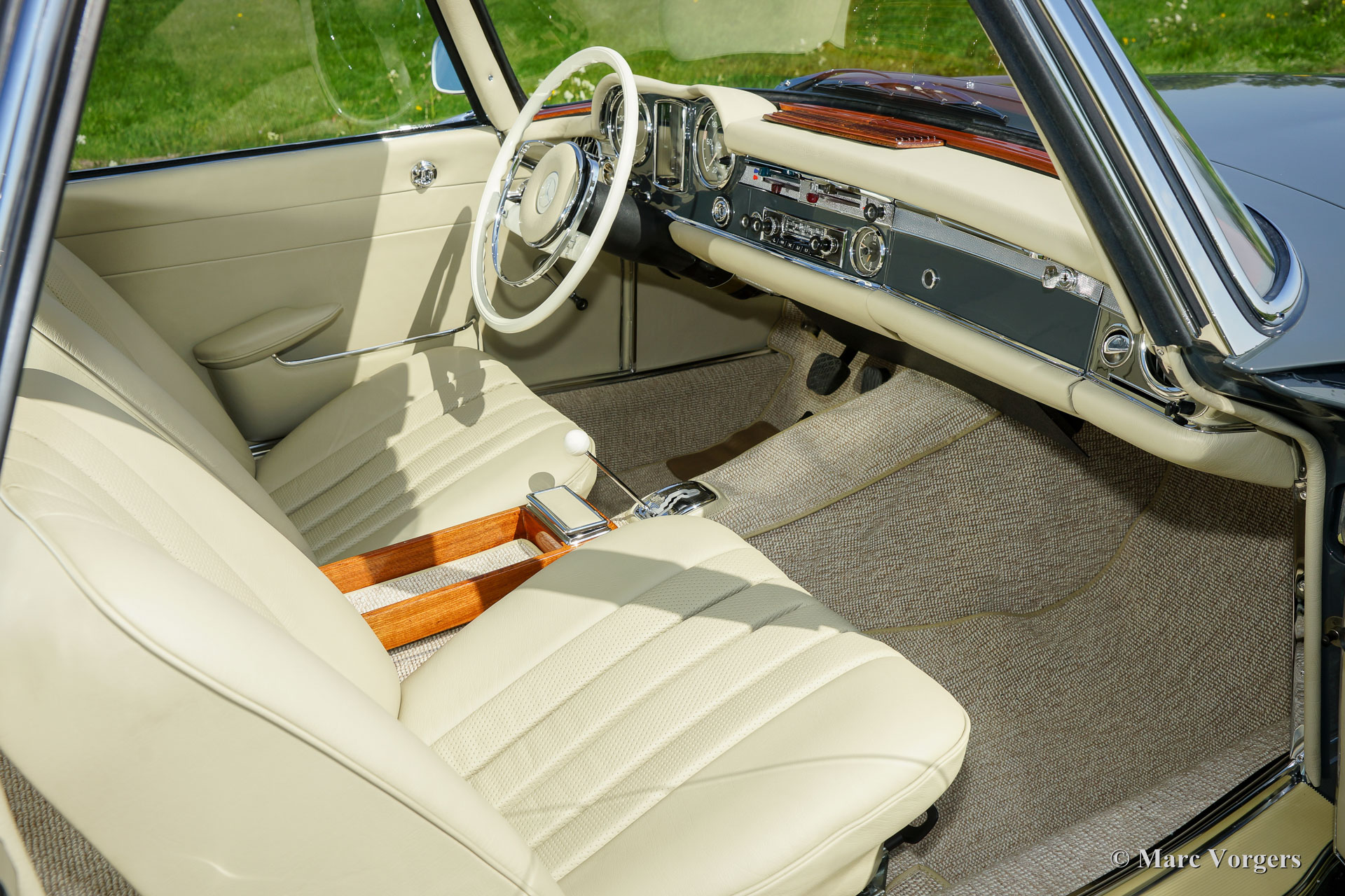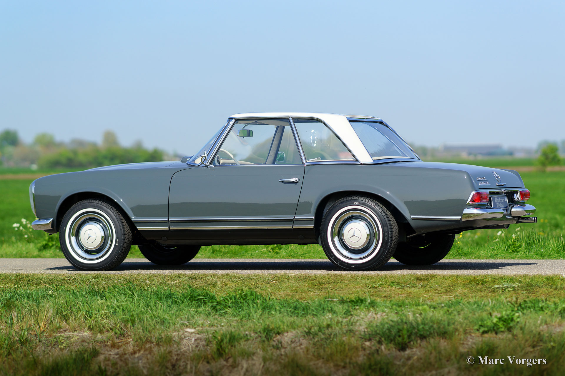 The Mercedes 230 SL followed the Mercedes 190 SL which was built up until 1963. The timeless, austere design that was first seen in the Mercedes 300 SE sedan in 1961, was continued in the 230 SL: many see this version as the most beautiful Mercedes since the 1960s. The 230 SL is characterized by its refined, lively handling, and by its very high constructive and technical quality. The car also offers much space, many comforts and practical conveniences. The open two-person roadster is also available with a hardtop, which changes the car into a closed coupe. The Mercedes-Benz 230 SL carried the nickname of 'Pagoda' because of the design of the hardtop.